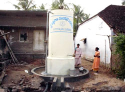 Under the first Scheme, on the Godavari River at Purushottapatnam Village, an intake well of 6 meters diameter has been constructed and vertical turbine pumps of capacity 100 HP installed to pump raw water into the water treatment plant. The plant with a capacity of 10.5 Million Litres Per Day (MLD) uses Rapid Sand Filtration method and pumps out clear water in to a Ground Level Balancing Reservoir of 10 Lakh Litres capacity situated on the top of a hill. From here, water is supplied to the villages using gravity.