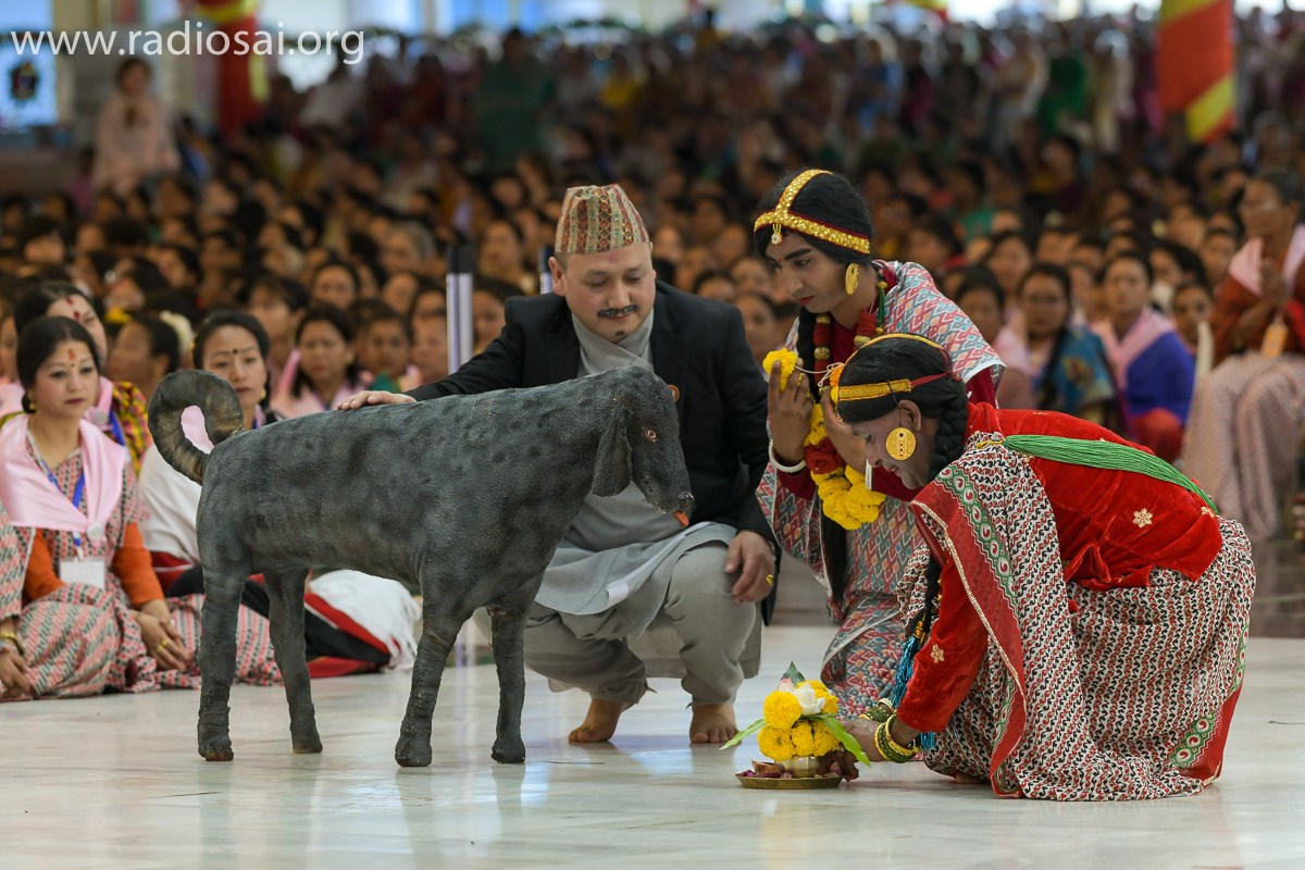 A contingent of devotees from the North East State of Sikkim has come on a 2-day Prasanthi Parthi Yatra to bask in the Divine OmniPresence of Bhagawan Sri Sathya Sai. Commencing their two-day celebrations this evening, Sai Youth of Sikkim presented a drama, ‘Tihar’, on the story of famed Tihar festival of the Nepalese community.