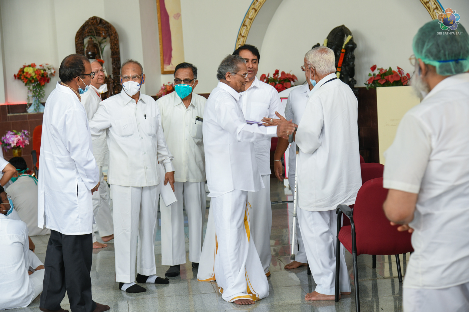Lauding the efforts put in by the hospital in offering world-class healthcare absolutely free of cost, the Chairman of the Sri Sathya Sai Global Council, Sri K Chakravarthi & the Managing Trustee, SSSCT, Sri RJ Rathnakar conveyed that it was heartening to note that the department is celebrating its Silver Jubilee at the same time while the Sri Sathya Sai Central Trust is celebrating its Golden Jubilee. Encouraging the doctors and the staff, the Trustees urged them to see Swami in all the patients who come to the Hospital and treat them with Love.