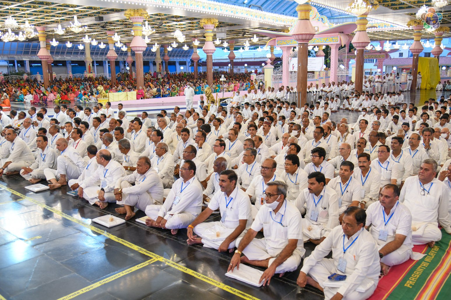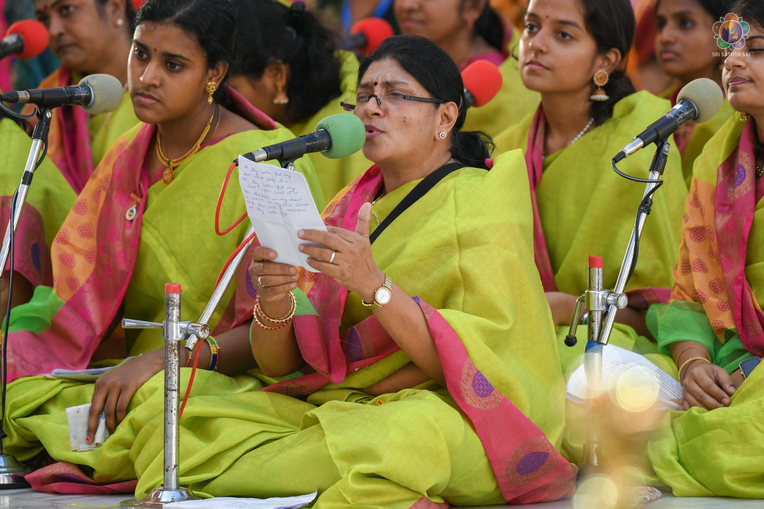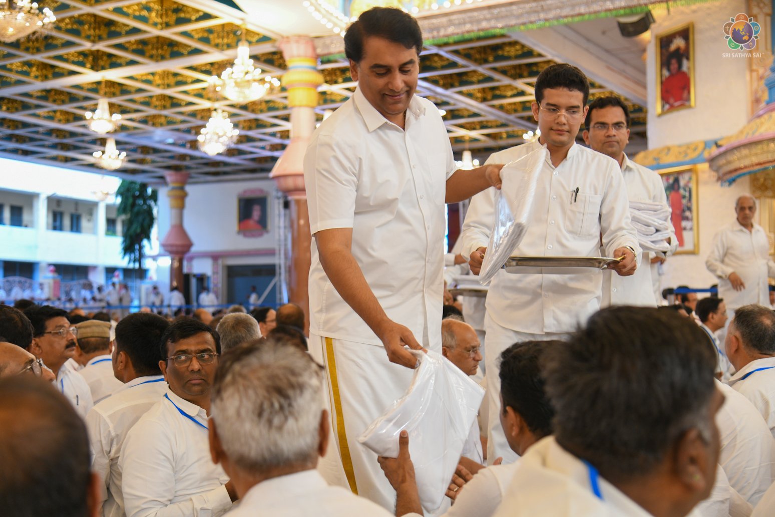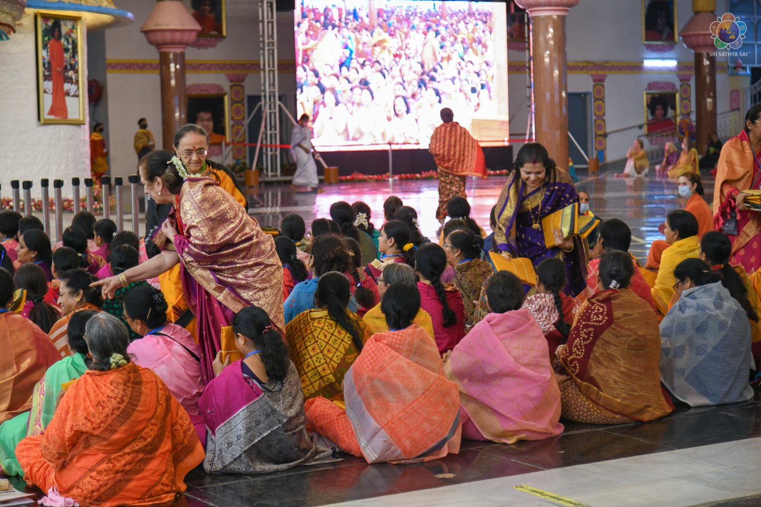 Swararchana | Devotional Music Program | Sep 17, 2022 Loving Sai Ram and Greetings from Prasanthi Nilayam. More than 700 Office Bearers from Sri Sathya Sai Seva Organisations, India have gathered here as part of the three day Sadhana Camp for the District Presidents & State Level Convenors. The evening proceedings began with Vedam Chanting by the National Gents Vedam group followed by a Devotional Music Program offered by the Sundaram Bhajan Group. Swami’s Prasadam in the form of sarees and safaris were given to the delegates who participated in the conference.
