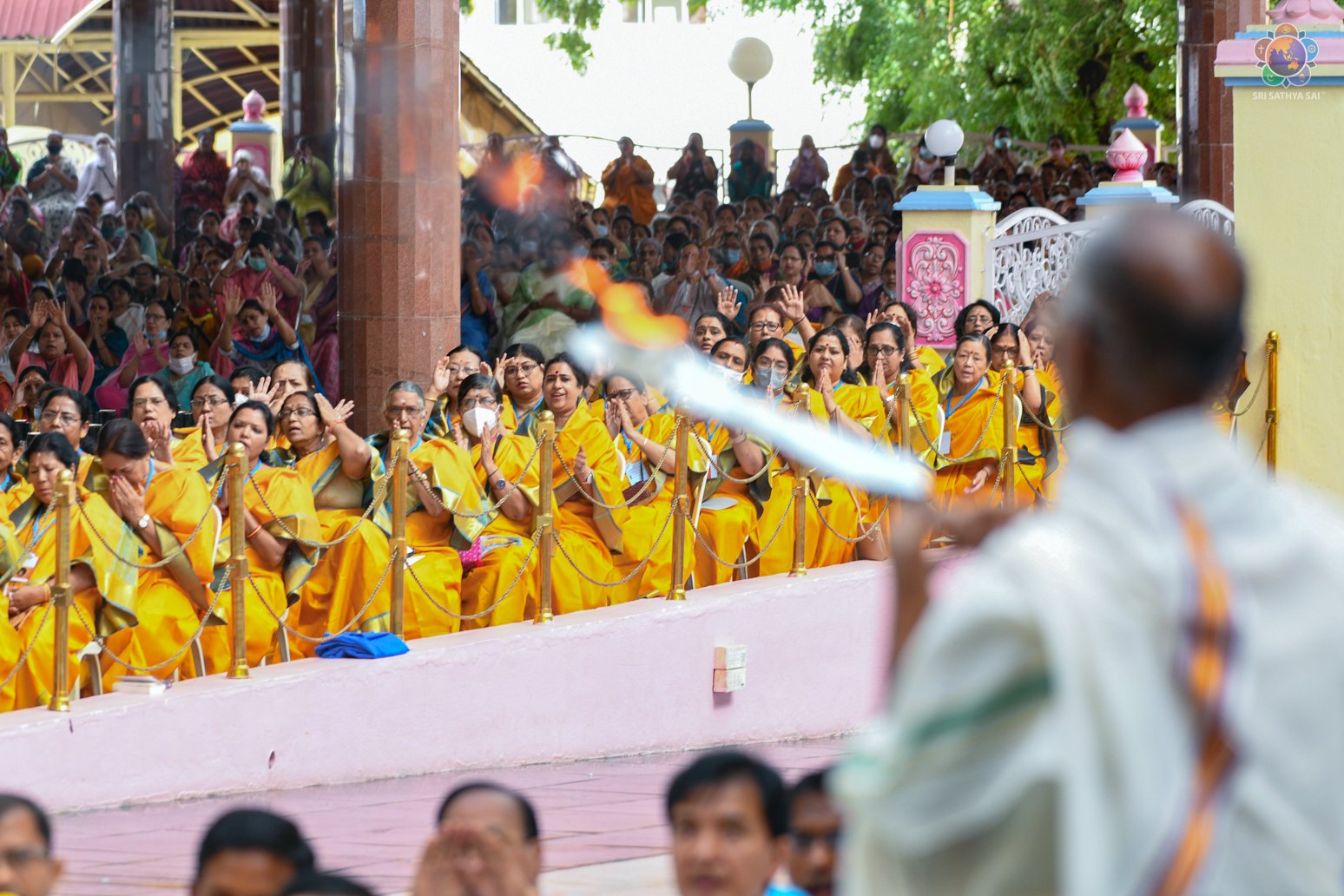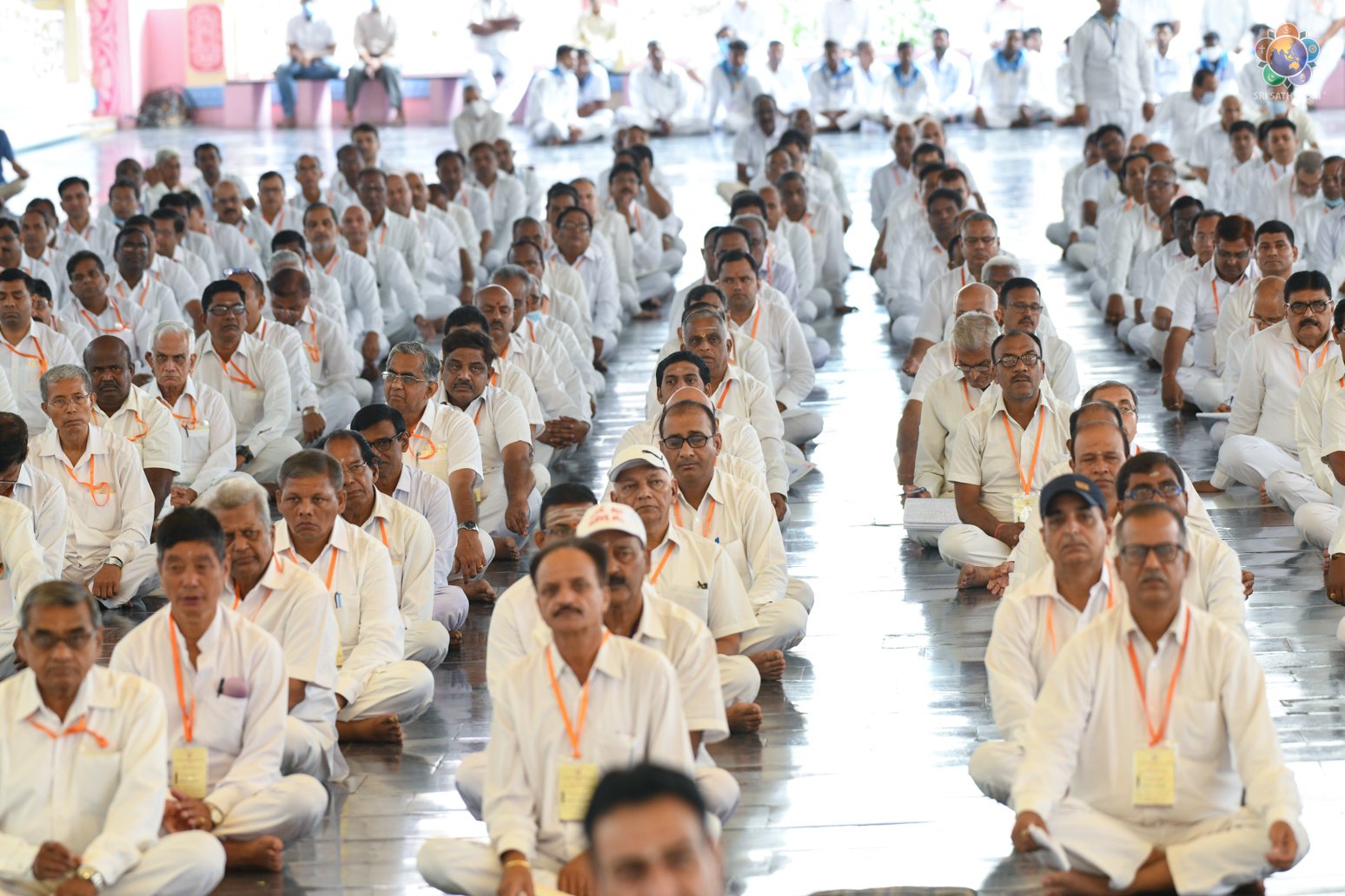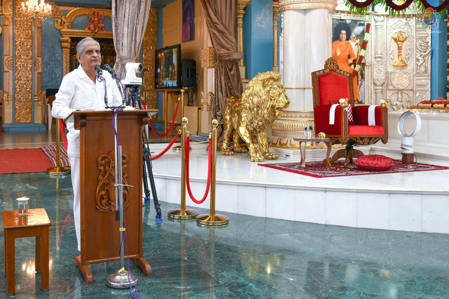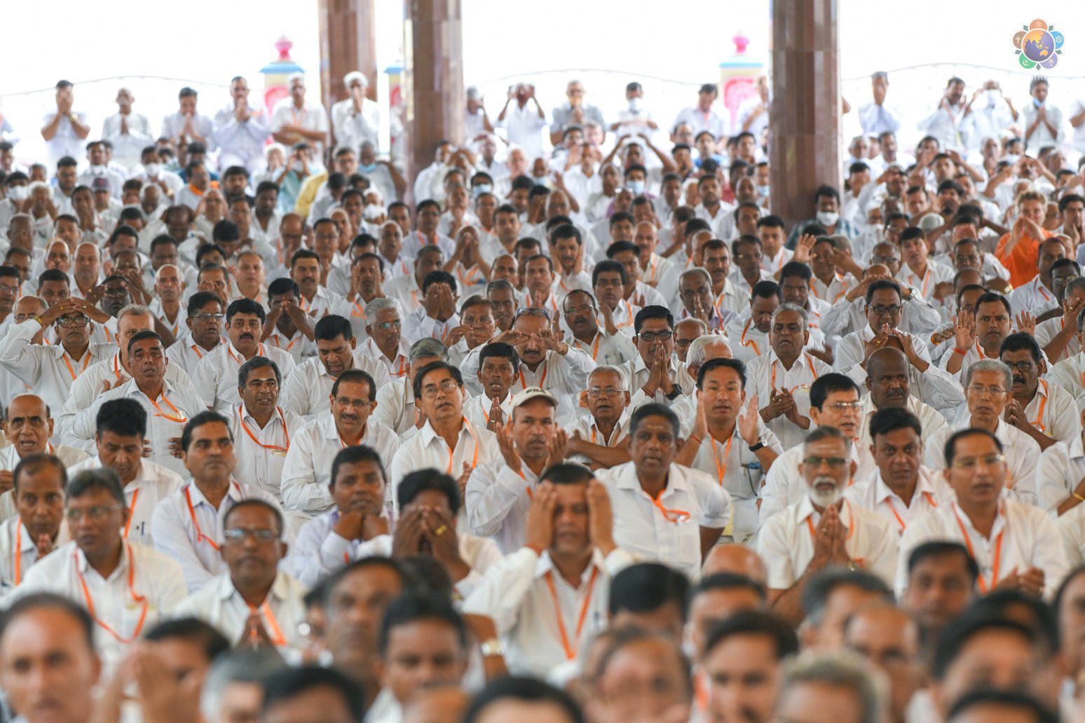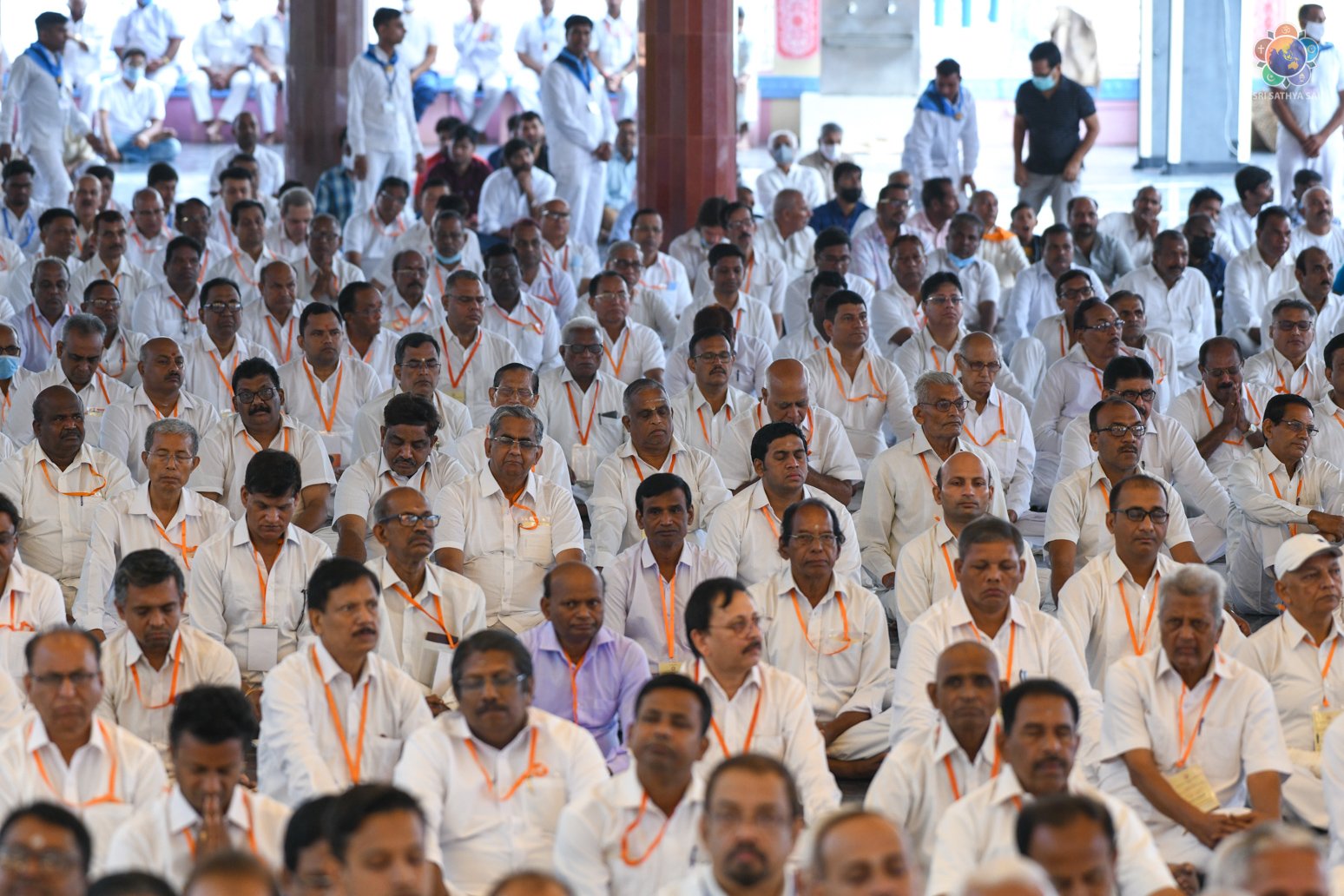 Concluding Session | Sadhana Camp | Sep 18, 2022 Loving Sai Ram and Greetings from Prasanthi Nilayam. The concluding session of the three-day Sadhana Camp for the District Presidents, State Level Convenors and Office Bearers of the Sri Sathya Sai Seva Organisations, India, started with the ceremonial Vedam Chanting by National Gents Vedam Group. Sri Nimish Pandya, President, SSSSO - India addressed the gathering on the theme, 'Way Forward with Back to Basics on Bhagawan’s Teachings’. Thanking all the delegates for the participation, he emphasised on how blessed and chosen each office bearer is in Swami’s Mission. All the office bearers, in their pledge, then prayed to Bhagawan to guide them in taking forward HIS Mission in the way Bhagawan envisioned.