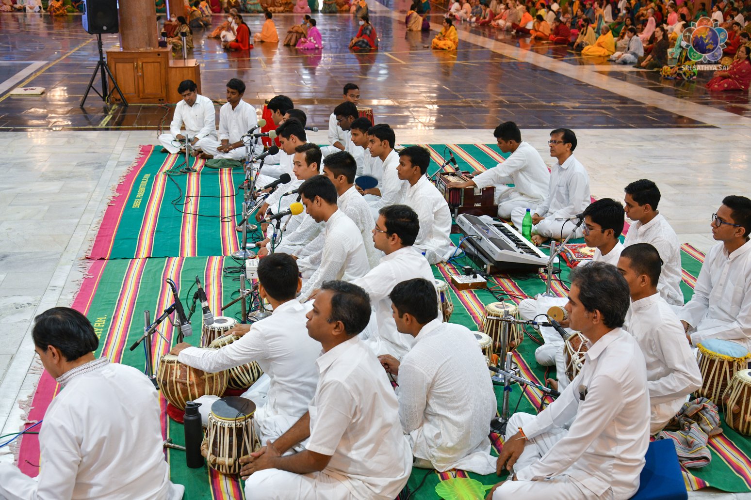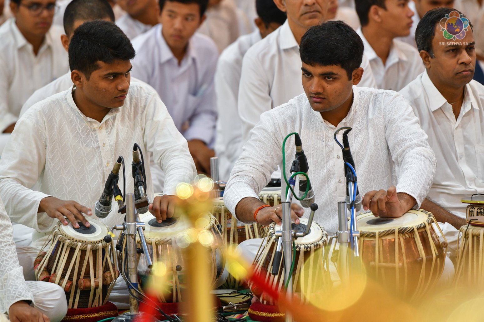 On the eve of Deepavali, the students from the Department of Music, SSSIHL, offered a devotional music program entitled Sai Swara Laya Arpanam comprising of Carnatic Kritis, Hindolam, Abhang, Hindustani Bandish, Tillana etc. Please find below the glimpses of the same below.