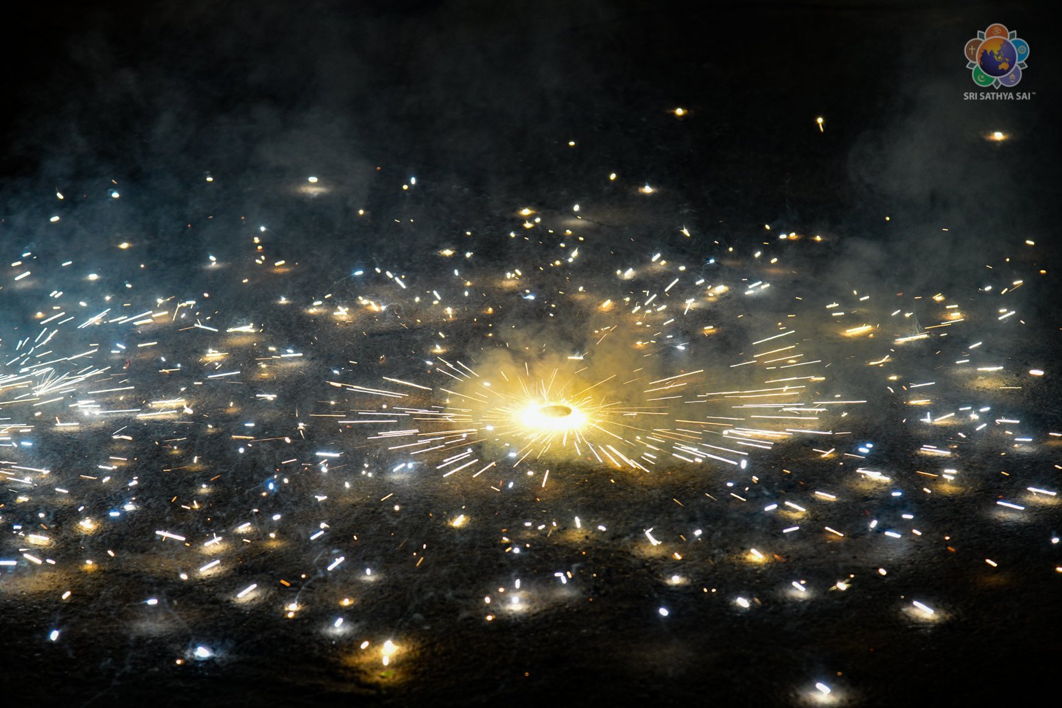 Loving Sairam and Deepavali Greetings from Prasanthi Nilayam. Continuing the sacred tradition of lighting lamps and bursting crackers at Bhagawan's residence, Yajur Mandir, the students & staff from Bhagawan's Educational Institutions celebrated the festival of lights and joy in the presence of the dignitaries & elders of the ashram. May this vibrant festival of lights draw us all closer to HIM. Let us all pray to our Dearest Bhagawan to dispel the darkness of ignorance and light the wisdom in our lives. Please find the glimpses of the celebrations.
