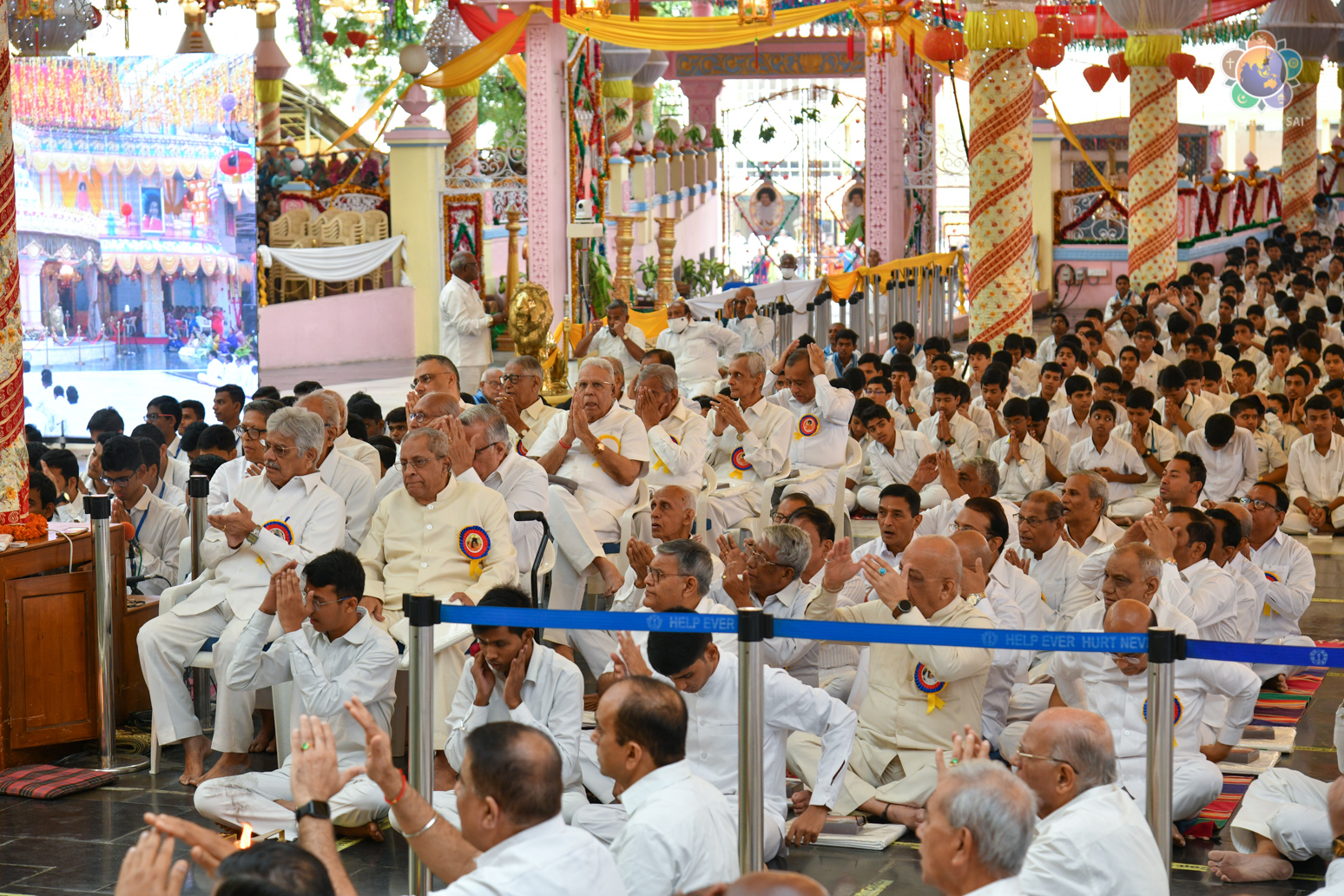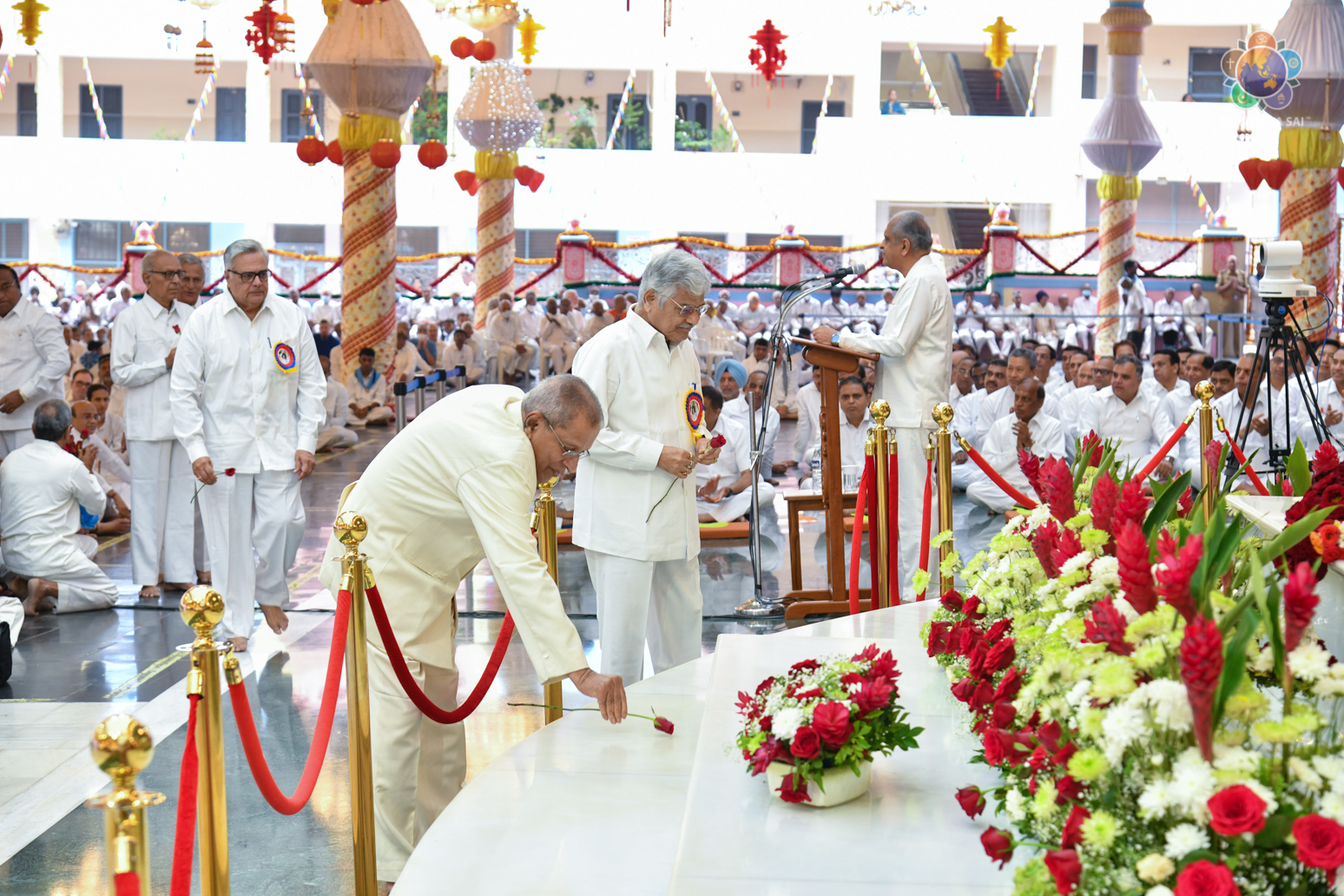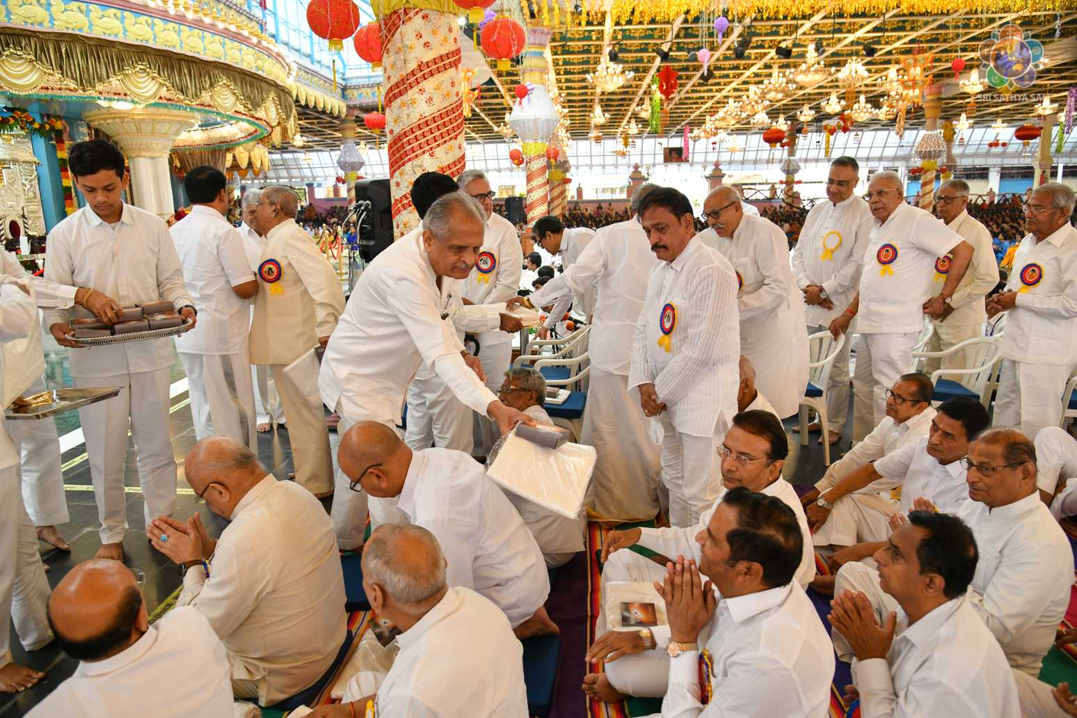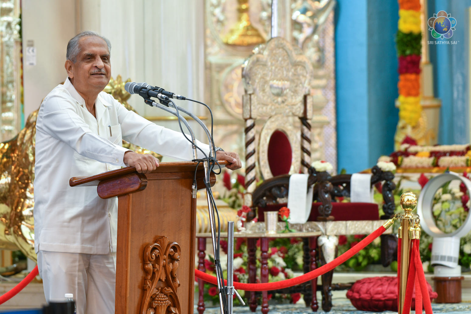 Loving Sai Ram and Greetings from Prasanthi Nilayam. Bhagawan would often remind us that the purpose of Seva is to realise the Truth that Divinity is to be found in one's own self by serving the Divine in others. In His immense love, He initiated devotees into the 'Ceiling on Desires' program to aid in this supreme journey. As we approach the centenary celebrations, SSSSO-India reaffirmed its commitment to this program, taking a vow to practice this command as an offering to Swami. After the launch of a brochure on ‘Ceiling on Desires' by Sri K Chakravarthi (Chairman, SSSGC), Sri RJ Rathnakar (Managing Trustee, SSSCT), Dr V Mohan (Trustee, SSSCT) and Sri Nimish Pandya (AIP, SSSSO-India), Sri Pandya addressed the gathering on the topic. This was followed by a heartfelt gesture of gratitude where those who have served Bhagawan over the years by holding senior positions in the SSSSO-India (State Presidents, State Convenors and so on) were remembered and felicitated for their inspiring service. Those present with us came forward and offered a flower at Bhagawan's Sannidhi, while the others were represented by their family members. Please find glimpses of the event below.
