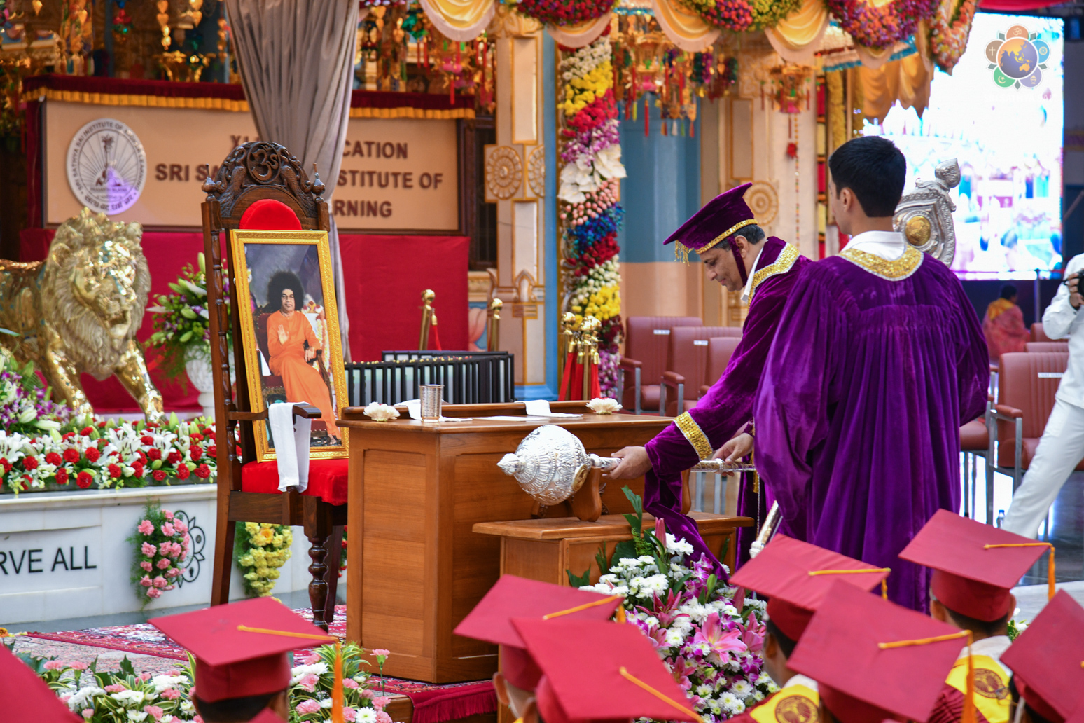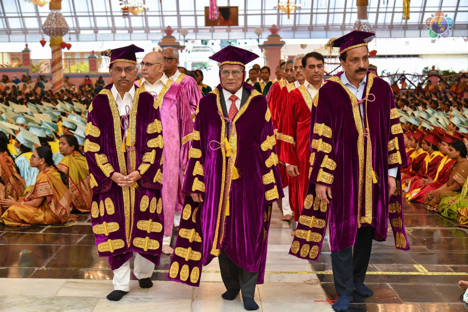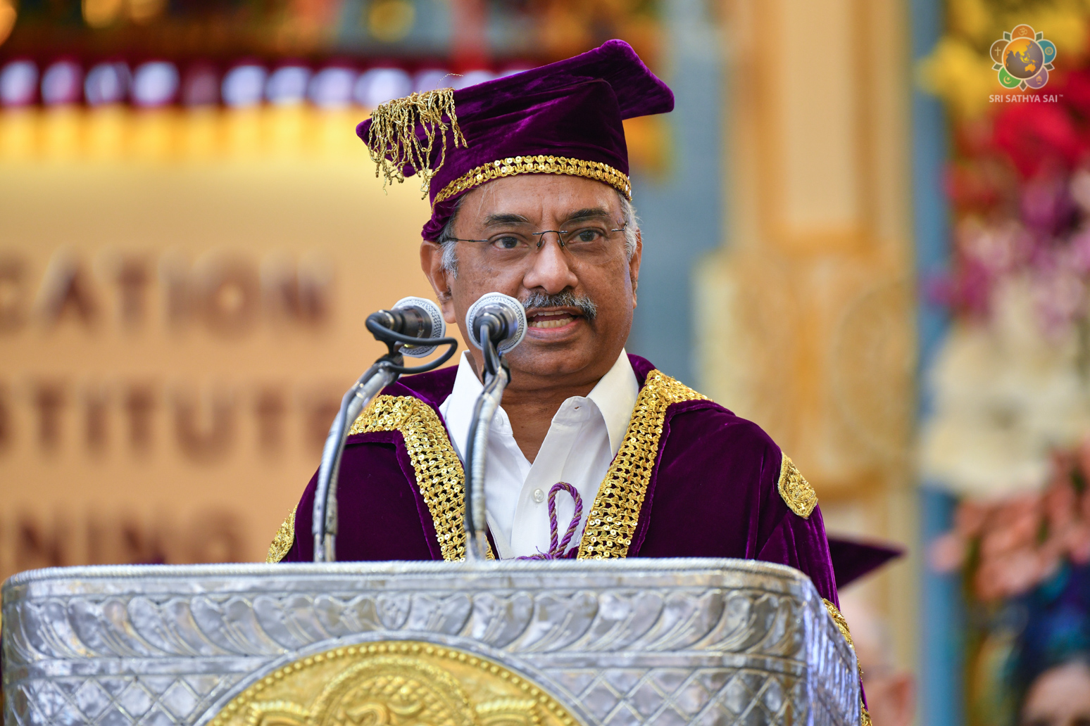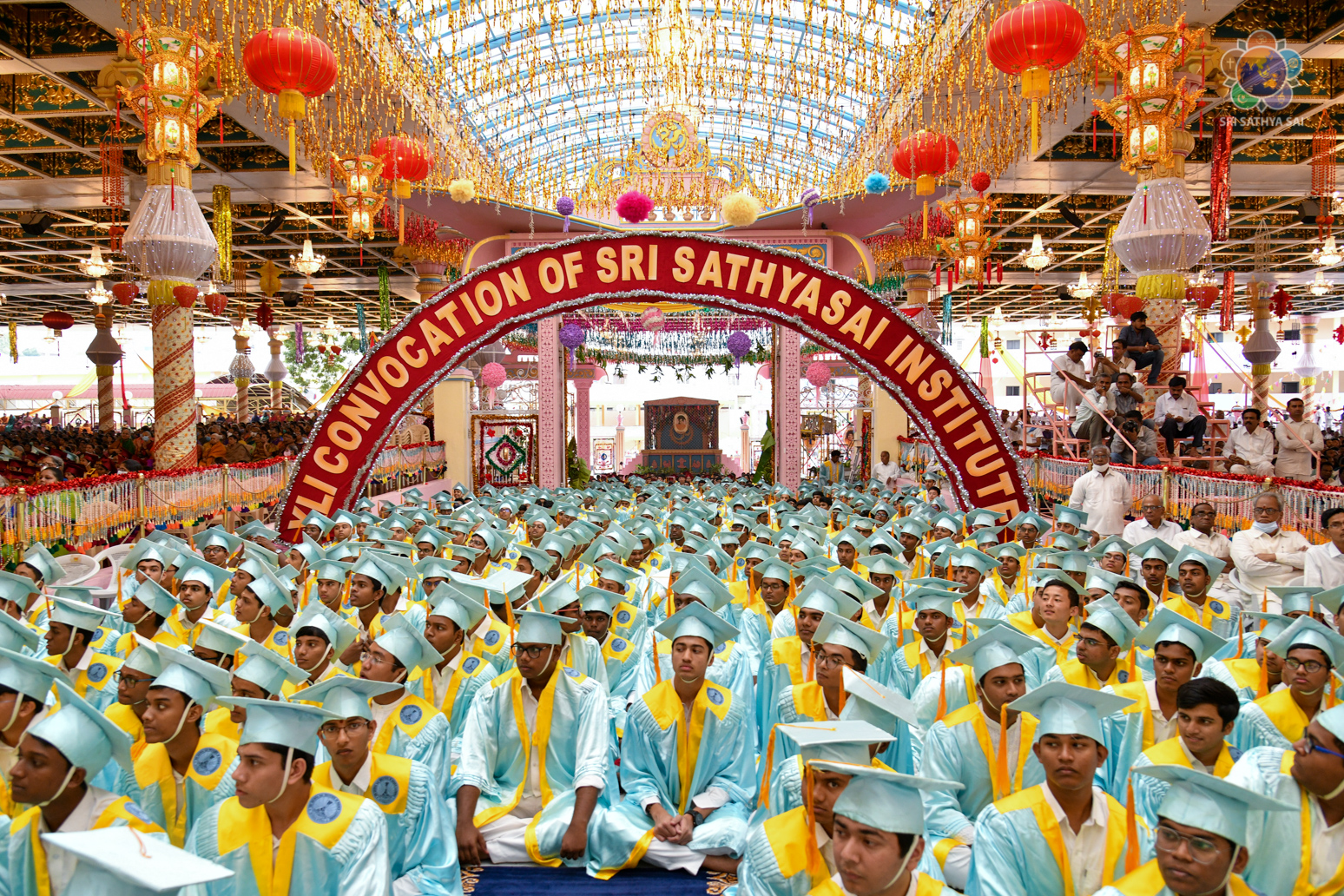 Loving Sai Ram and Greetings from Prasanthi Nilayam. The Sri Sathya Sai Institute of Higher Learning conducted its 41st convocation this morning in the Divine Presence of Bhagawan Sri Sathya Sai Baba. Sri Sreedhara Panicker Somanath, Secretary & Chairman, Indian Space Research Organisation was the chief guest this morning. In his address, he lauded SSSIHL as a modern Gurukula & appreciated the residential system of the campuses wherein the teachers stay along with the students. Congratulating the students for the integral education that they have received in the Sri Sathya Sai Institutions, he urged them to be ever passionate about learning and develop a strong moral fibre to serve society and make India the leader among nations. Around 17 Research Scholars were awarded Doctorate of Philosophy this year.