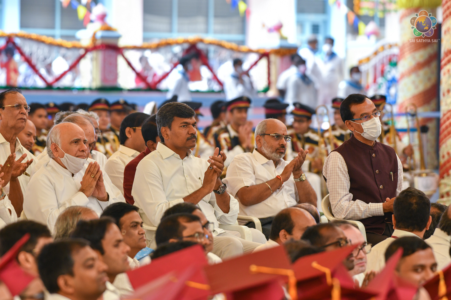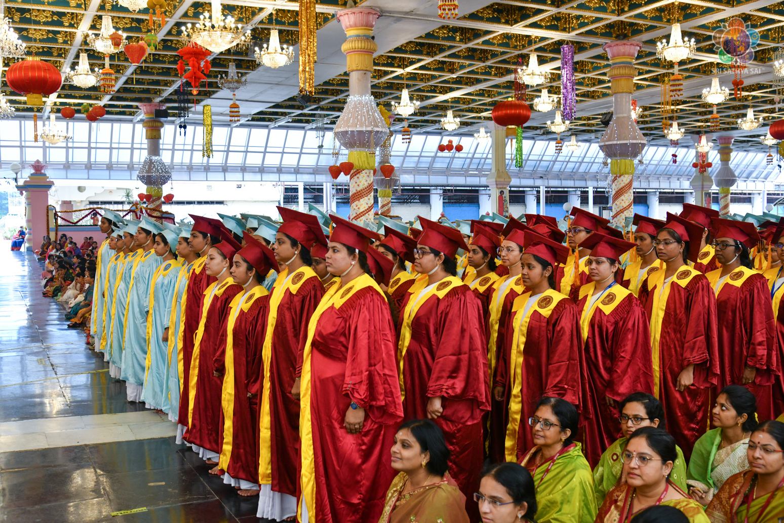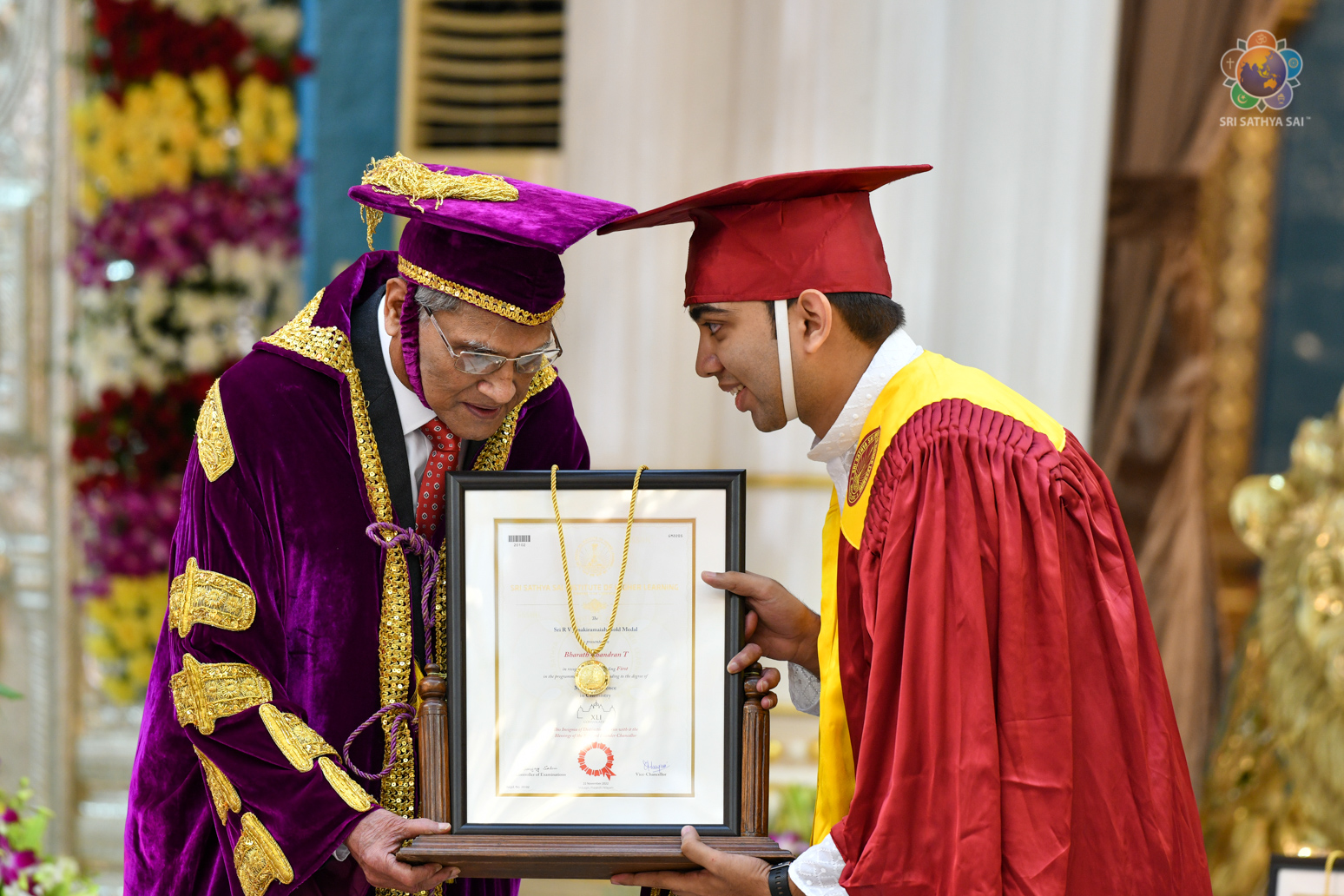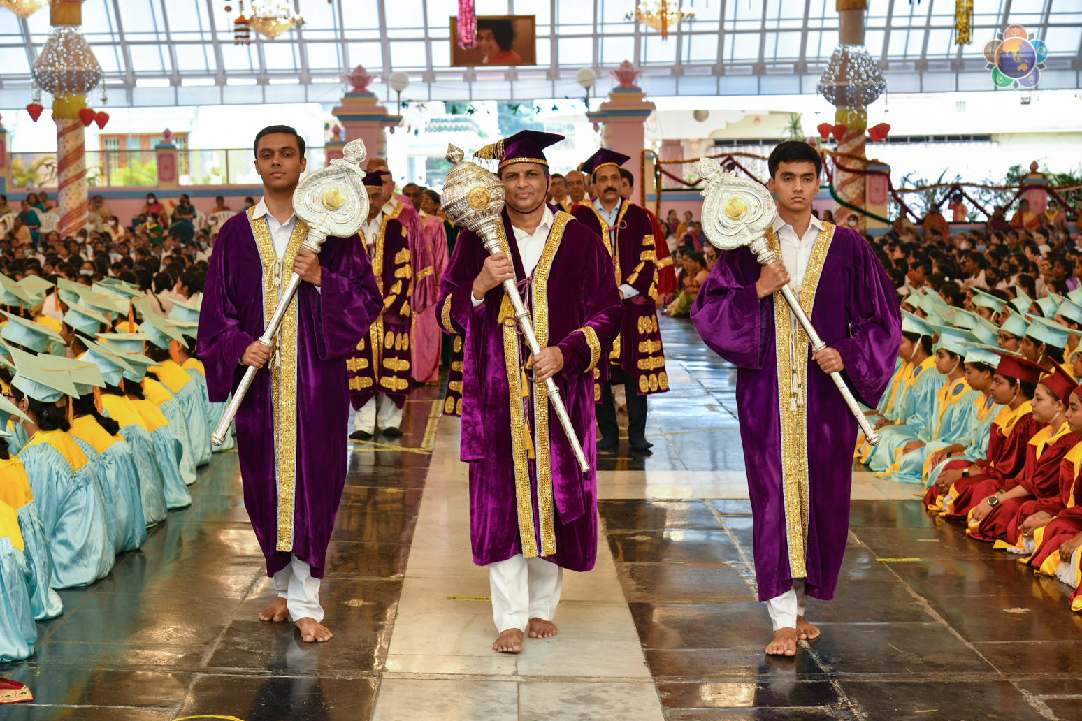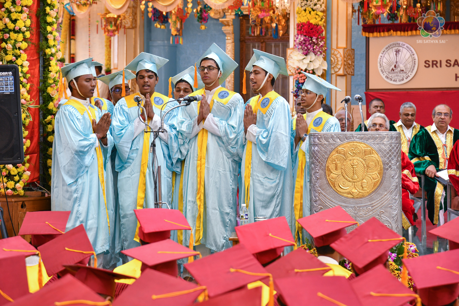 Loving Sai Ram and Greetings from Prasanthi Nilayam. The Sri Sathya Sai Institute of Higher Learning conducted its 41st convocation this morning in the Divine Presence of Bhagawan Sri Sathya Sai Baba. Sri Sreedhara Panicker Somanath, Secretary & Chairman, Indian Space Research Organisation was the chief guest this morning. In his address, he lauded SSSIHL as a modern Gurukula & appreciated the residential system of the campuses wherein the teachers stay along with the students. Congratulating the students for the integral education that they have received in the Sri Sathya Sai Institutions, he urged them to be ever passionate about learning and develop a strong moral fibre to serve society and make India the leader among nations. Around 17 Research Scholars were awarded Doctorate of Philosophy this year.