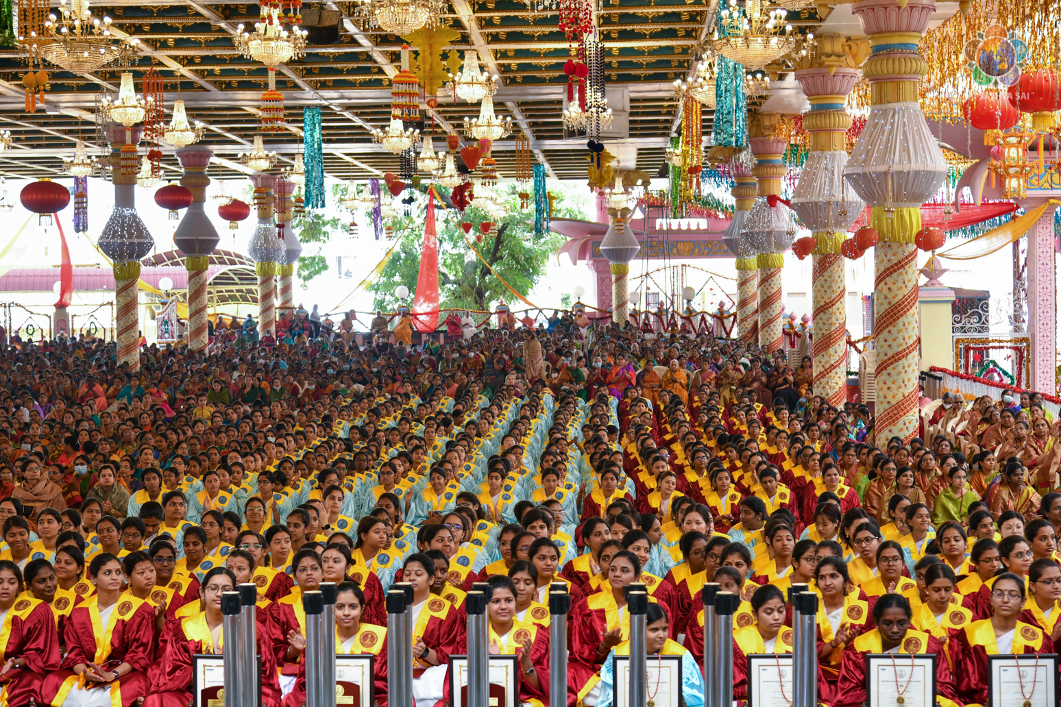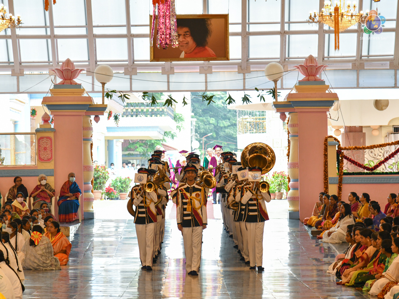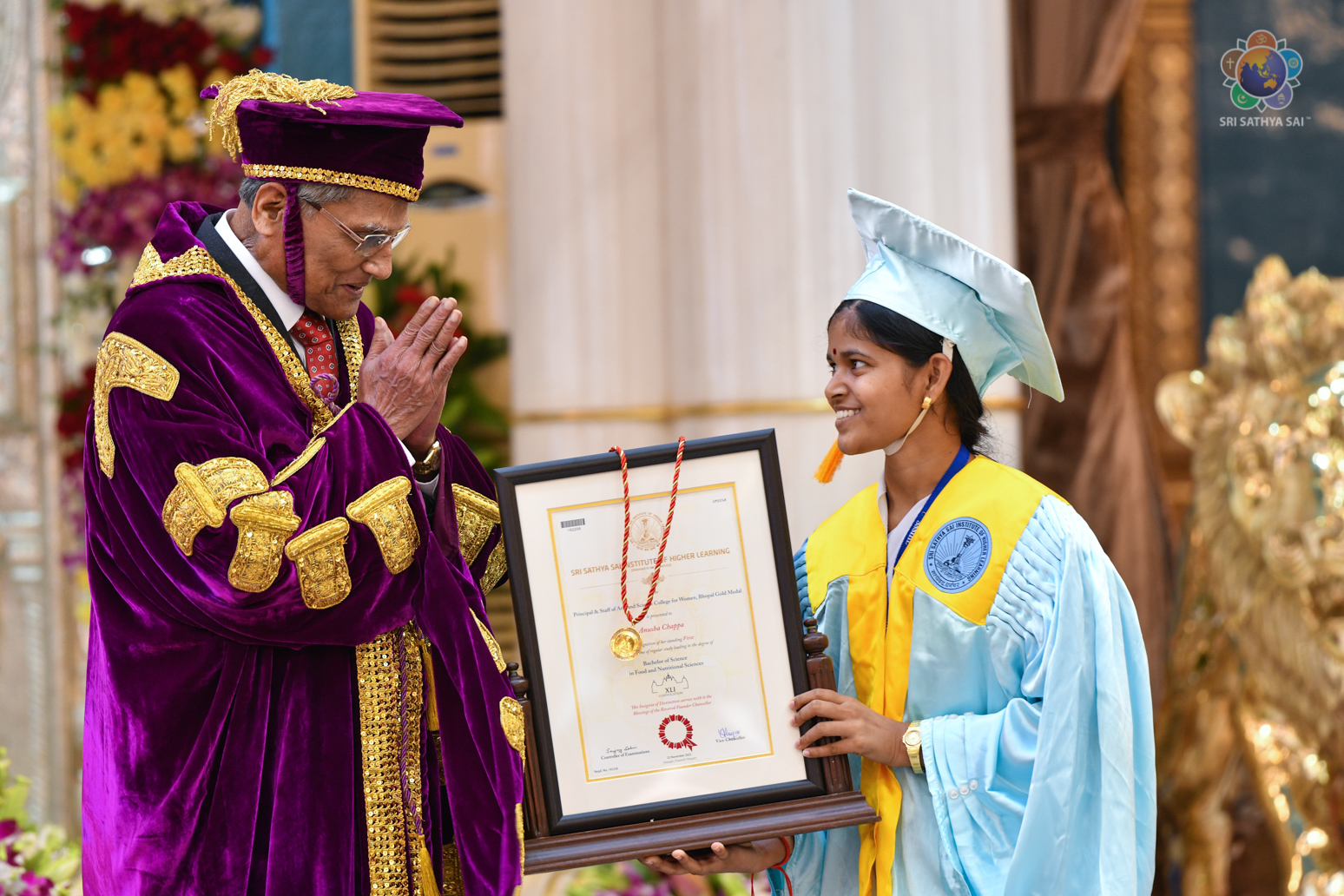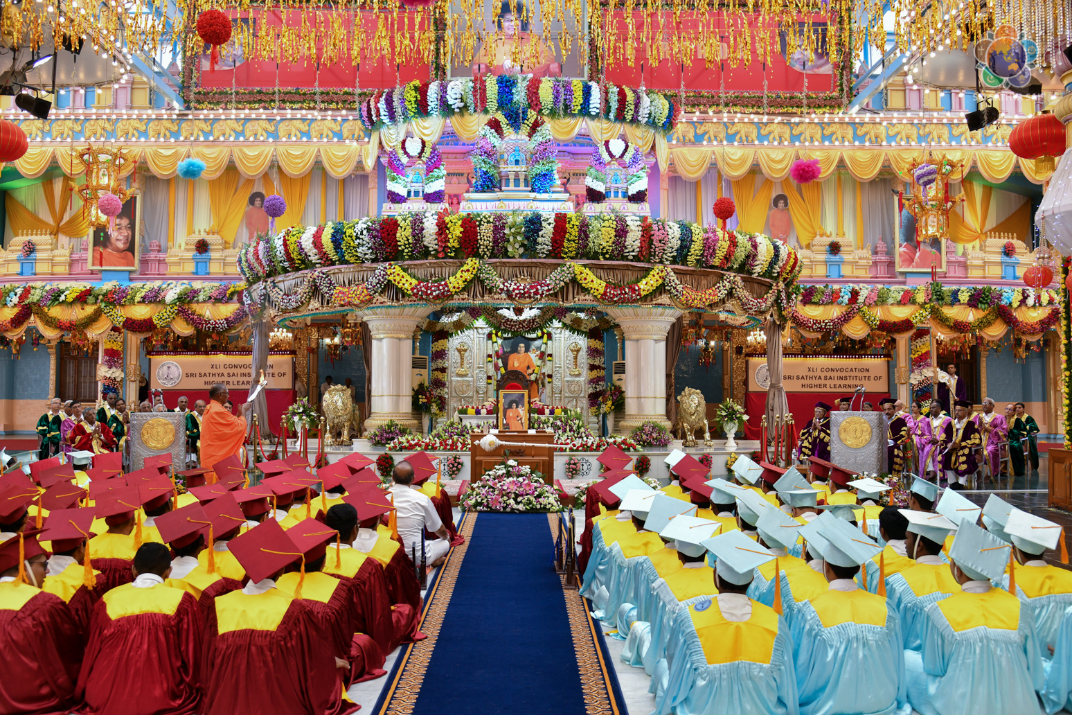 Loving Sai Ram and Greetings from Prasanthi Nilayam. The Sri Sathya Sai Institute of Higher Learning conducted its 41st convocation this morning in the Divine Presence of Bhagawan Sri Sathya Sai Baba. Sri Sreedhara Panicker Somanath, Secretary & Chairman, Indian Space Research Organisation was the chief guest this morning. In his address, he lauded SSSIHL as a modern Gurukula & appreciated the residential system of the campuses wherein the teachers stay along with the students. Congratulating the students for the integral education that they have received in the Sri Sathya Sai Institutions, he urged them to be ever passionate about learning and develop a strong moral fibre to serve society and make India the leader among nations. Around 17 Research Scholars were awarded Doctorate of Philosophy this year.
