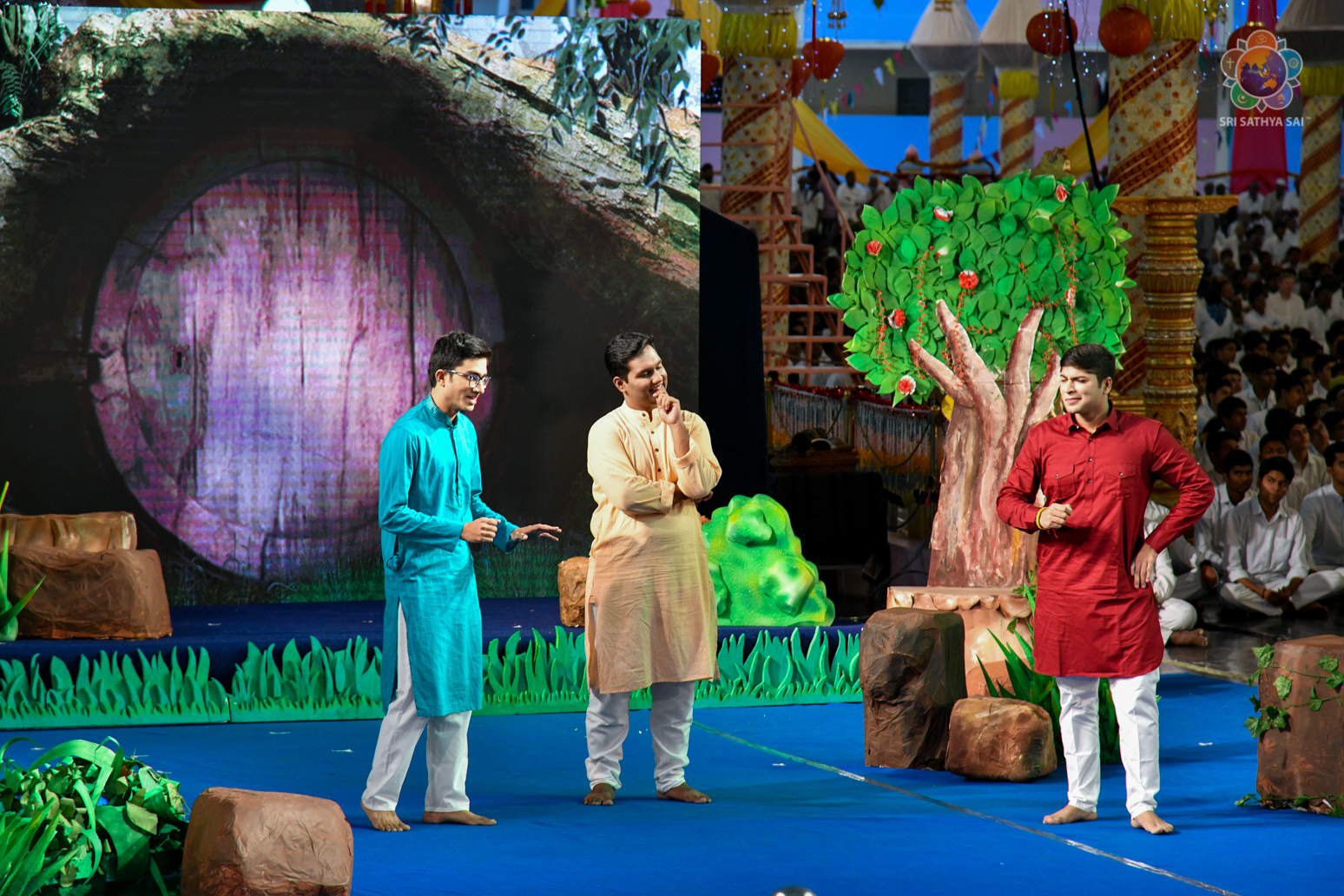 Loving Sai Ram and Greetings from Prasanthi Nilayam. As part of the 41st convocation of Sri Sathya Sai Institute of Higher Learning, the students of SSSIHL presented a Drama Entitled "Bangaru - A Call of Love". Here are the glimpses of the event.