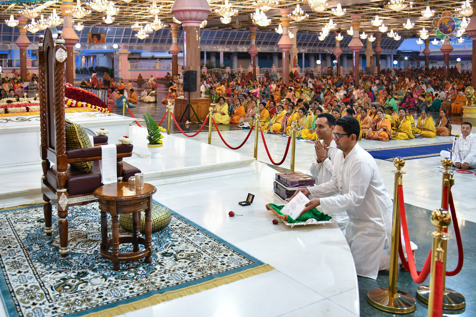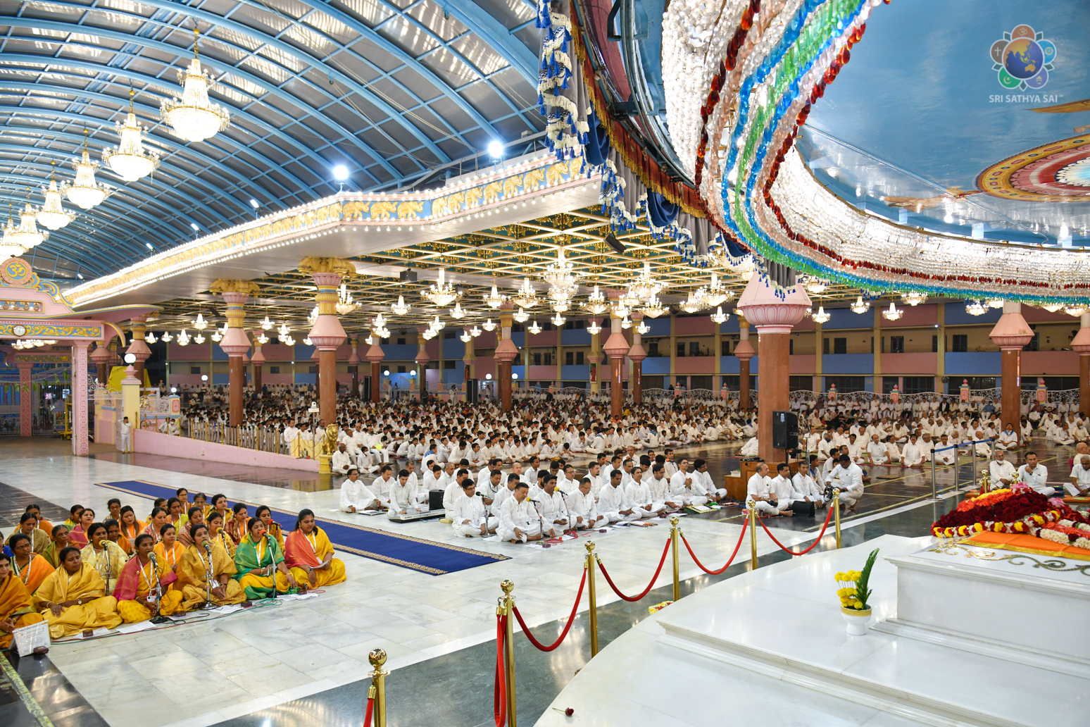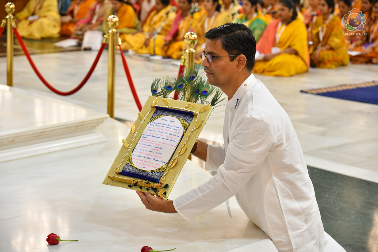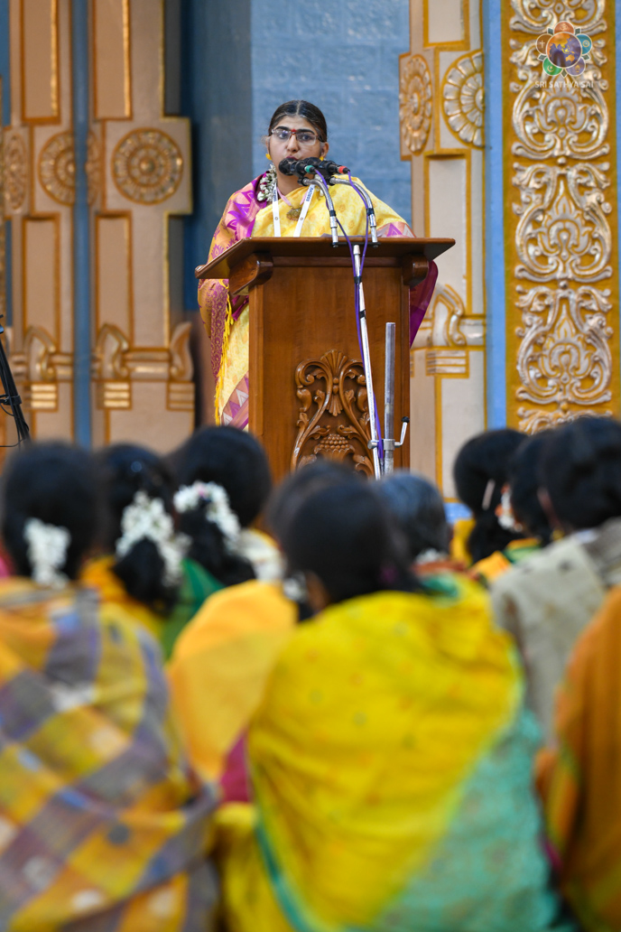 Loving Sai Ram and Greetings from Prasanthi Nilayam. The Sri Sathya Sai Centre for Human Values had conducted a 13 week Sri Sathya Sai Adhyatma Vidya Foundation Course based on Bhagawan’s 9-point code of conduct. As many as 63 participants who had successfully completed the course comprising of 14 modules were blessed with certificates and mementos in the Divine Presence this evening. After invocatory vedam chanting by the participants, Prof A Sudhir Bhaskar (Director, SSSCHV) explained about the purpose, structure and the modus operandi of this unique course. This was followed by two talks by participants, Sri Sravan from Telangana and Dr Reeta from Bengaluru. Both of them shared how the course has redefined their lives and has been a blessing for them in several ways. All the participants then offered a devotional music program interspersed with shorts talks wherein they expressed their gratitude to Bhagawan.