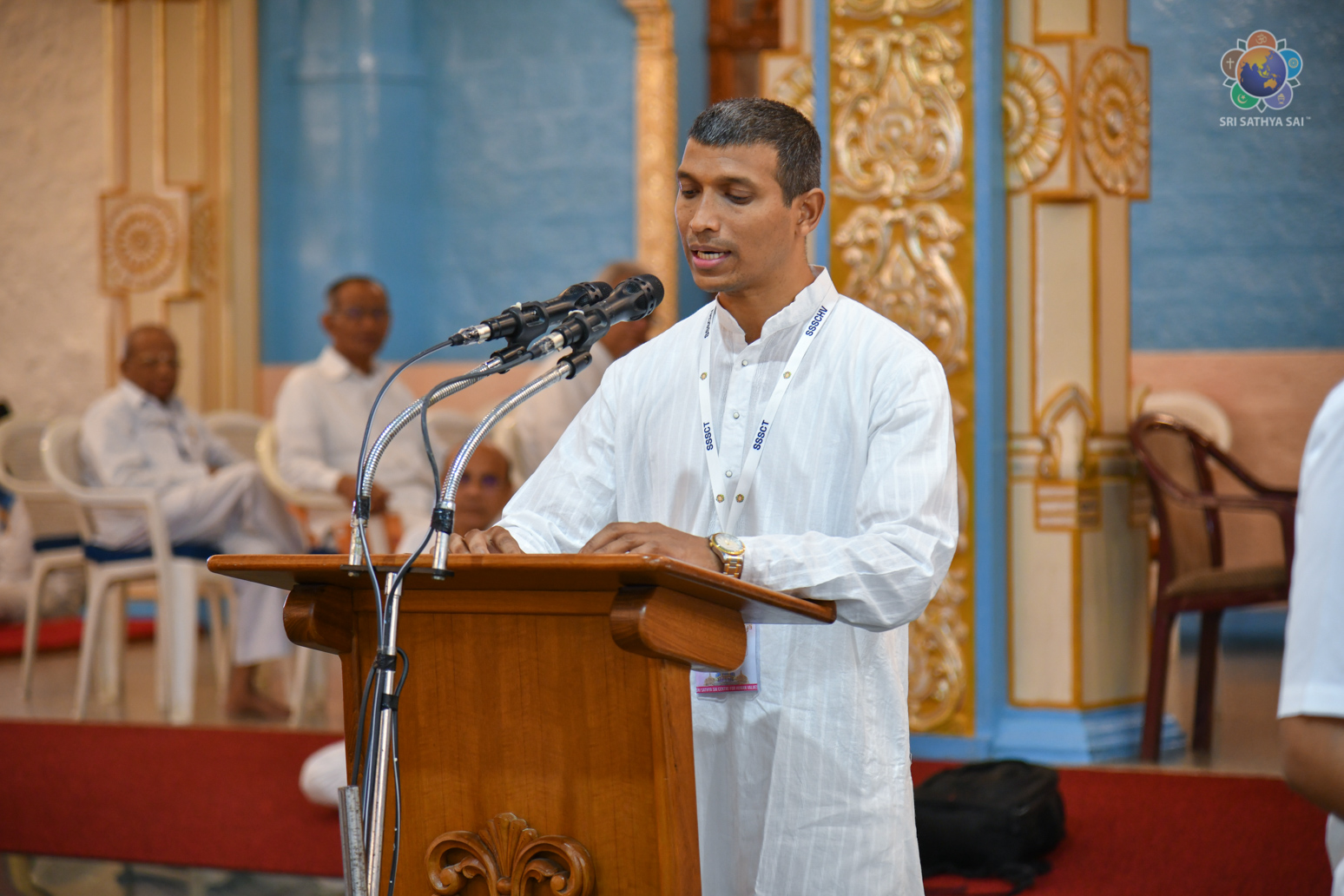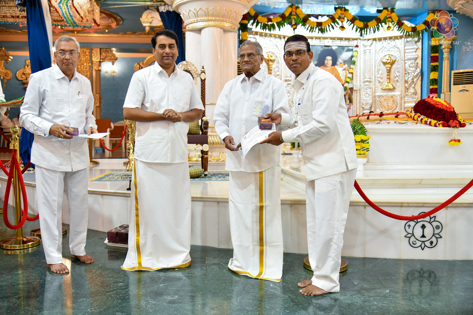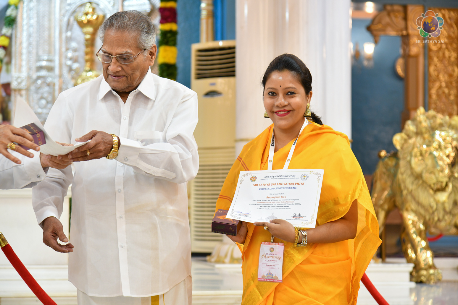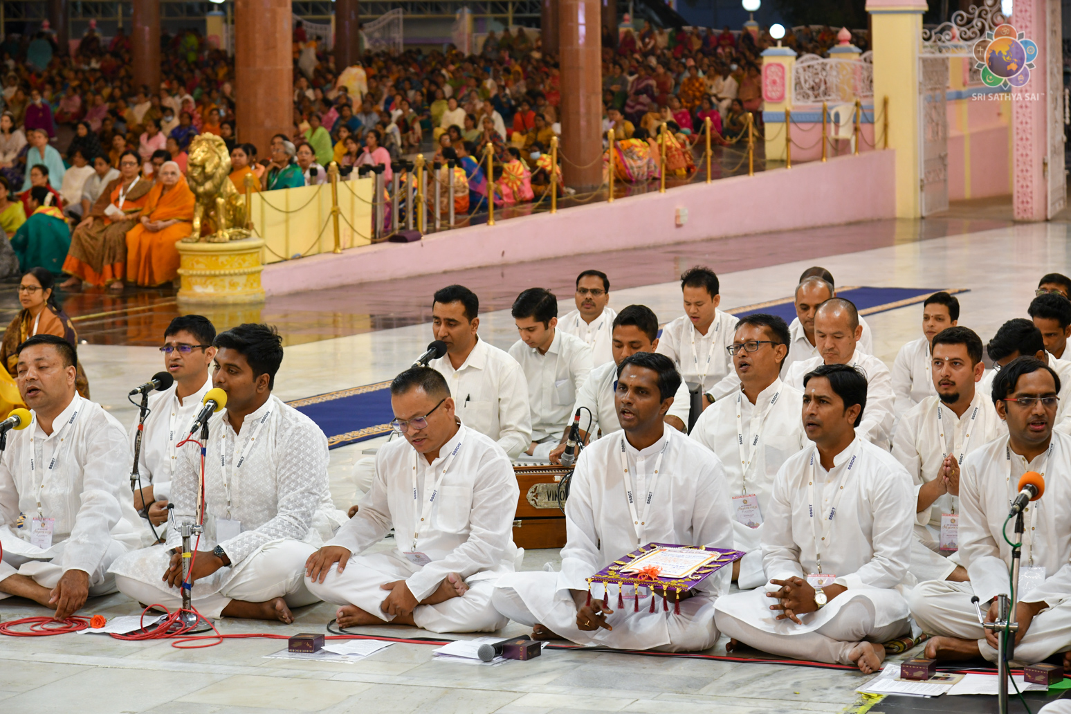 Loving Sai Ram and Greetings from Prasanthi Nilayam. The Sri Sathya Sai Centre for Human Values had conducted a 13 week Sri Sathya Sai Adhyatma Vidya Foundation Course based on Bhagawan’s 9-point code of conduct. As many as 63 participants who had successfully completed the course comprising of 14 modules were blessed with certificates and mementos in the Divine Presence this evening. After invocatory vedam chanting by the participants, Prof A Sudhir Bhaskar (Director, SSSCHV) explained about the purpose, structure and the modus operandi of this unique course. This was followed by two talks by participants, Sri Sravan from Telangana and Dr Reeta from Bengaluru. Both of them shared how the course has redefined their lives and has been a blessing for them in several ways. All the participants then offered a devotional music program interspersed with shorts talks wherein they expressed their gratitude to Bhagawan.