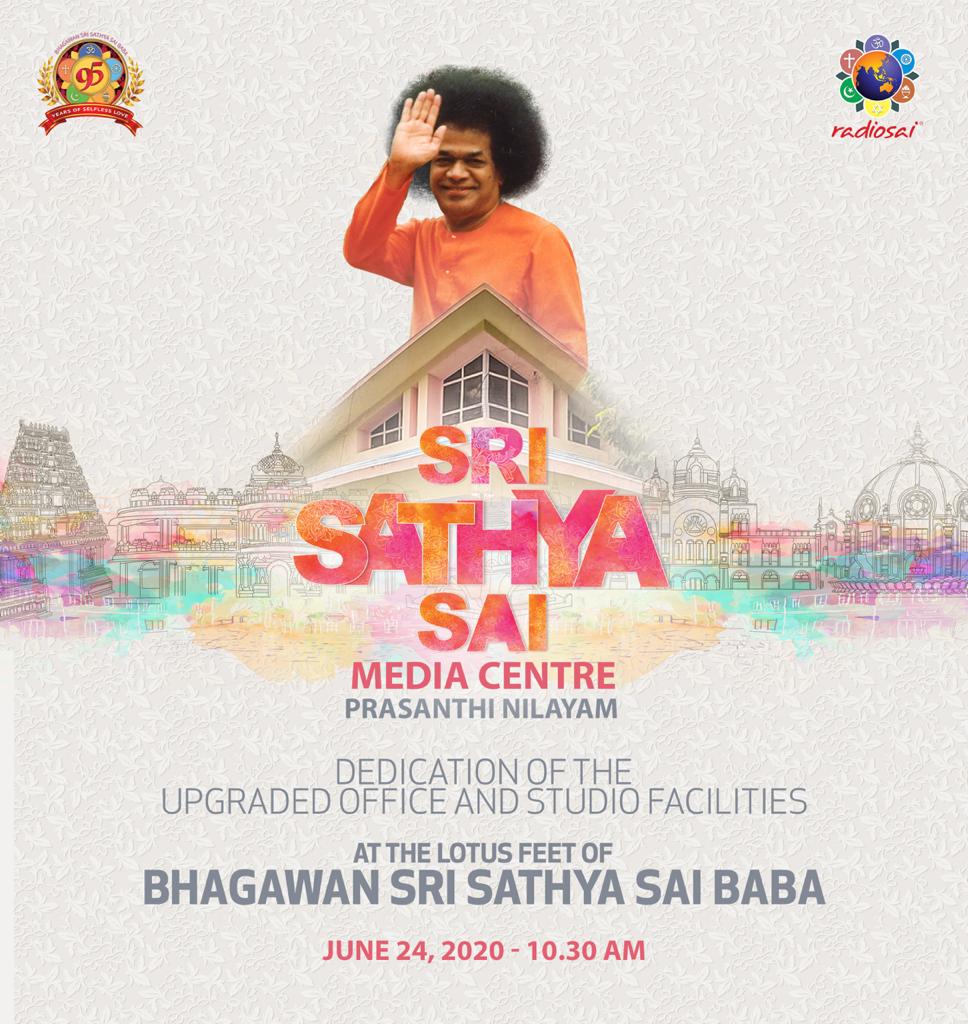 All of these facilities are offered at the Divine Lotus feet of Bhagavan Baba today, 24th June, 2020. This institution has been given a new name invoking Bhagavan Baba's Divine blessings. Henceforth, the Radio Sai office will be known as Sri Sathya Sai Media Centre. It is a unit of Sri Sathya Sai Central Trust, Prasanthi Nilayam.