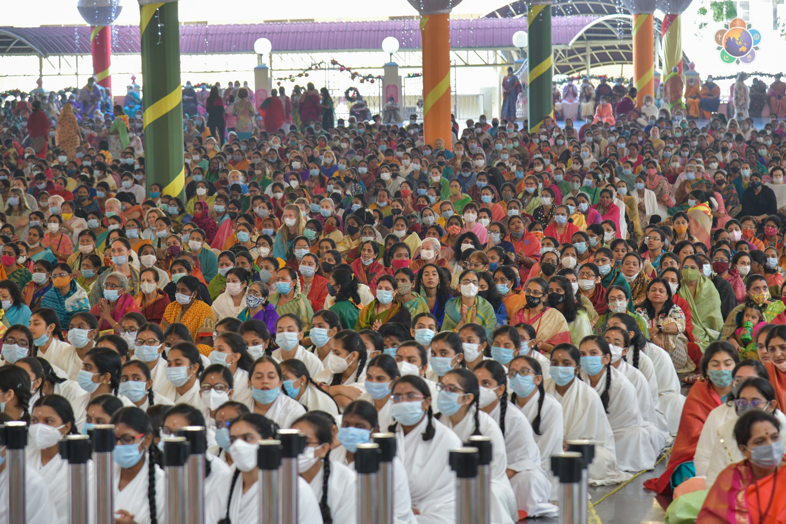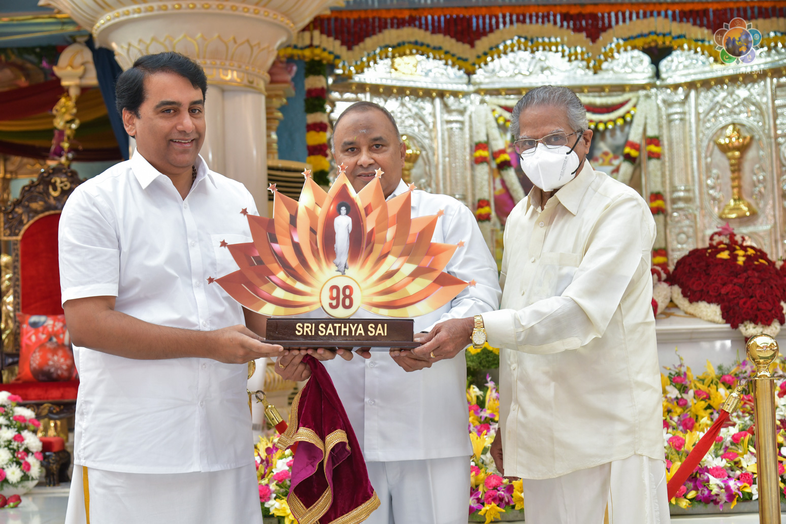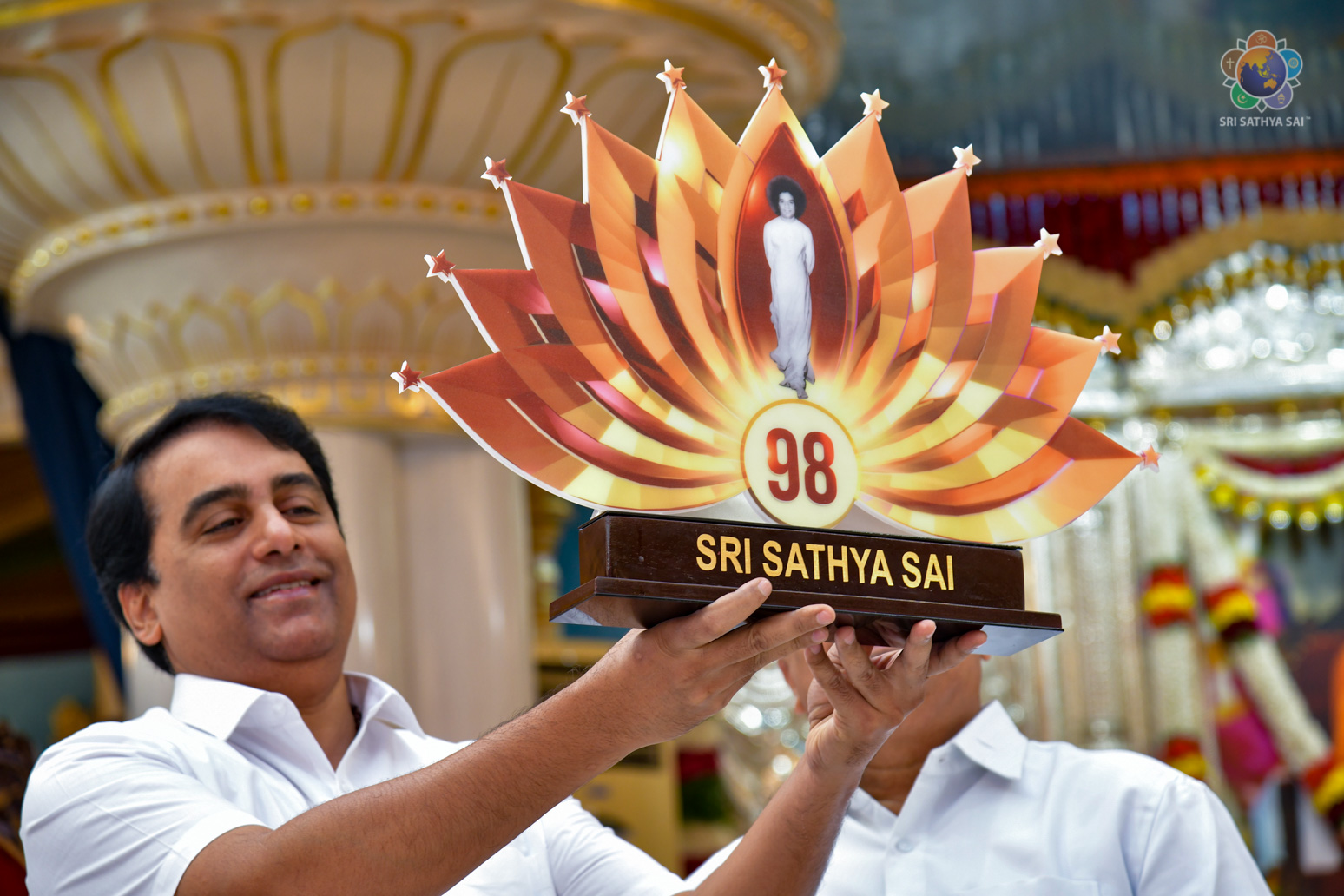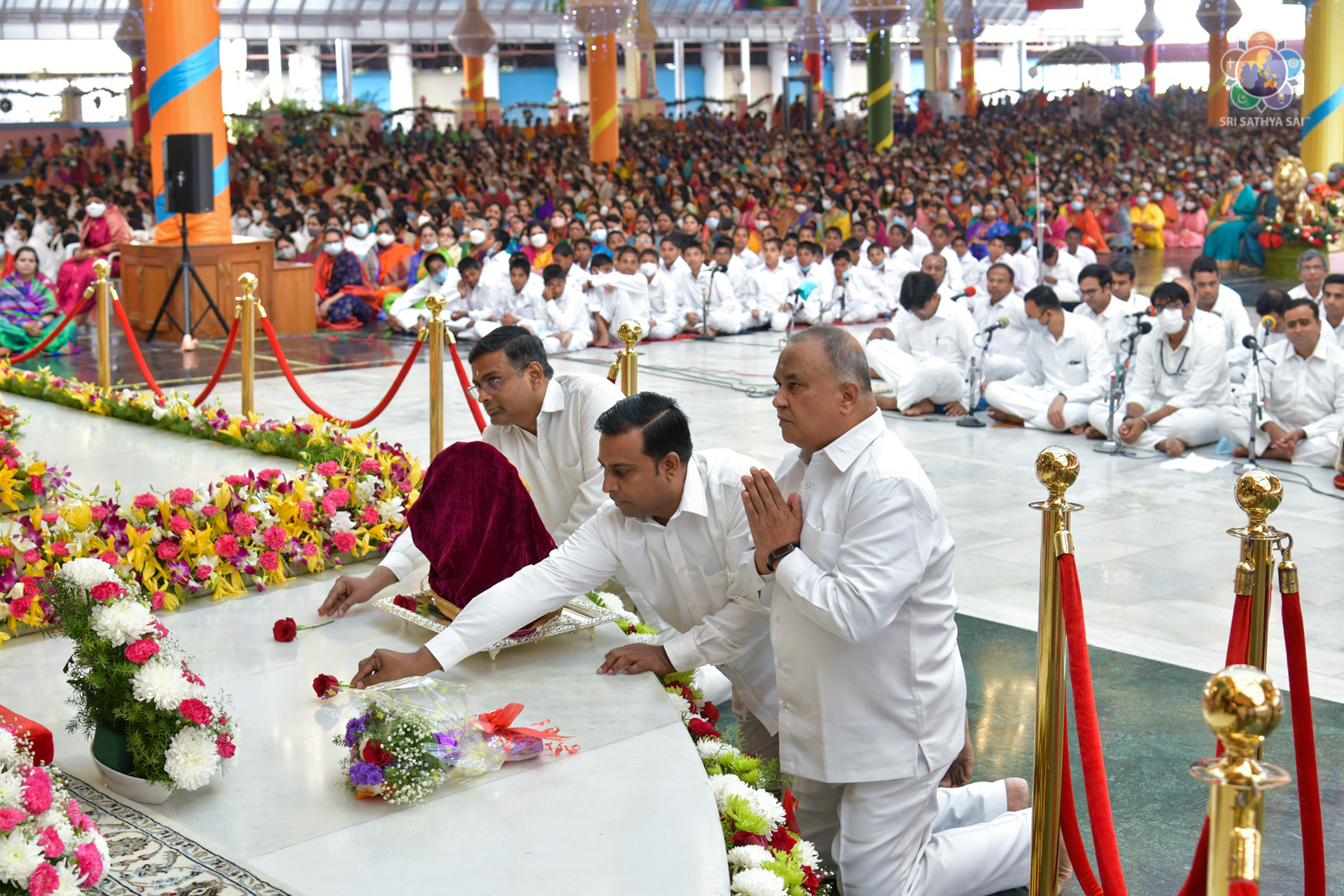 Loving Sai Ram and New Year Greetings from Prasanthi Nilayam. The New Year was ringed in today with music, love, and joyful reminiscences this morning at the Sai Kulwant Hall. The program began with the Institute Brass Band from the Prasanthi Nilayam Campus offering a delightful collection of musical renditions. This was followed by a program by the Prasanthi Bhajan Group where the importance of singing the Divine Name through the day and through one's life's journey was reiterated through a medley of bhajans suitable for different times of the day. As January 1st also marks the Premabandham meet, the reunion of the alumni of Swami's institutions, there was talk by Sr Ravi Bhamidipati, an alumnus who studied at Brindavan between 1978-83. As a grand finale for this morning's program, the logo for the 98th Year of Advent was unveiled this morning and offered at Bhagawan's Sannidhi. We are sharing a few glimpses from the program this morning.