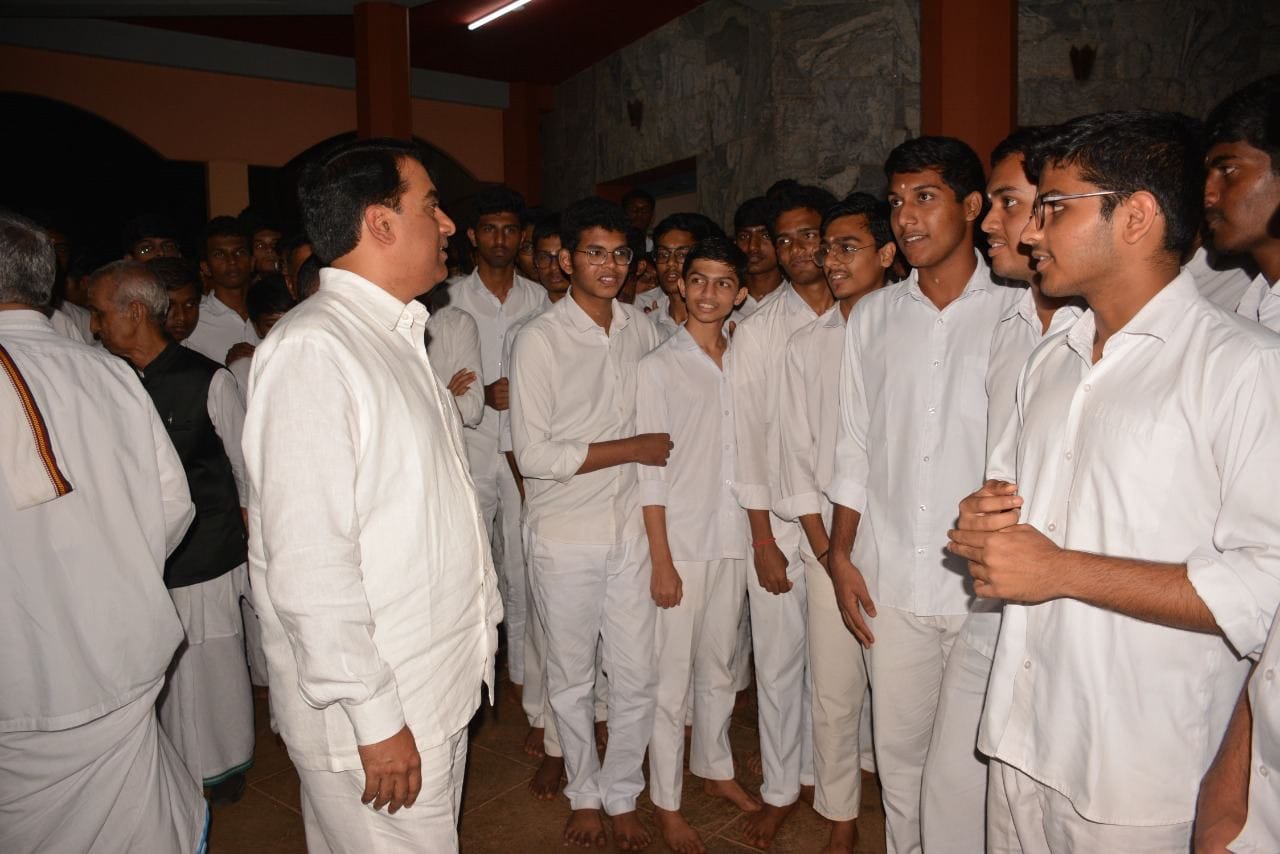 Earlier the students received him with their band playing vibrant tunes of many Sai bhajans. He was welcomed by the Chairman of Alike institutions, Sri Krishna Bhat and the Secretary, Sri Chandrasekhara Bhat.