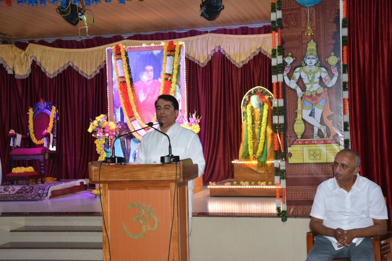 Sri R J Rathnakar, Managing Trustee, SSSCT, delivered an inspiring talk to the 700 students of the Sri Sathya Sai Loka Seva Trust, Alike this evening. He impressed on them the importance of respecting parents and teachers, and also narrated to them beautiful stories from Swami's childhood.
