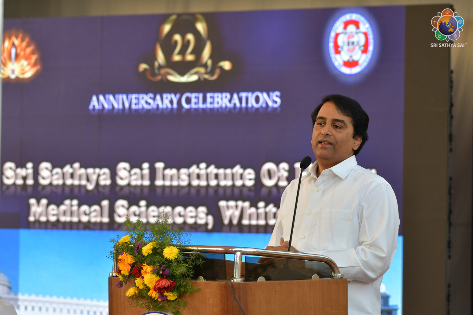 The Sri Sathya Sai Institute of Higher Medical Sciences, Whitefield, (Bhagawan's Super Speciality hospital in the city of Bengaluru) celebrates its 22nd Anniversary today. A special event was held at the hospital this evening to commemorate the event in the presence of Chief Guest, Sri Tushar Giri Nath, IAS, Chief Commissioner, Bruhat Bengaluru Mahanagara Palike.