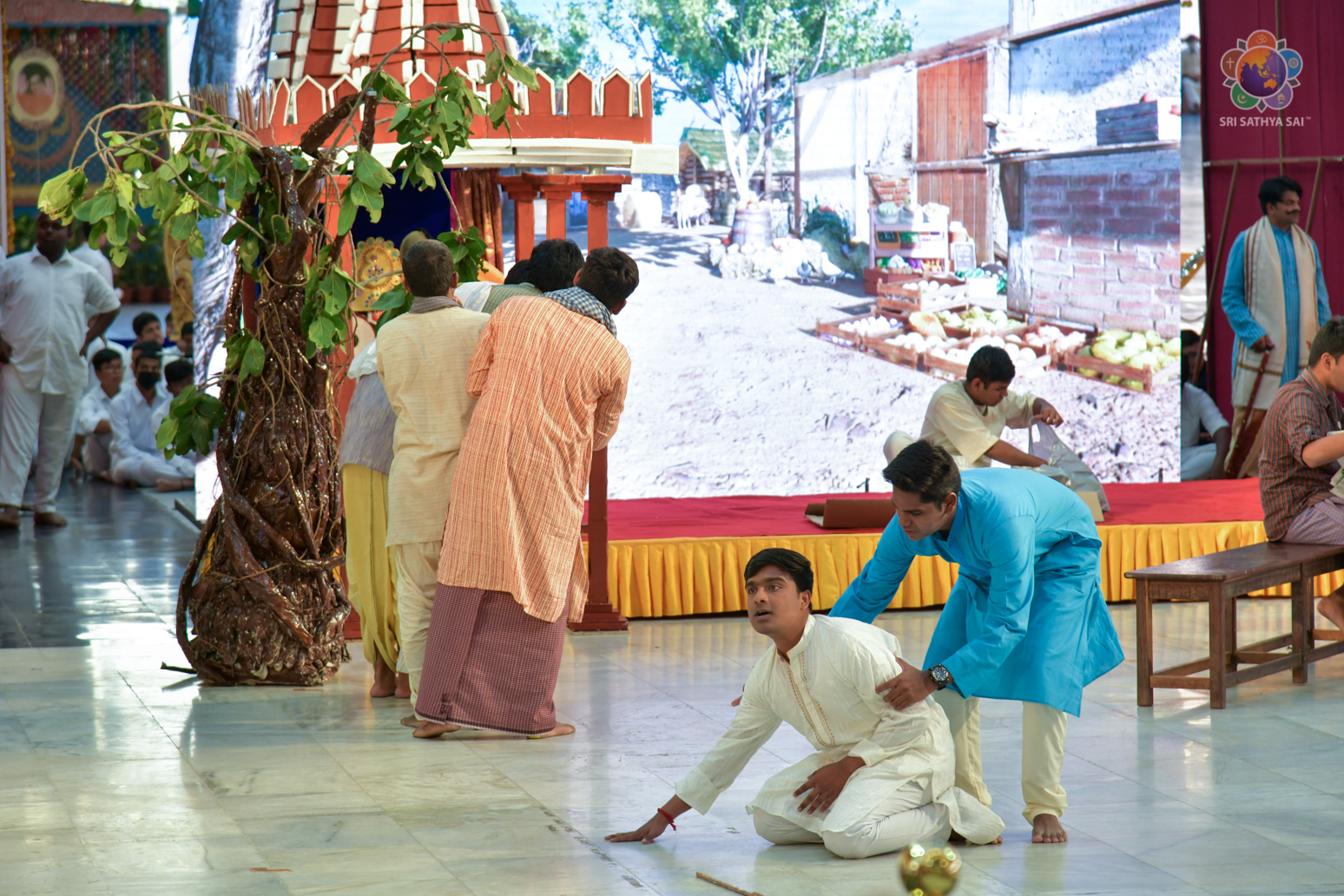 Loving Sai Ram and greetings from Prasanthi Nilayam. As part of Annual Sports and Cultural Meet and Sankranthi Celebrations, the students from Sri Sathya Sai Institute of Higher Learning, Muddenahalli Campus presented a drama entitled ‘The Familiar Stranger. Please find the glimpses of the same.