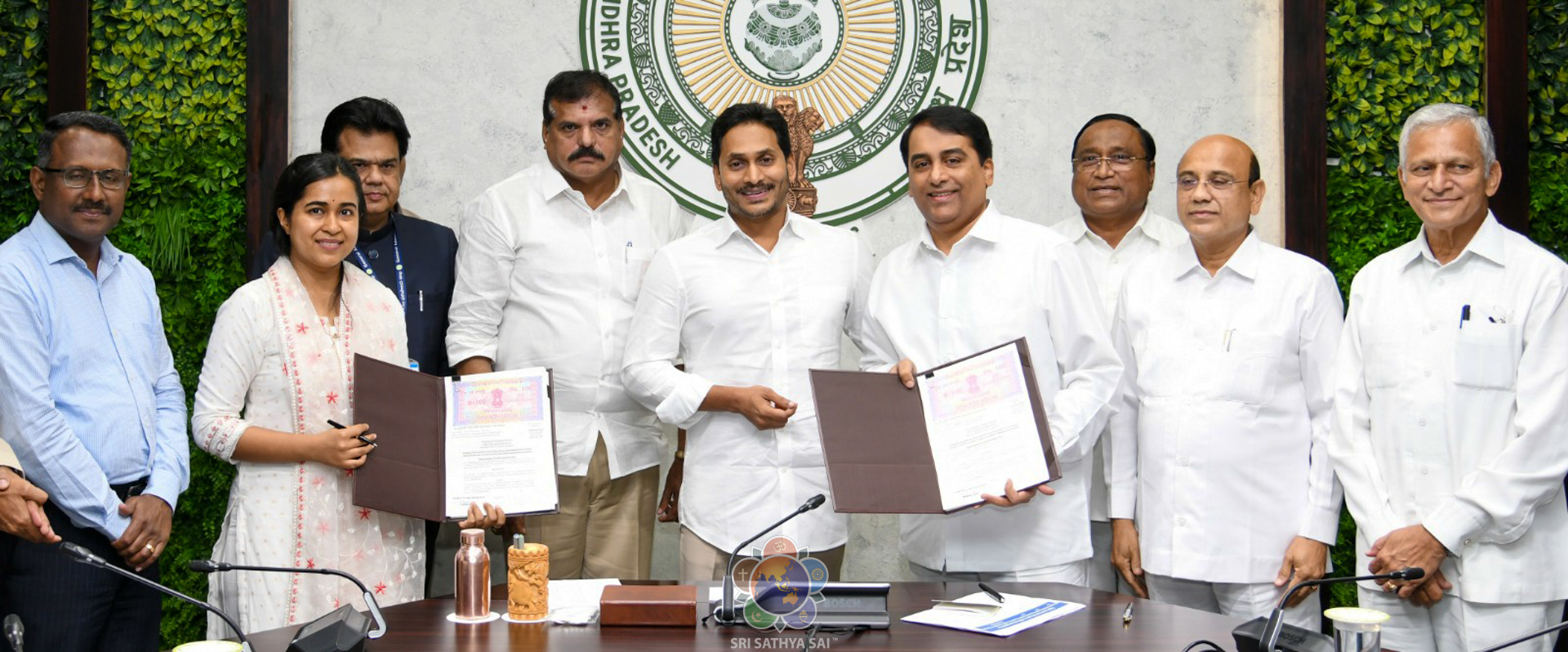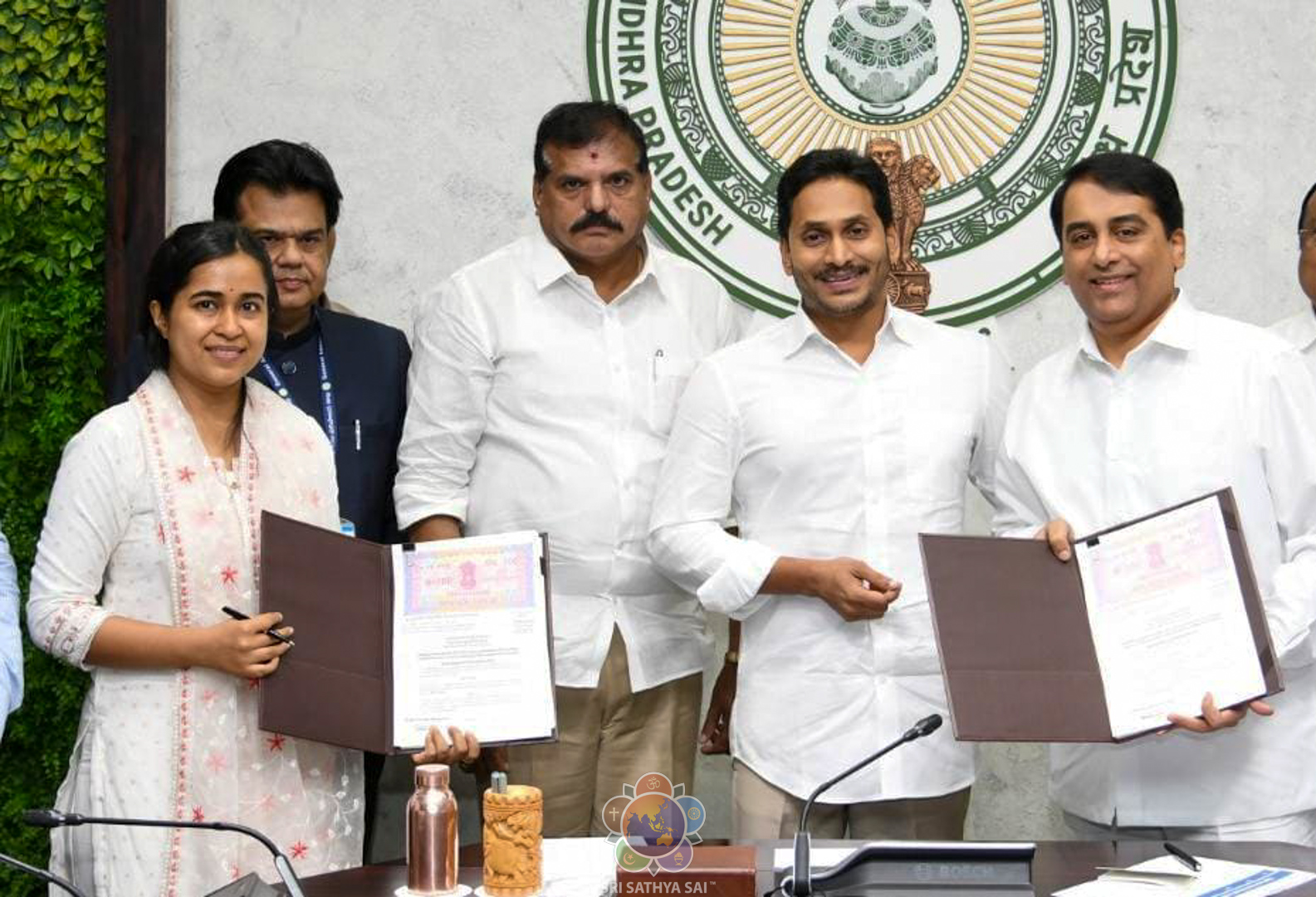 Director, Mid Day Meals Scheme, Govt of Andhra Pradesh met the Managing Trustee and Trustees of Sri Sathya Sai Central Trust on 11th January 2023 and presented the proposal in which the District Collector and the District Educational Officer of Sri Sathya Sai District were also present.
