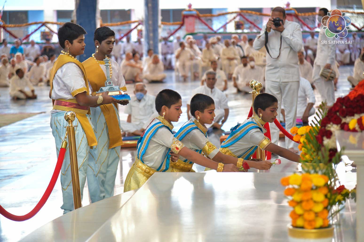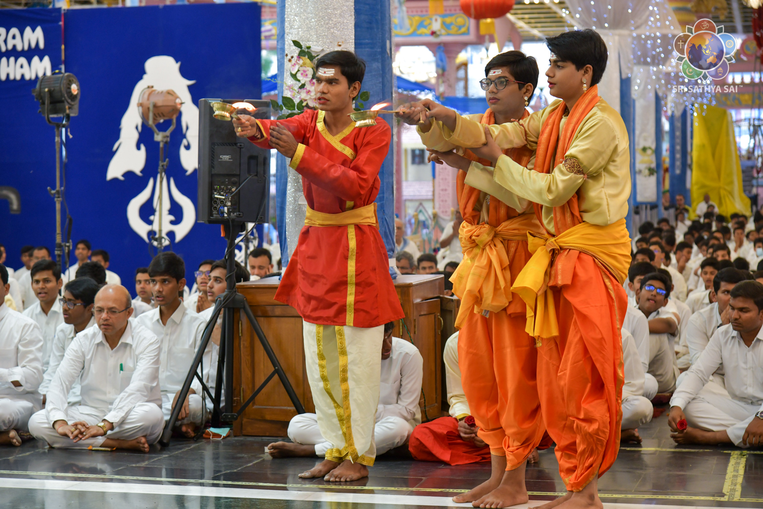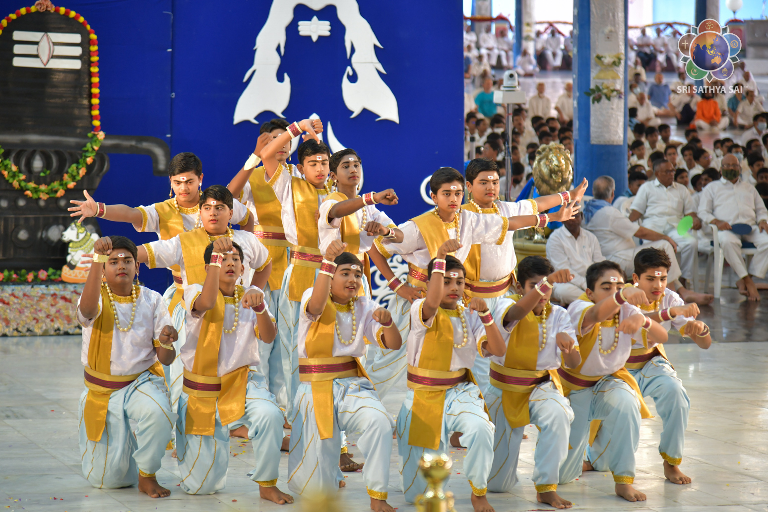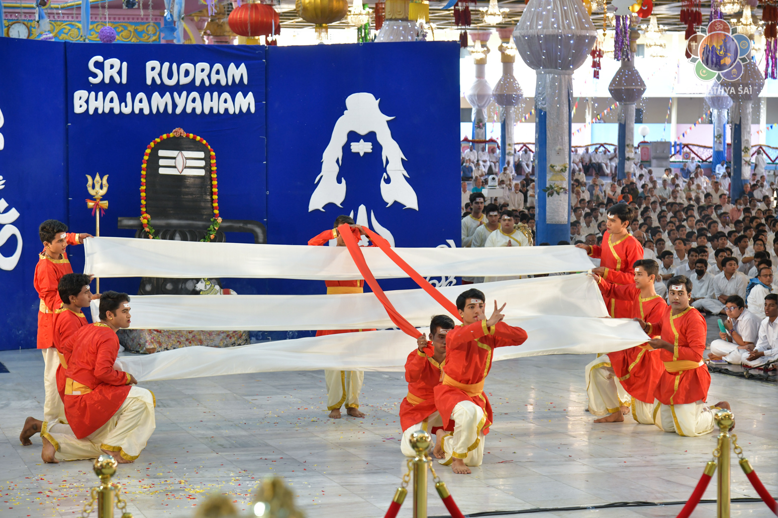 Loving Sai Ram and greetings from Prasanthi Nilayam. On the auspicious eve of Maha Shivaratri, the Prasanthi Dance Group (comprising students from Bhagawan's Educational Institutions) offered a beautiful dance presentation titled 'Sri Rudram Bhajamyaham'.