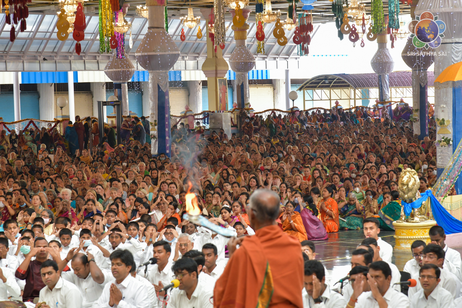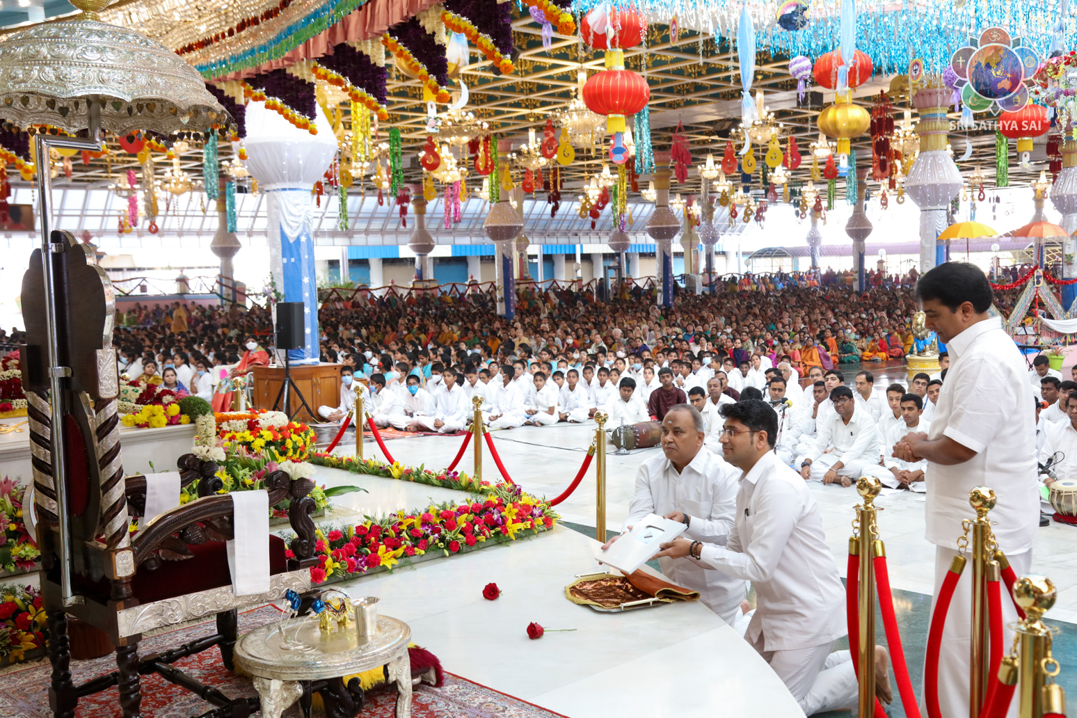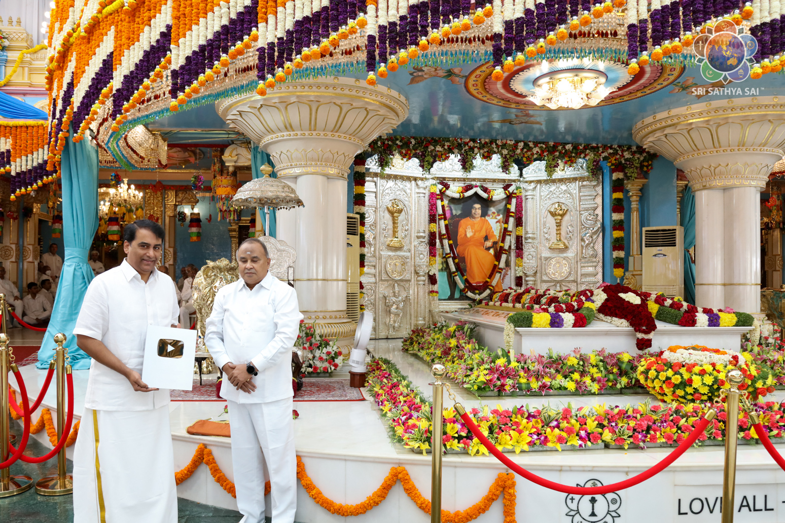 Loving Sai Ram and Shivaratri Greetings from Prasanthi Nilayam The morning proceedings began with Instrumental presentations by the Institute Brass Band and Panchavadyam group. This was followed by Devotional Music program by the Prasanthi Bhajan group. The Sri Sathya Sai Media Centre then offered at the Lotus Feet of Bhagawan, the Silver Creator Award credited by YouTube on achieving the milestone of crossing 1 Lakh subscribers for its 3rd channel, Prasanthi Mandir Live. A new web app - sssprematharu.org was then launched in the Divine Presence by the revered trustees. On Bhagawan's 97th Birthday, the Sri Sathya Sai Central Trust along with the Sri Sathya Sai Global Council launched an unique initiative called Sri Sathya Sai Prema Tharu - the goal is to plant 10 million trees as our offering to Bhagawan for His centenary celebrations. To track and facilitate this green mission, this web app is being launched so that every person who plants a tree can register their tree here, track its growth as well as see how this nobel mission is progressing globally on a daily basis.
