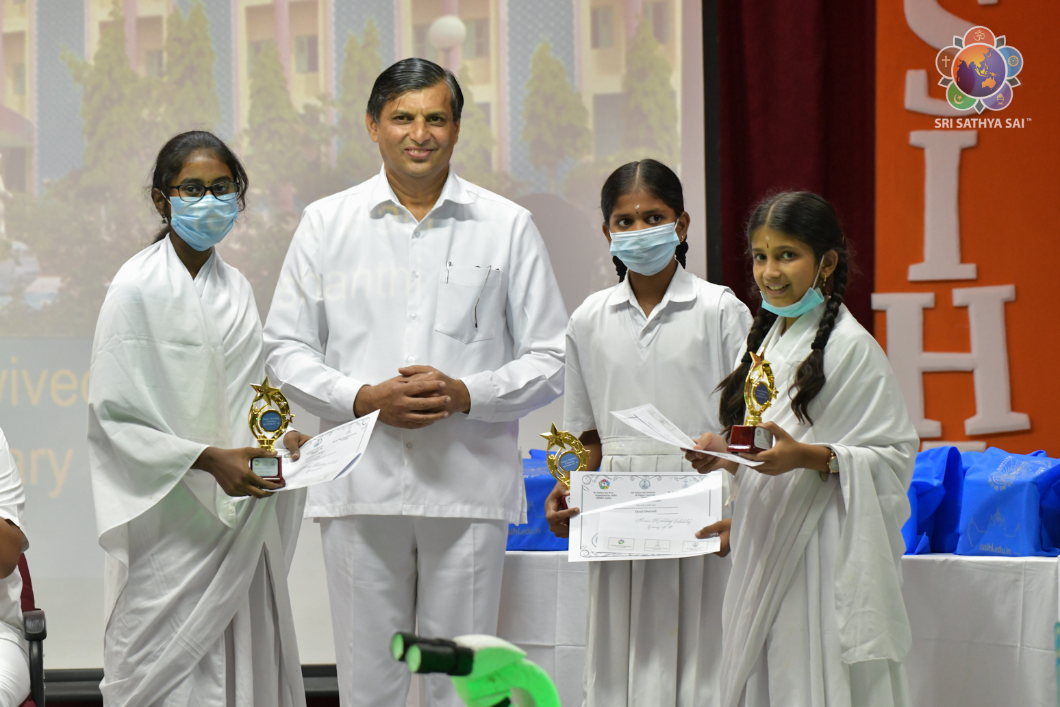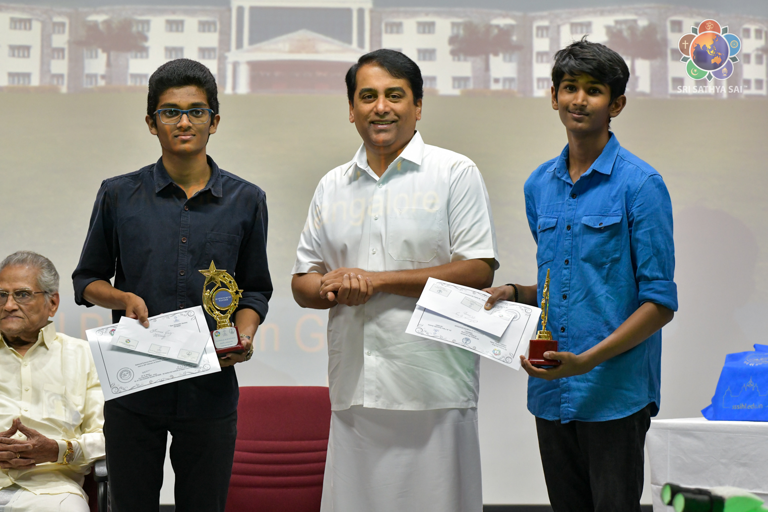 The National Science Day was observed at the Sri Sathya Sai Institute of Higher Learning today. Over 900 participants from various schools across India participated in several competitions leading up to the event that included essay writing, painting, quiz, research poster competitions, etc. The event was organised in collaboration with Sri Sathya Sai Seva Organisation, India and Dr K. V. Rao Scientific Society. There was also an exhibition of science models that were put up by the students. Dr K Ratna, secretary and founder member of Dr K. V. Rao Scientific Society addressed the gathering first giving an overview of the efforts of the society in spreading the love of science among children. Dr B Sai Giridhar, Acting Vice Chancellor, Sri Sathya Sai Institute of Higher Learning spoke about the need for holistic learning integrated with a curriculum of physical, mental and spiritual development. Sri K Chakravarthi (Chairman, SSSGC) and Sri RJ Rathnakar (Managing Trustee, SSSCT) then gave away prizes to the winners of the various contests.