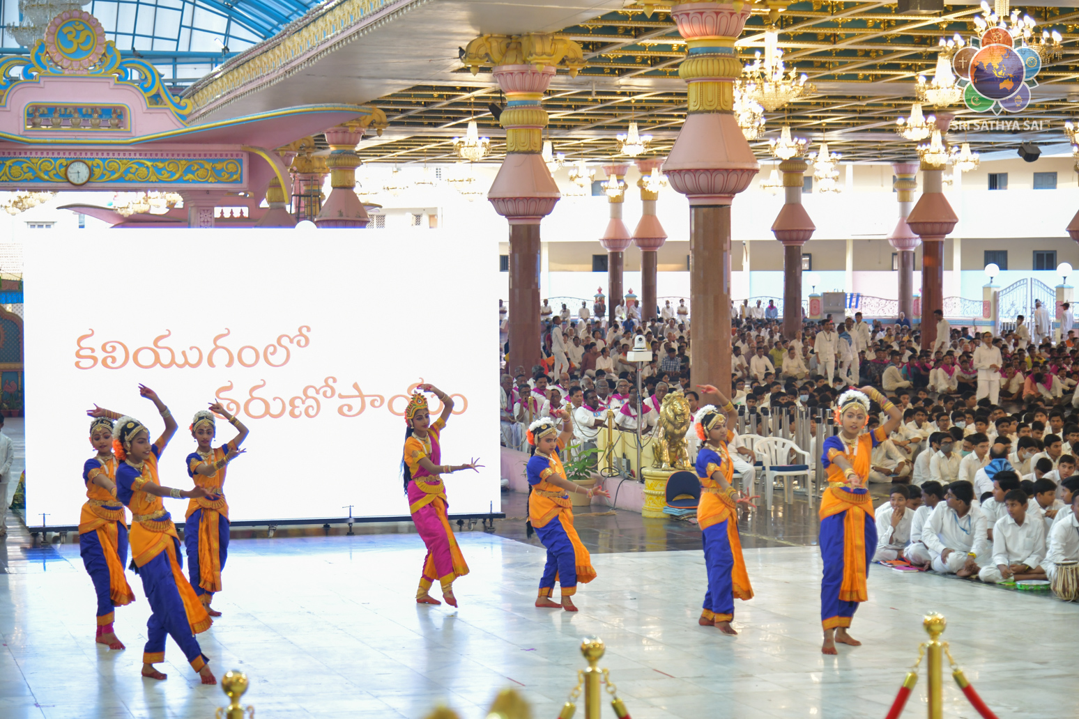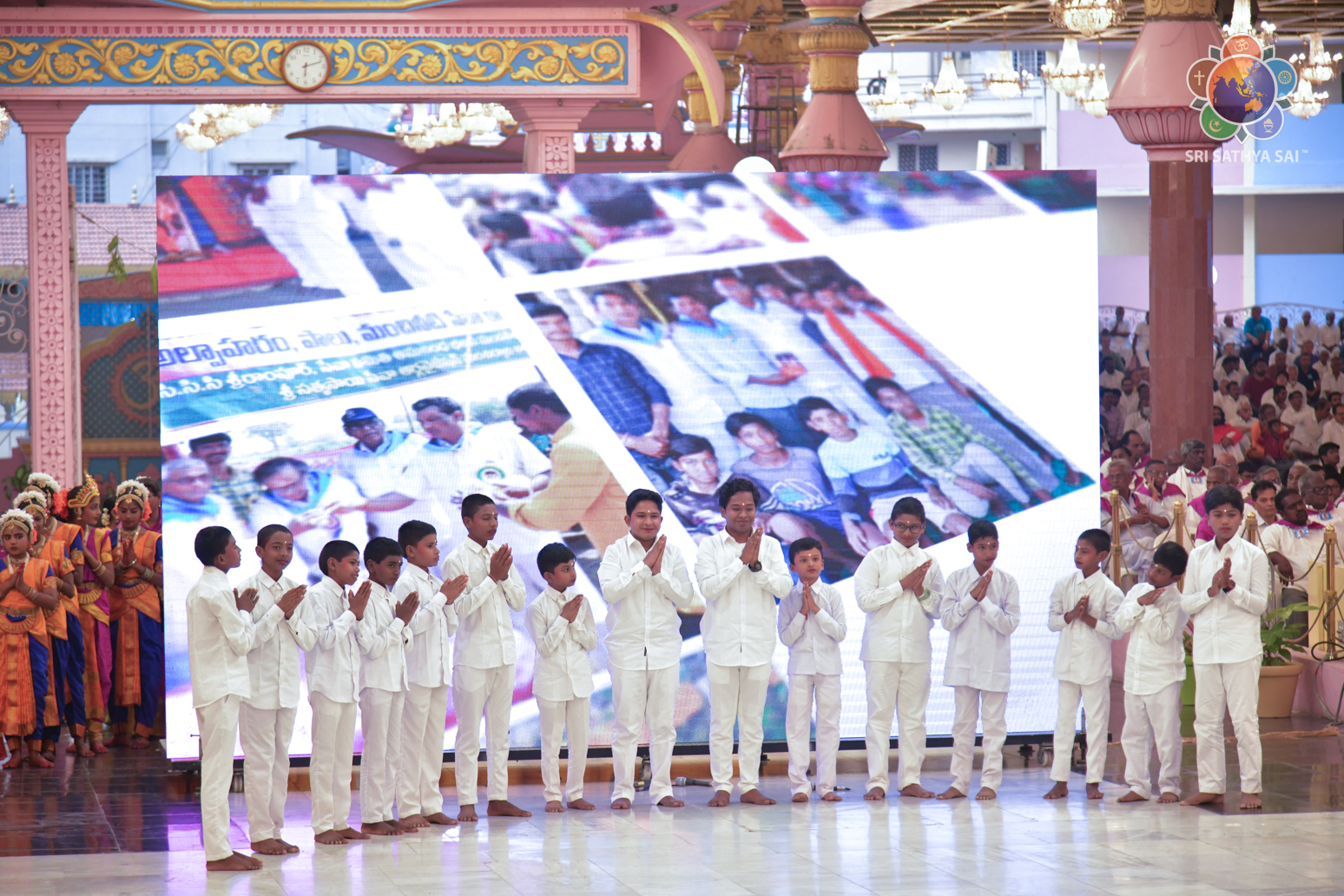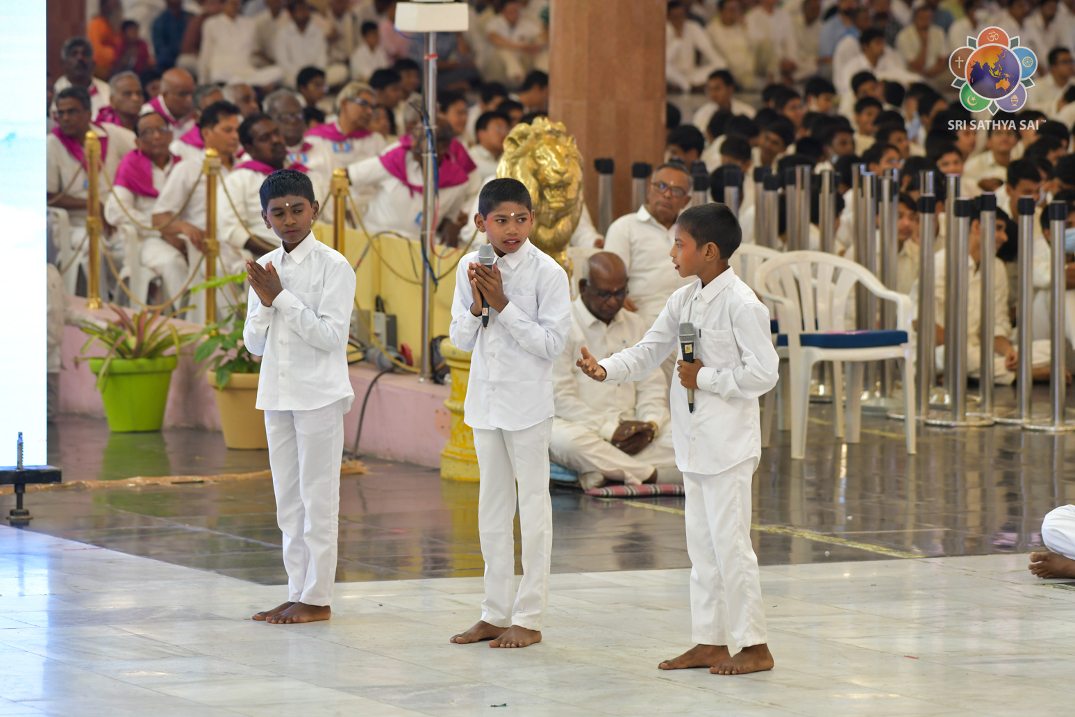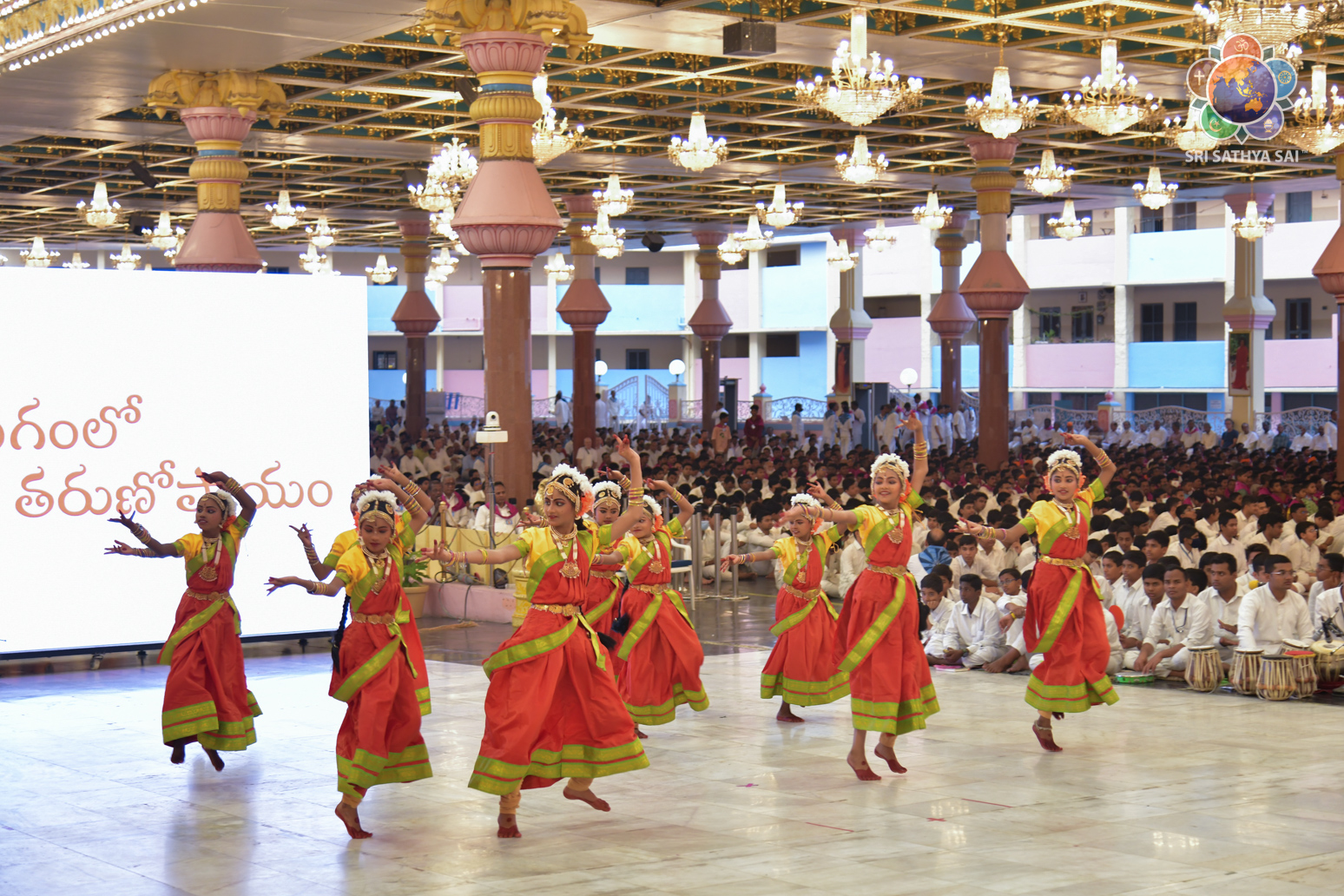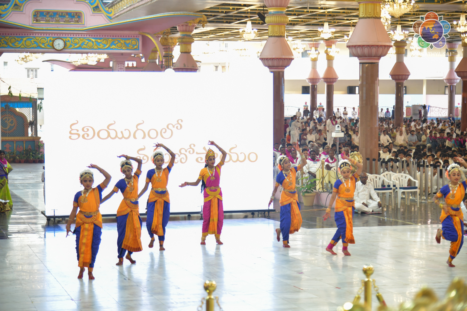 Loving Sai Ram and greetings from Prasanthi Nilayam. With the Divine Blessings of Bhagawan Sri Sathya Sai Baba, more than 2500 devotees from combined districts of Adilabad (including Komaram Bheem Asifabad Dist, Mancherial Dist and Nirmal Dist) have gathered here for their 3 day parthi yatra from March 04 - 06, 2023. The Bal Vikas children presented a cultural program titled 'Kaliyugamlo Tarunopayam' (Effective means of redemption in Kaliyuga) comprising of talk shows and dances. Earlier this evening, Sri N Srinivasa Rao (Dist President, Mancherial Dist) addressed the august gathering on various Seva initatives taken up by the devotees in the districts.