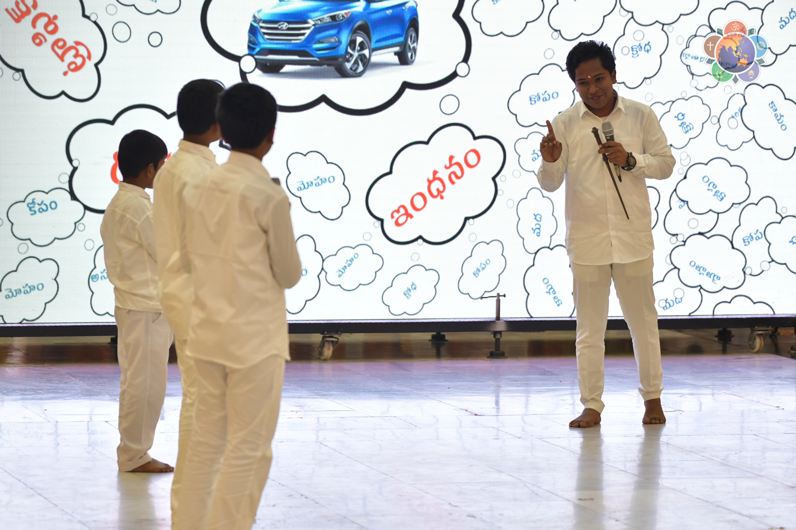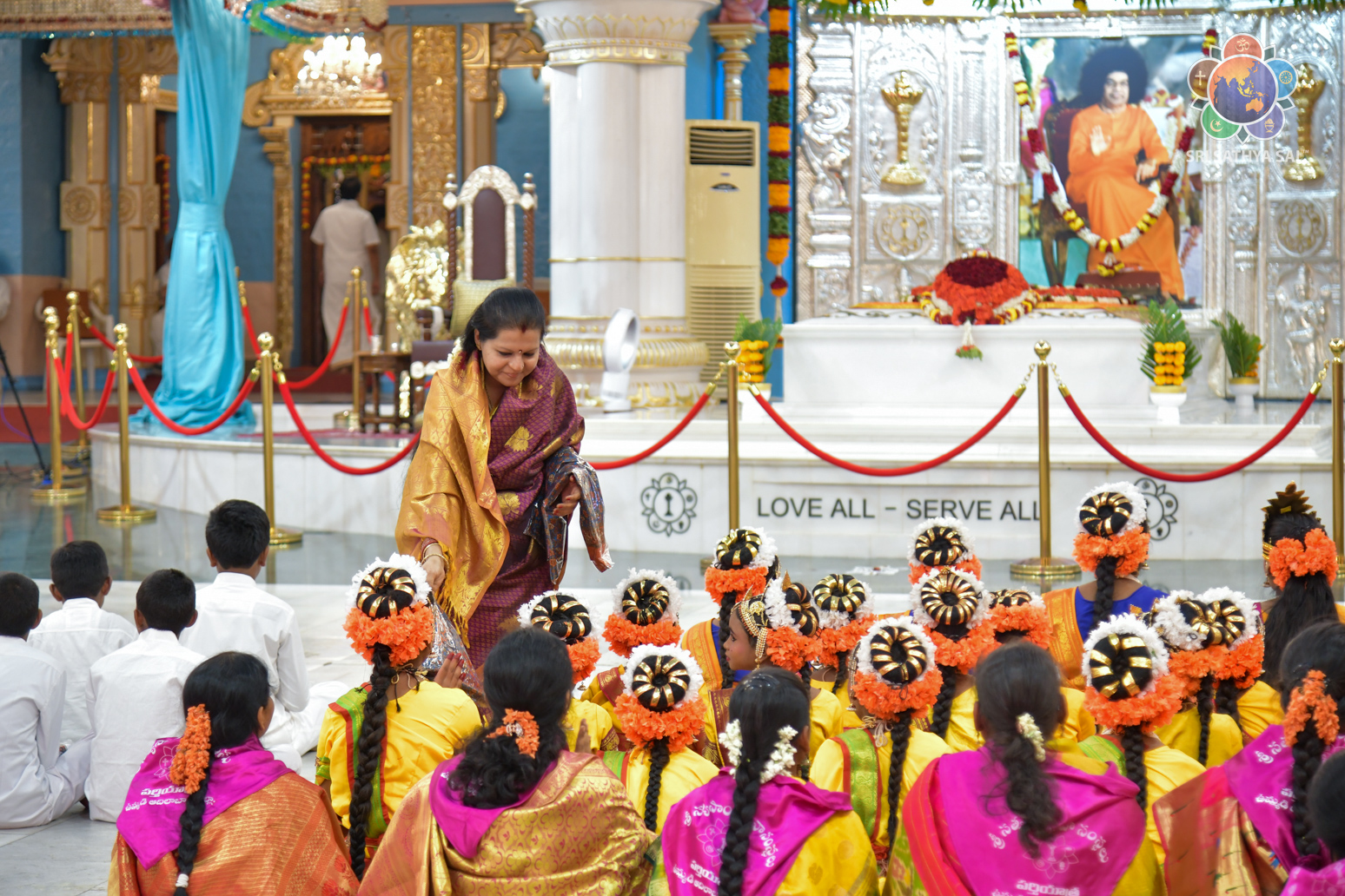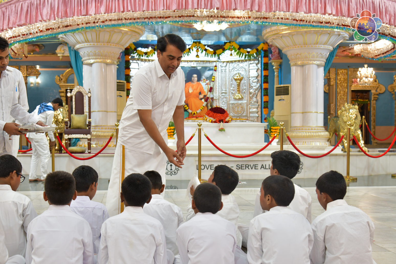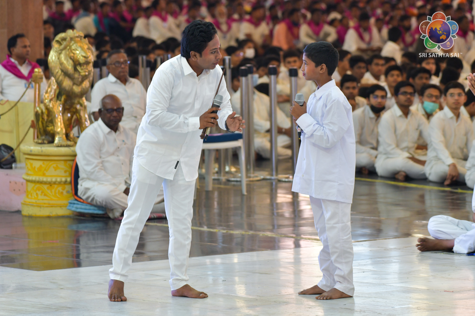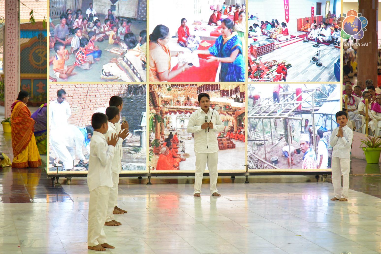 Loving Sai Ram and greetings from Prasanthi Nilayam. With the Divine Blessings of Bhagawan Sri Sathya Sai Baba, more than 2500 devotees from combined districts of Adilabad (including Komaram Bheem Asifabad Dist, Mancherial Dist and Nirmal Dist) have gathered here for their 3 day parthi yatra from March 04 - 06, 2023. The Bal Vikas children presented a cultural program titled 'Kaliyugamlo Tarunopayam' (Effective means of redemption in Kaliyuga) comprising of talk shows and dances. Earlier this evening, Sri N Srinivasa Rao (Dist President, Mancherial Dist) addressed the august gathering on various Seva initatives taken up by the devotees in the districts.