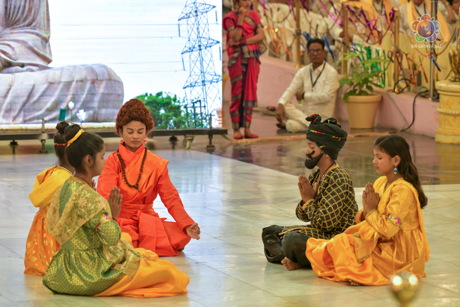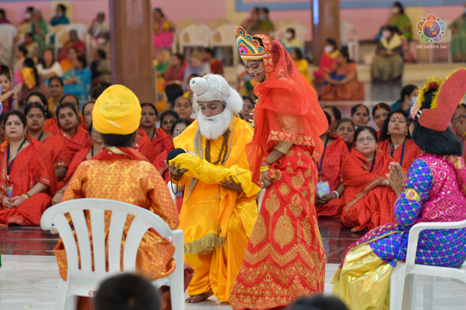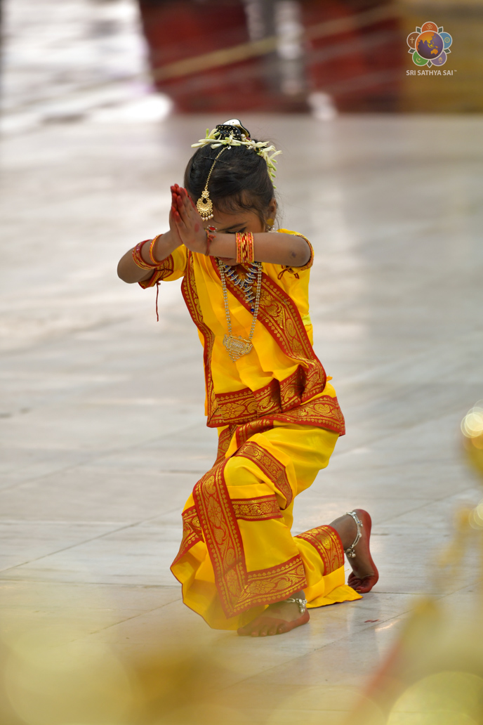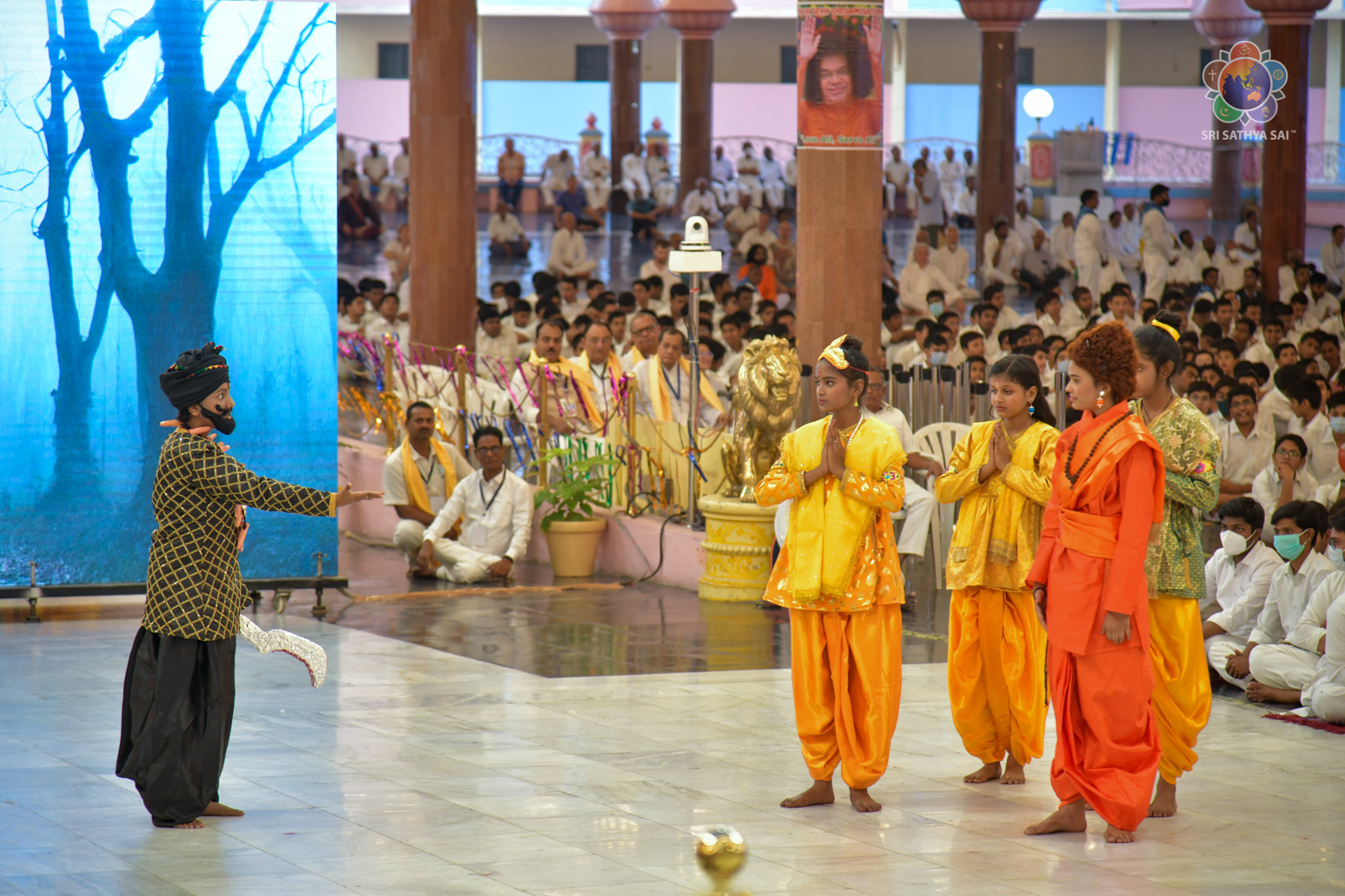The devotees from Bihar celebrated the vibrant and colorful festival of India, Holi, in the Divine Presence this evening in the form of a drama presentation titled 'Bhagawan Buddha' based on the life and teachings of Gautama Buddha.