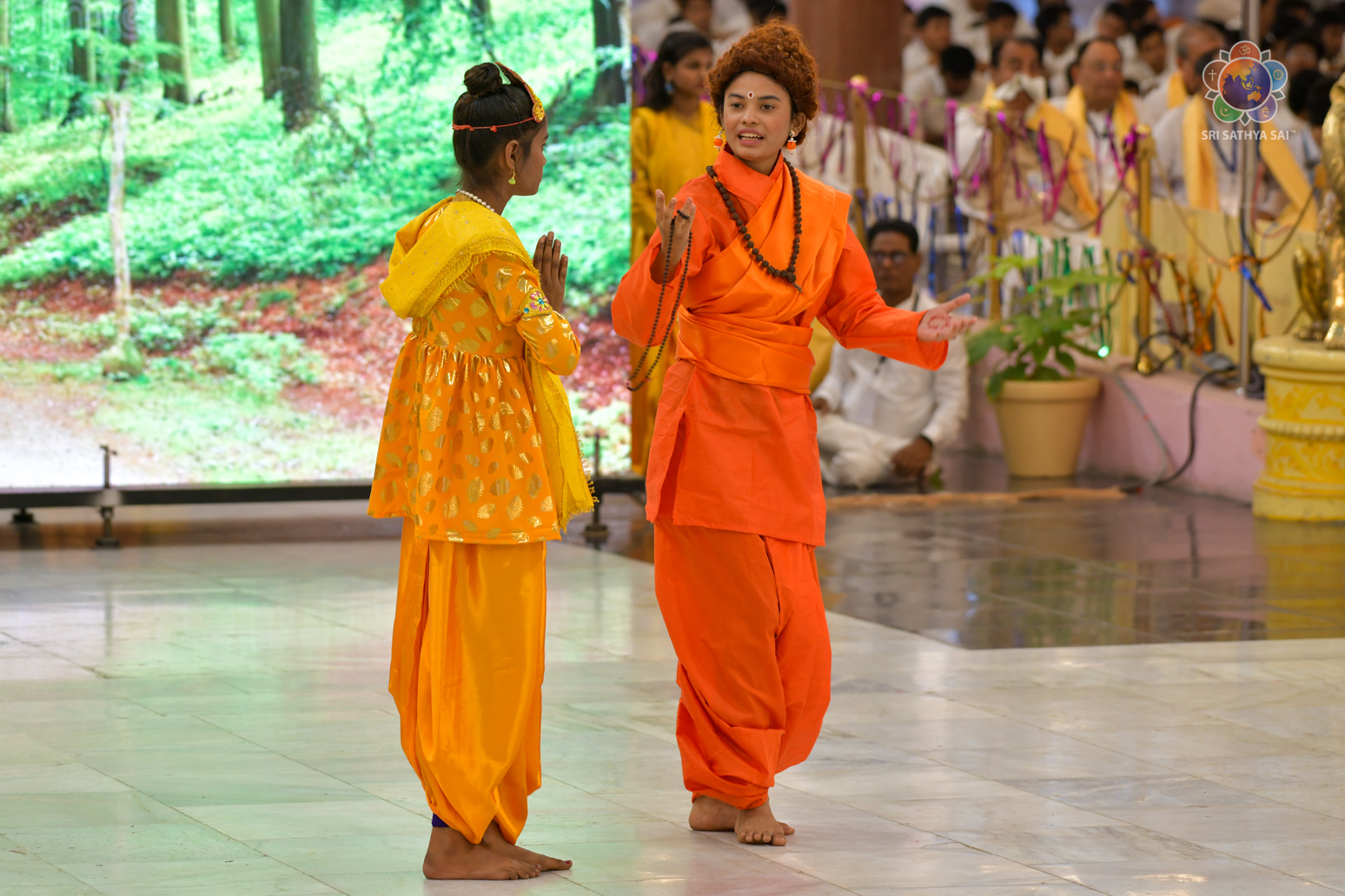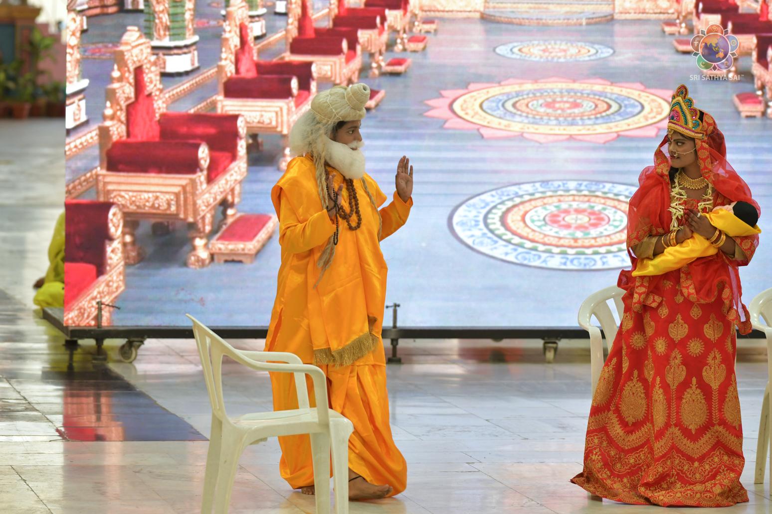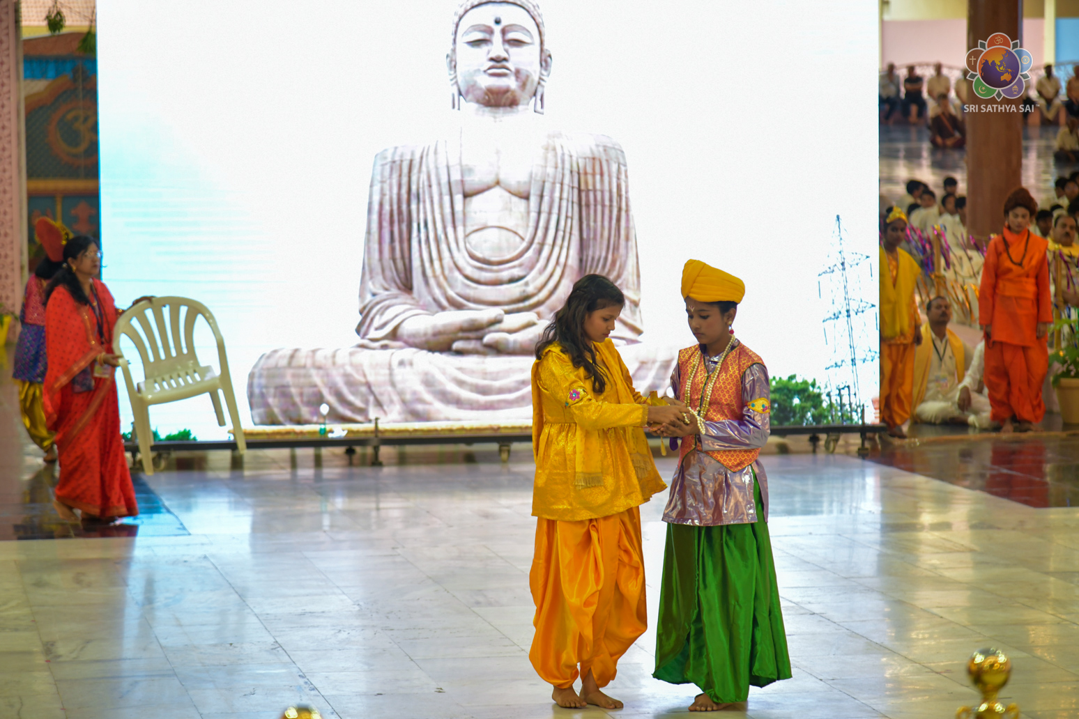 The devotees from Bihar celebrated the vibrant and colorful festival of India, Holi, in the Divine Presence this evening in the form of a drama presentation titled 'Bhagawan Buddha' based on the life and teachings of Gautama Buddha.