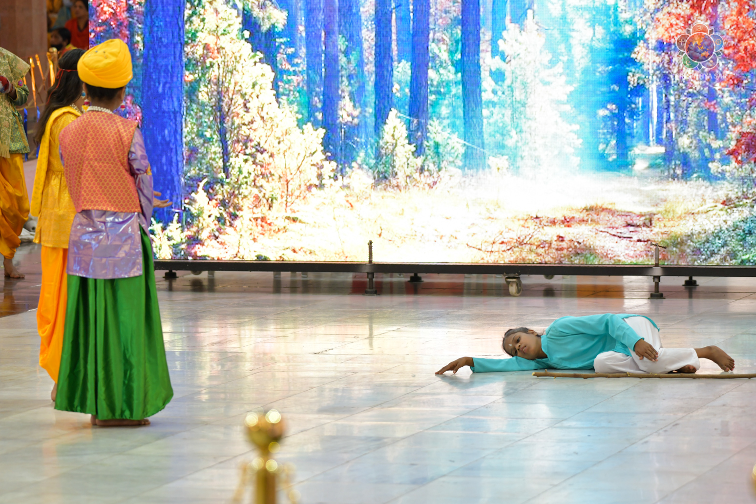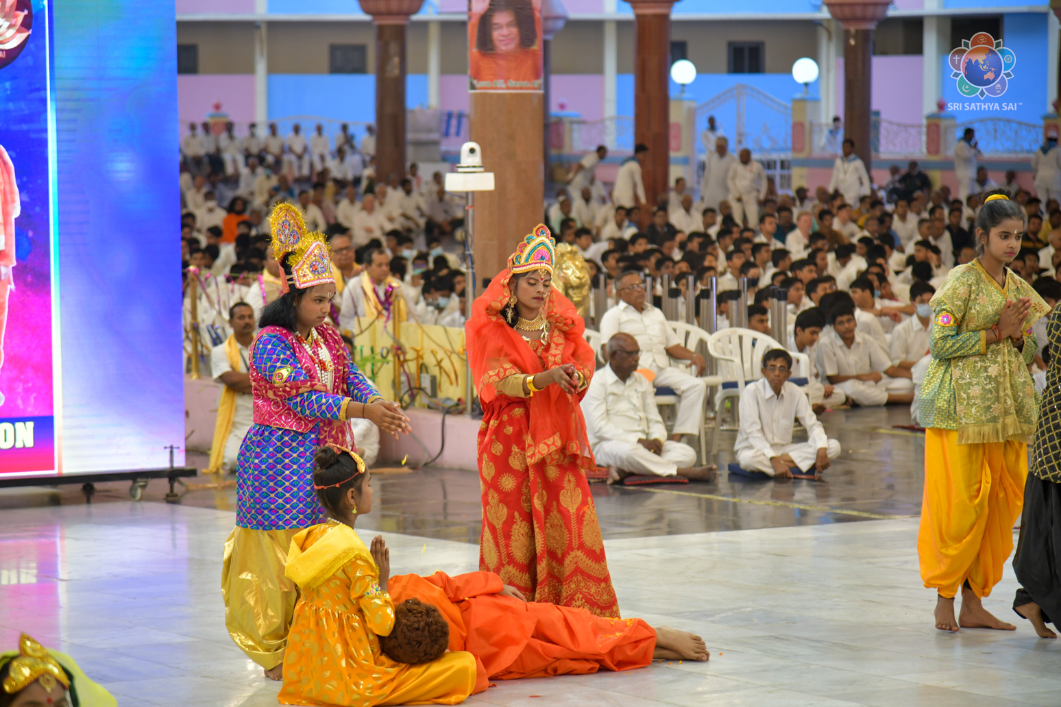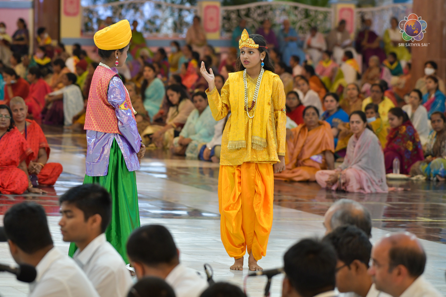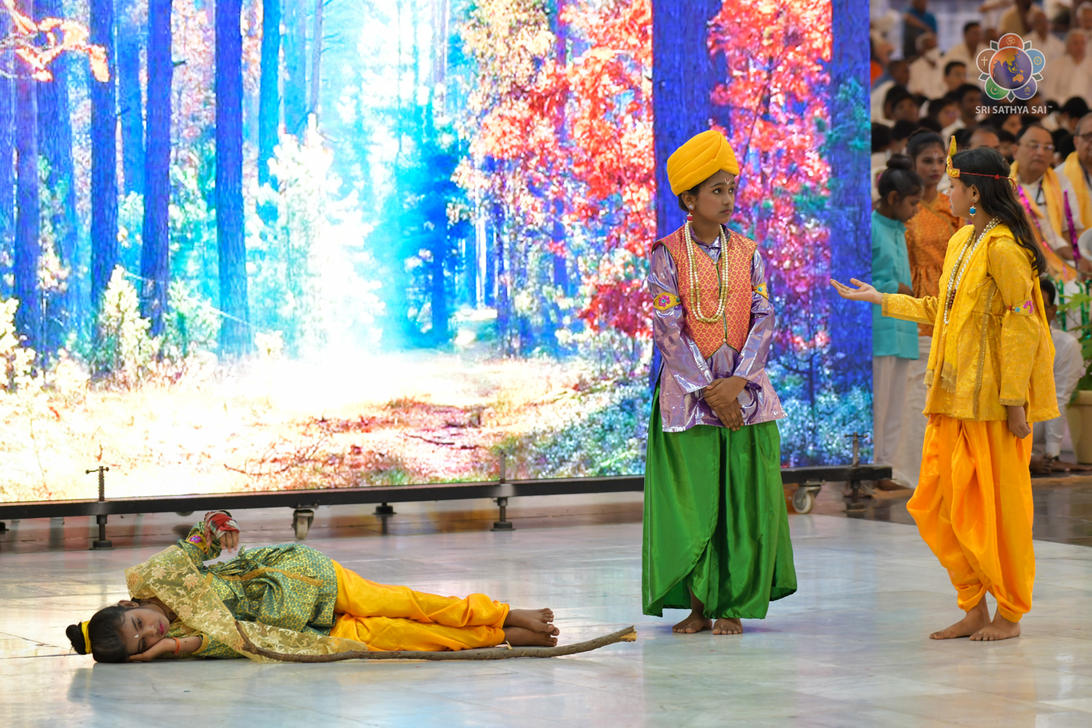The devotees from Bihar celebrated the vibrant and colorful festival of India, Holi, in the Divine Presence this evening in the form of a drama presentation titled 'Bhagawan Buddha' based on the life and teachings of Gautama Buddha.