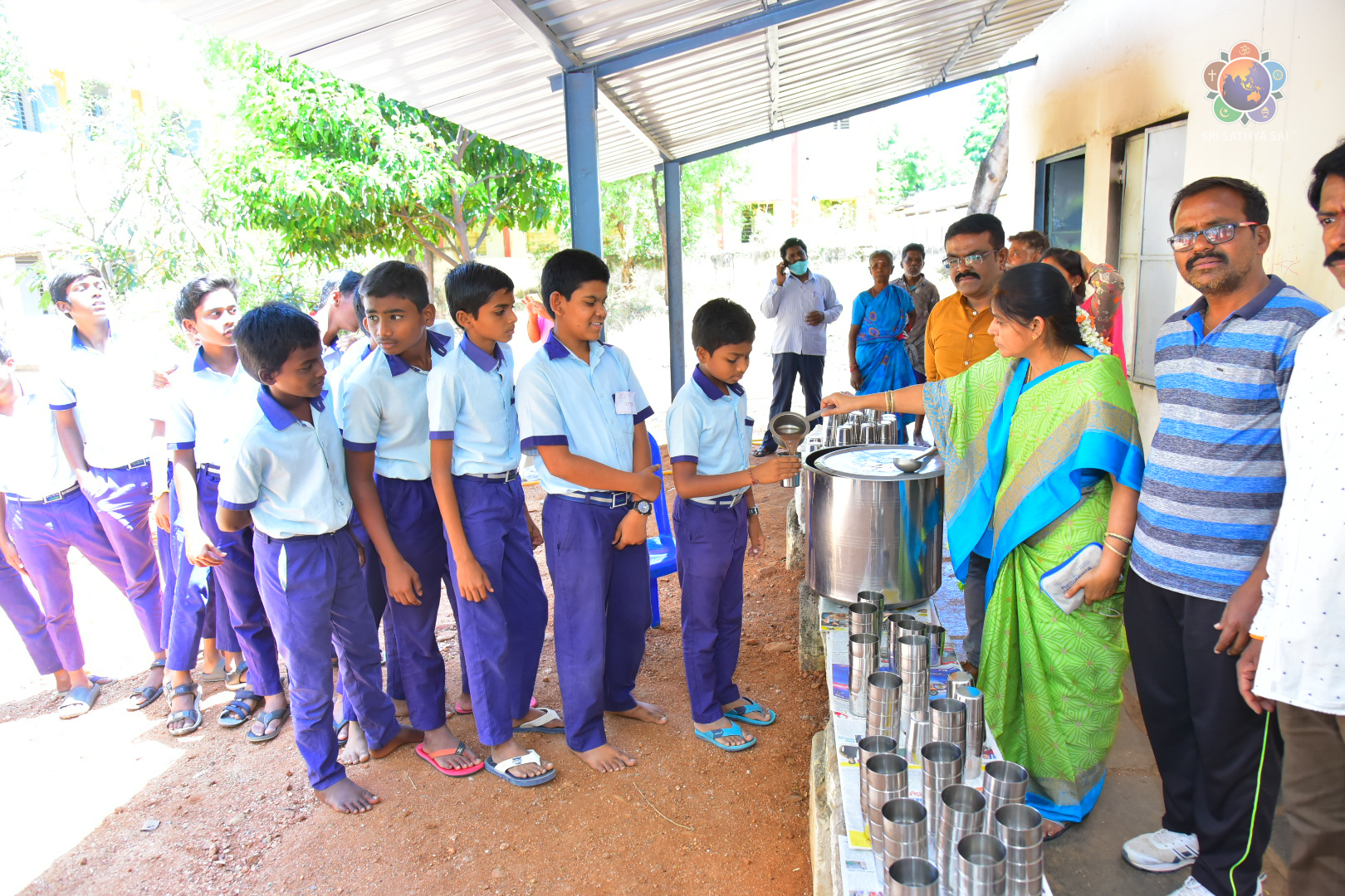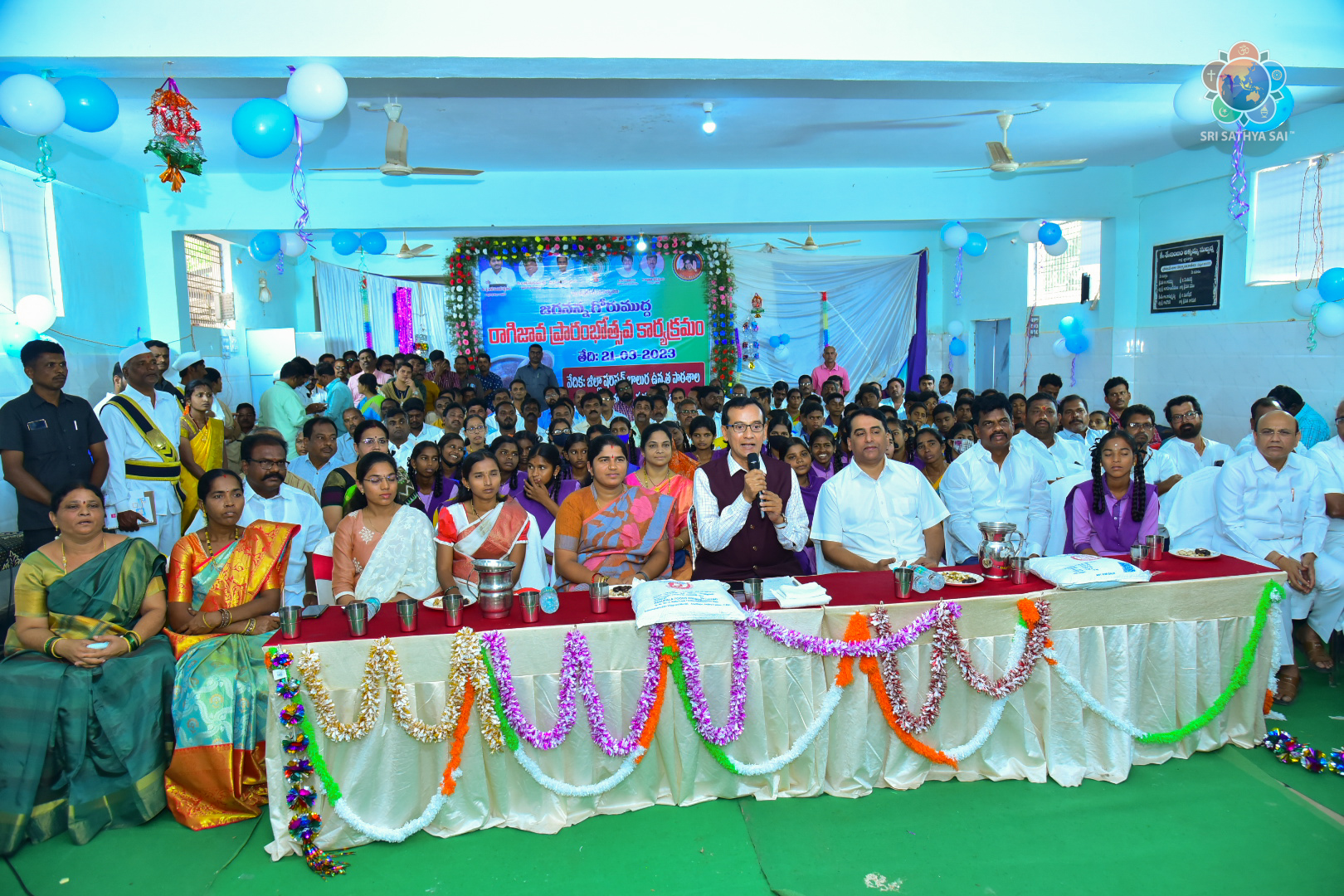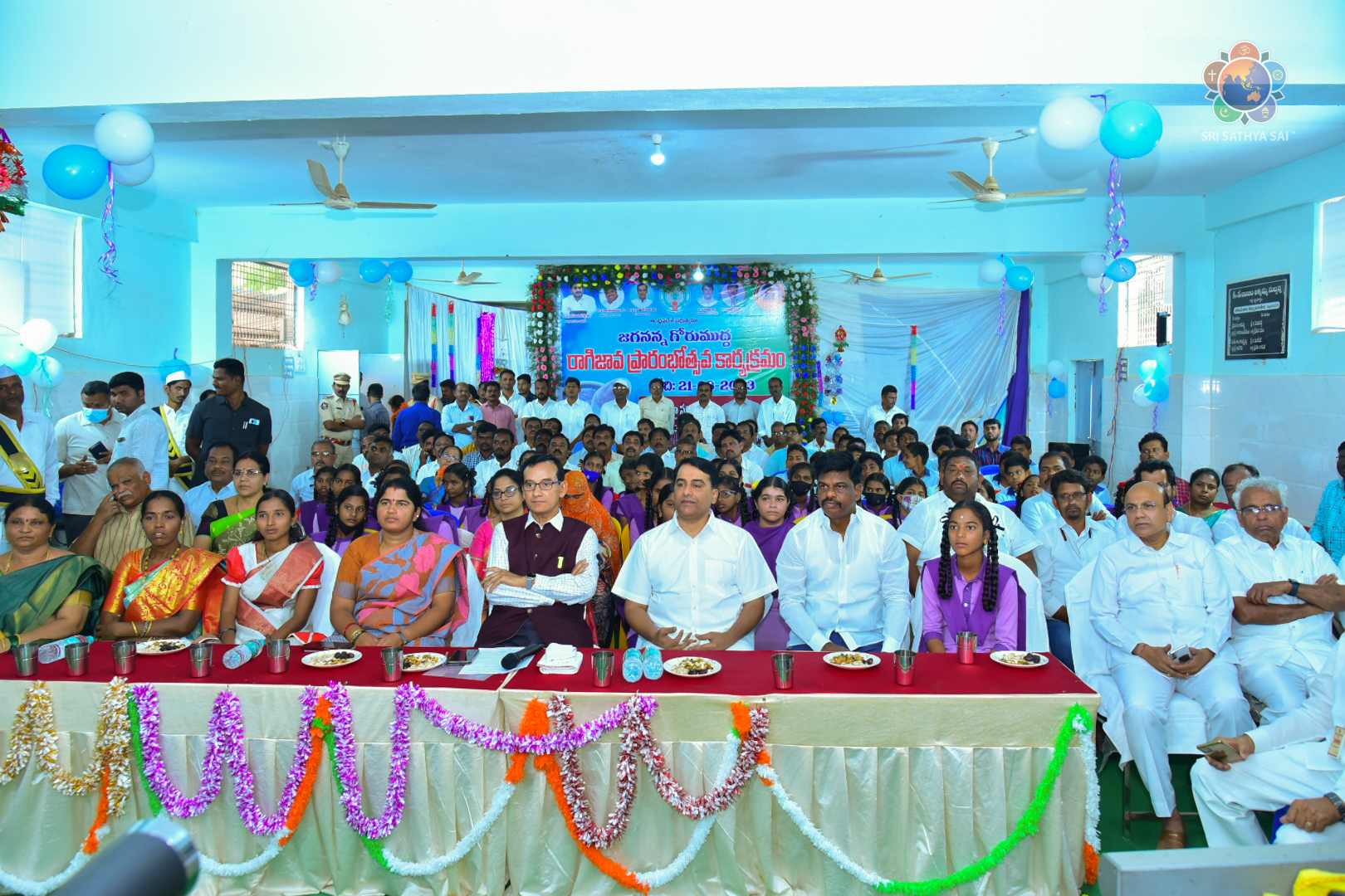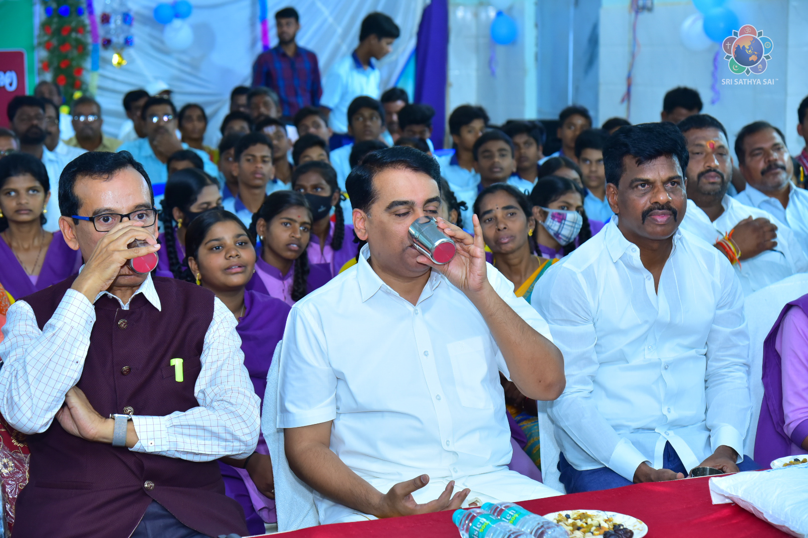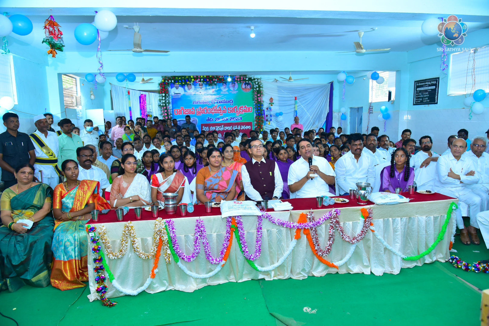 he Sri Sathya Sai Central Trust Steps In to Safeguard the Health and Nutrition of 38 Lakh School Children in AP Launch of Ragi Jawa (RagiMalt) Project in the Government Schools, Andhra Pradesh | Mar 21, 2023 With the Divine Blessings of Bhagawan Sri Sathya Sai Baba, the Sri Sathya Sai Central Trust started the operations of a new initiative “Ragi Jawa Project” on Mar 21, 2023, on the eve of Ugadi, the Telugu New Year Day. The Government of Andhra Pradesh has a mid-day meal programme (called “Jagananna Gorumudda”) to ensure the enrolment, retention, attendance and simultaneously improving the nutritional levels of children studying in government, local body and government-aided primary schools. To enhance the nutrition quotient of these meals by the inclusion of millets into their diet, the Government has decided to provide Ragi Malt drink to all the children 3 days a week. Ragi Malt is prepared with 10 gms of Ragi Flour and 10 gms of Jaggery Powder cooked in 150 ml of hot water. This drink is rich in various nutrients like iron, calcium, protein, carbohydrates and so on. On the request of Hon’ble Chief Minister of Andhra Pradesh, Sri YS Jagan Mohan Reddy, the Sri Sathya Sai Central Trust has come forward to supply the needed quantities of Ragi Flour and Jaggery Powder (about 414 metric tonnes) free to cost so that 38 lakh students studying in about 44,392 schools spanning over 26 districts of Andhra Pradesh are benefitted by this initiative. Incidentally, the Hon'ble PM spearheaded United Nations General Assembly (UNGA) to declare the year 2023 to be the " International Year of Millets". The Government of AP is promoting RAGI (Finger Millet) as it has high nutritional value. The inaugural session over a virtual video call with the Hon’ble Chief Minister was presided over by Sri Basant Kumar (IAS, Collector and District Magistrate, Sri Sathya Sai Dist.) Sri RJ Rathnakar (Managing Trustee, SSSCT) Sri Gorantla Madhav (MP, Hindupur) this morning at Zilla Parishad High School, Kothacheruvu. Hon’ble CM profusely thanked the Sri Sathya Sai Central Trust for coming forward and supporting the Government and extended his heartfelt gratitude to Bhagawan Sri Sathya Sai Baba for showering His Divine Blessings on the children. This Seva shall steer the activities planned for Bhagawan's Centenary Celebrations amongst several other projects.