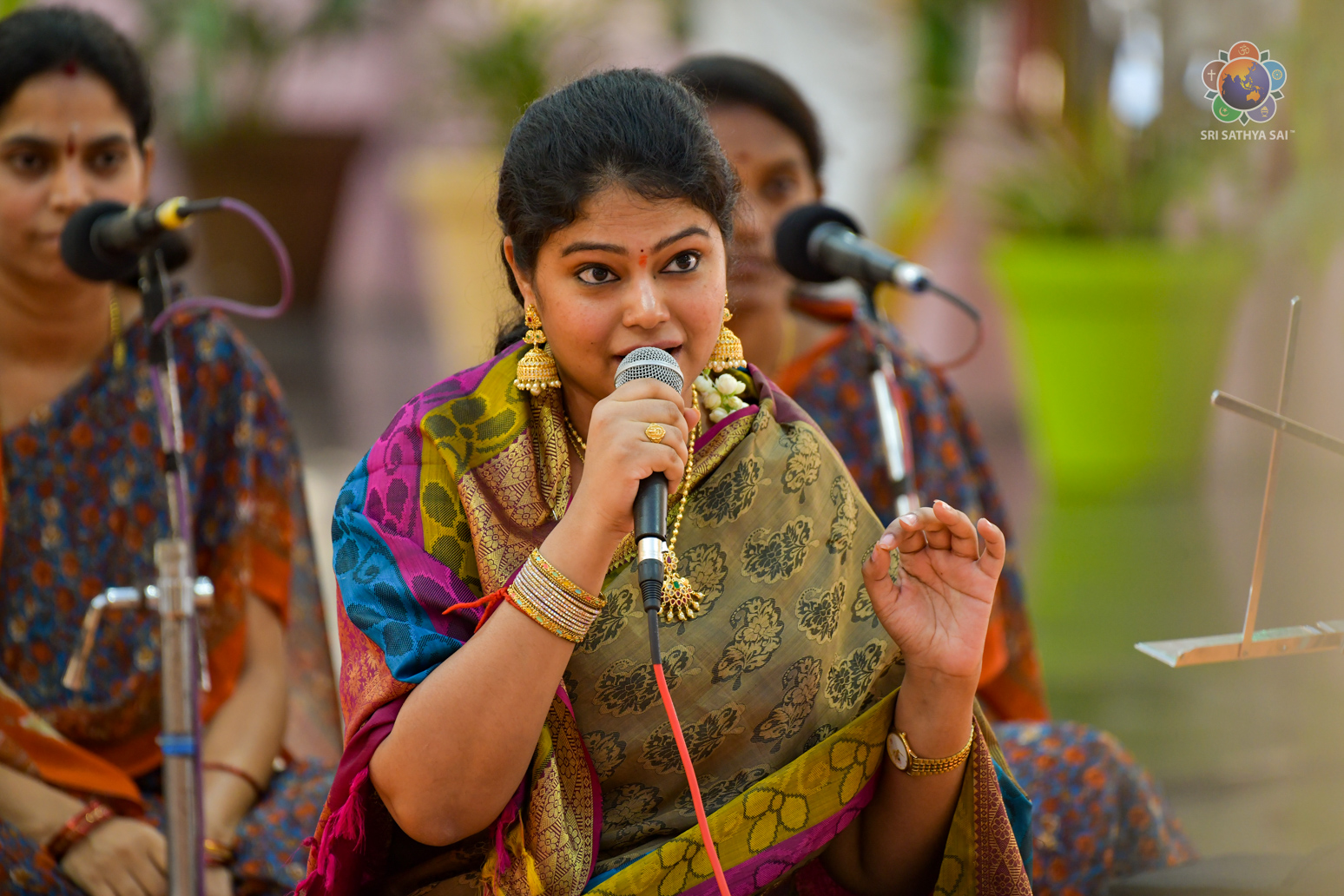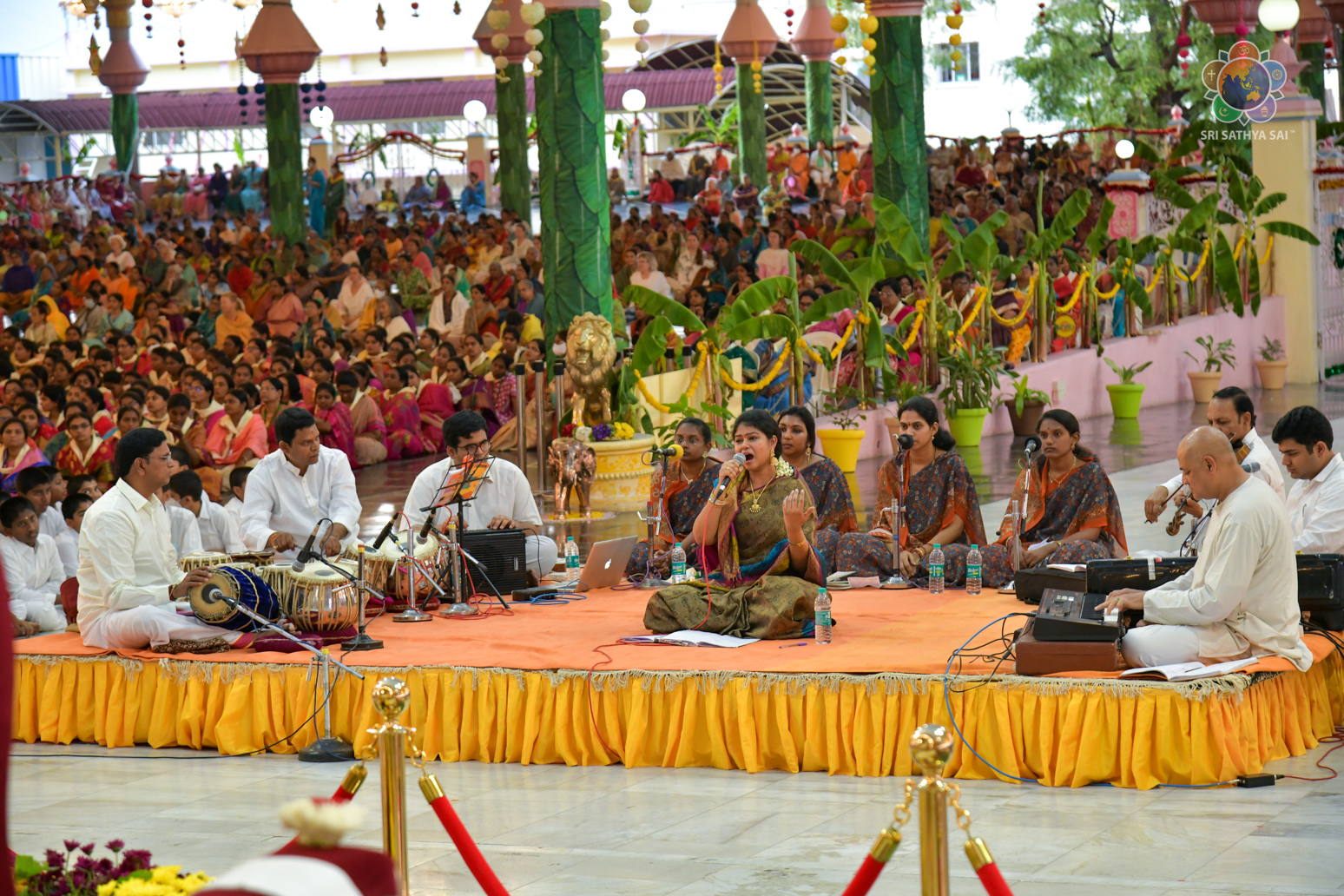Loving Sai Ram and greetings from Prasanthi Nilayam. As part of the ongoing Shobhakrit Samvatsara - Ugadi Celebrations at Prasanthi Nilayam, Kumari Ramya Behara (playback singer) rendered a soul-filling devotional music concert in the Divine presence of Bhagawan Sri Sathya Sai Baba. Considering herself very blessed to have performed on an auspicious occasion, Sri Ramya expressed her heartfelt gratitude to Swami for giving this golden opportunity after the performance.
