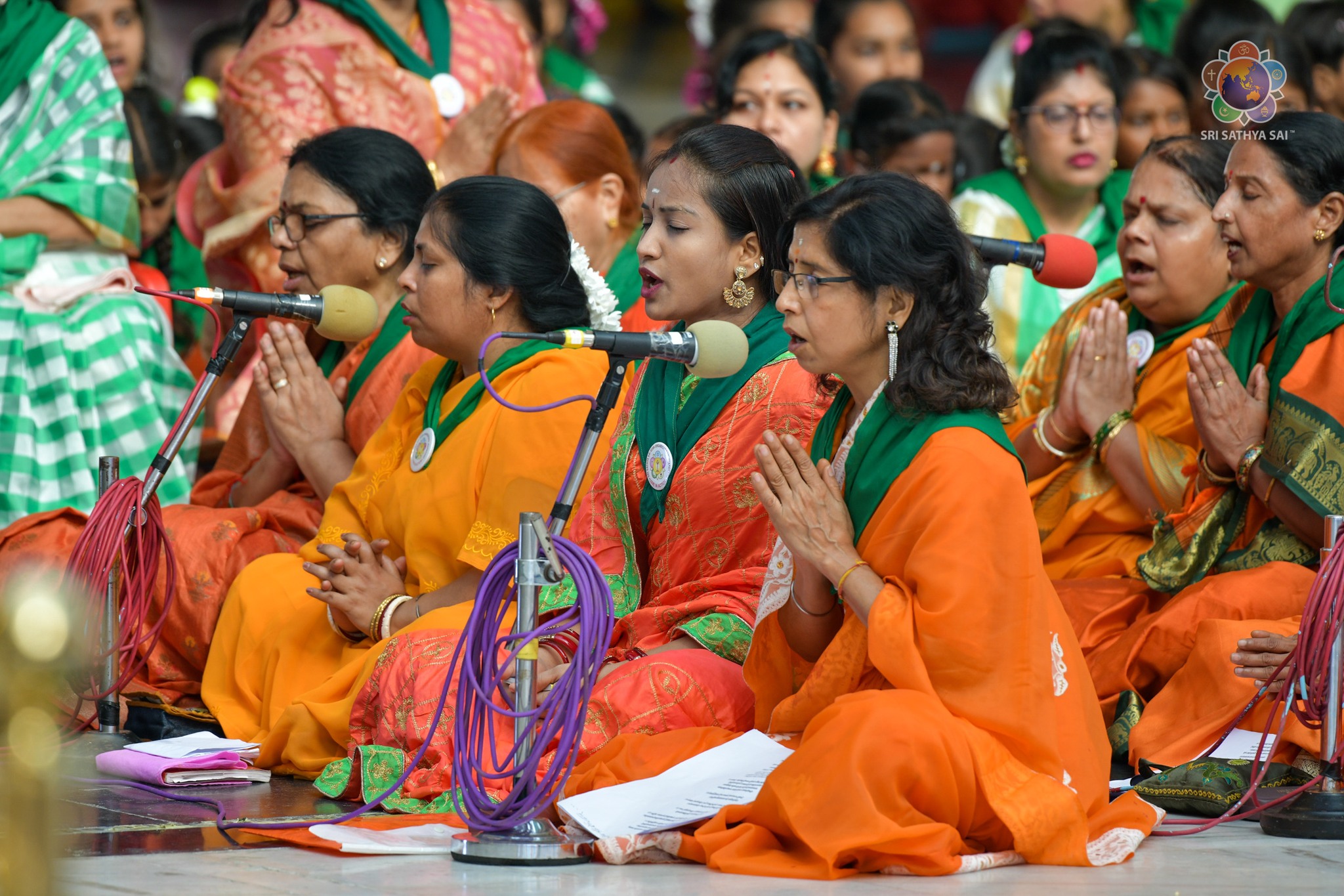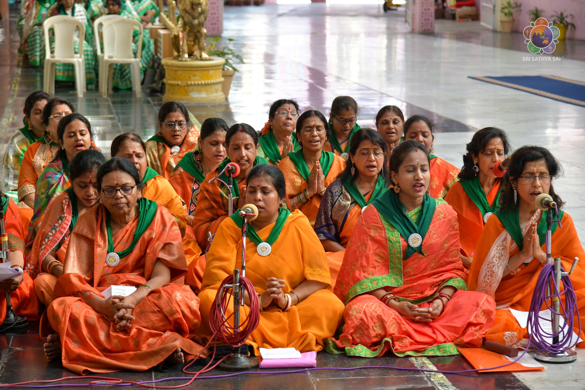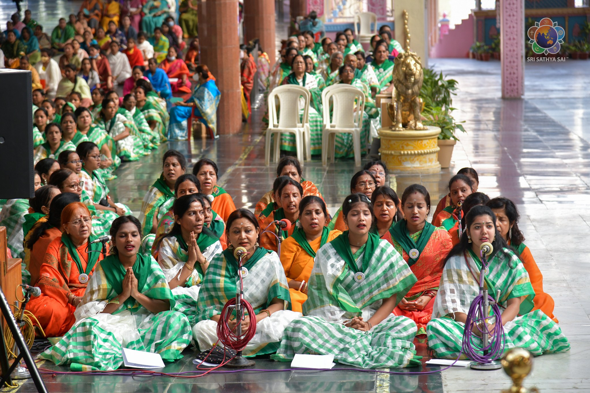 Loving Sai Ram and greetings from Prasanthi Nilayam. As part of the ongoing Jharkhand Devotees' Parthi Yatra, this morning they recited shlokas from Chapter 12, Srimad Bhagawad Gita along with explanation centred around Bhakti Yoga. The devotees then chanted Sri Sathya Sai Chalisa in unison.