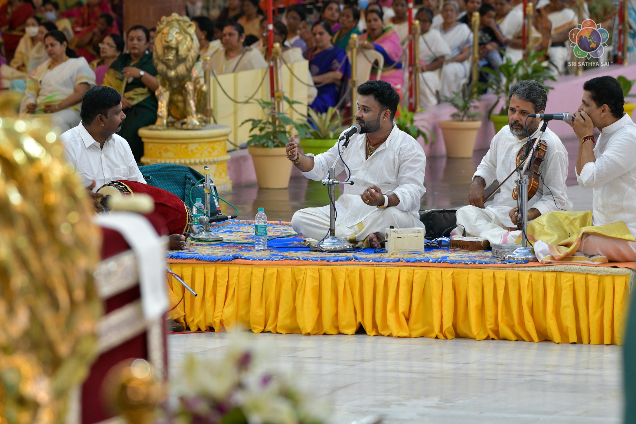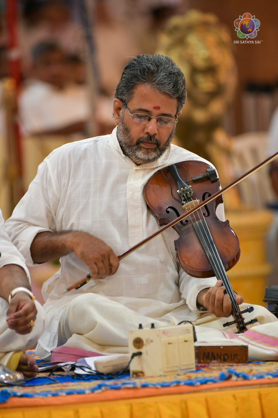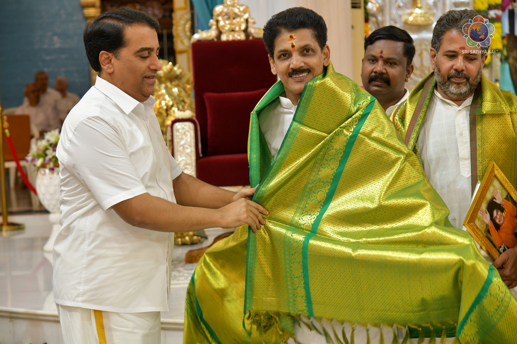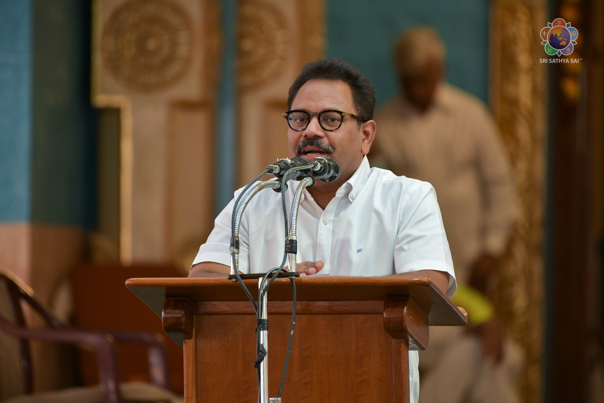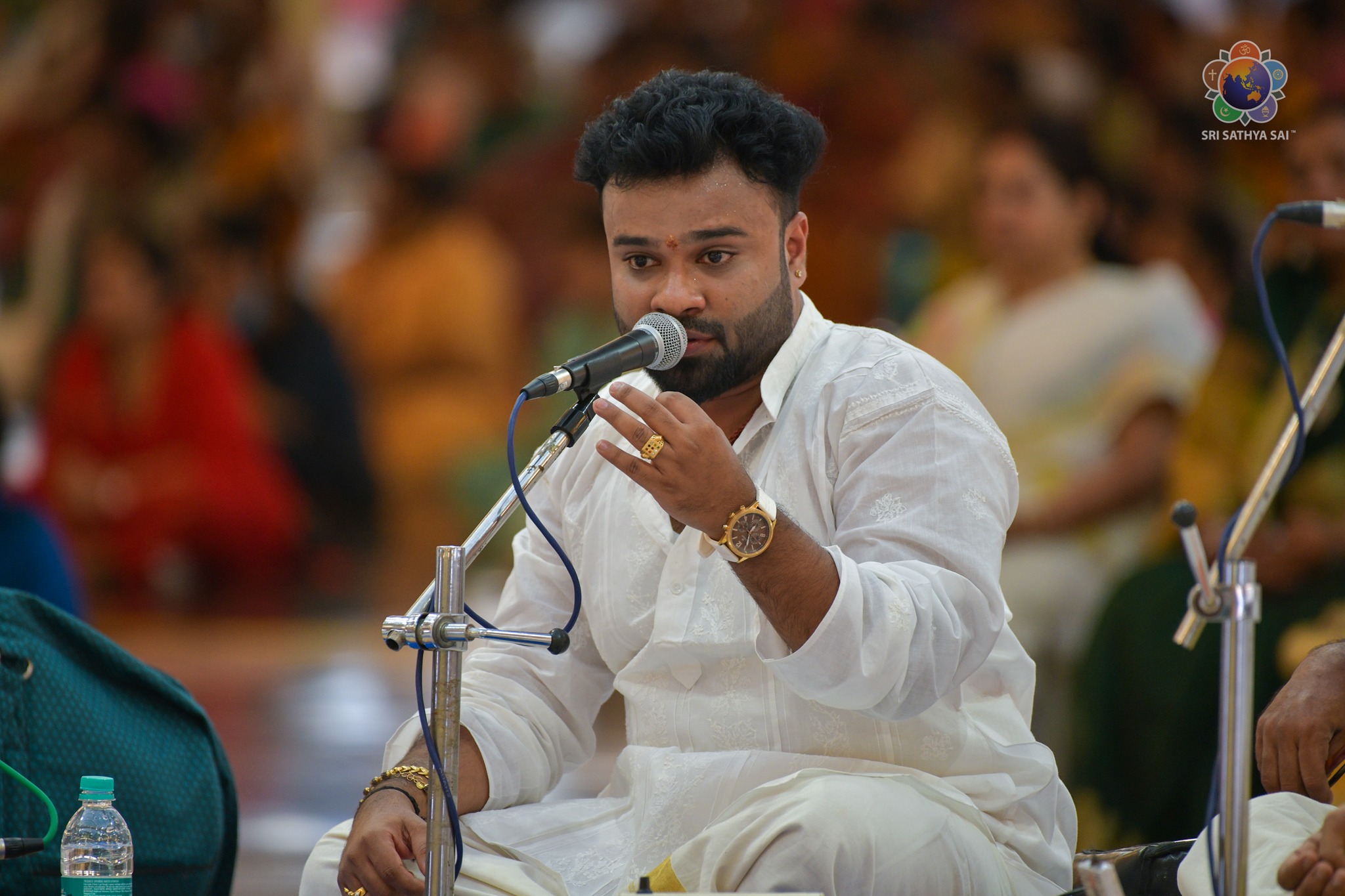 As part of the Vishu celebrations at Prasanthi Nilayam, Sri Vishnudas Kallekulangara along with fellow musicians offered a devotional music concert. Earlier this evening, Sri Suman Billa, IAS, Principal Secretary (Industries & NORKA) Govt of Kerala addressed the gathering. Talking about how his life transformed after coming into Bhagawan's fold, Sri Billa shared how Swami cured him during the Covid pandemic.