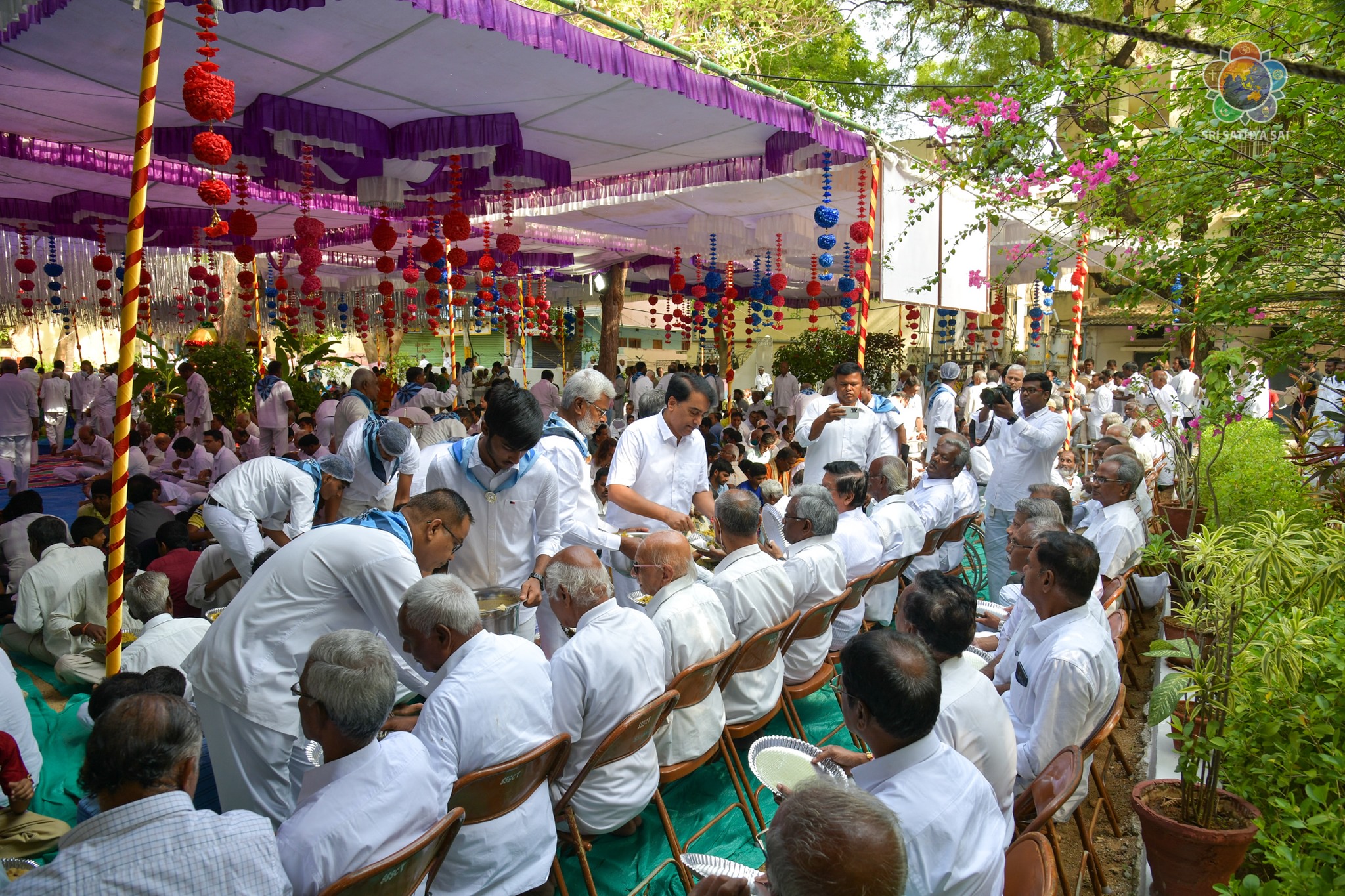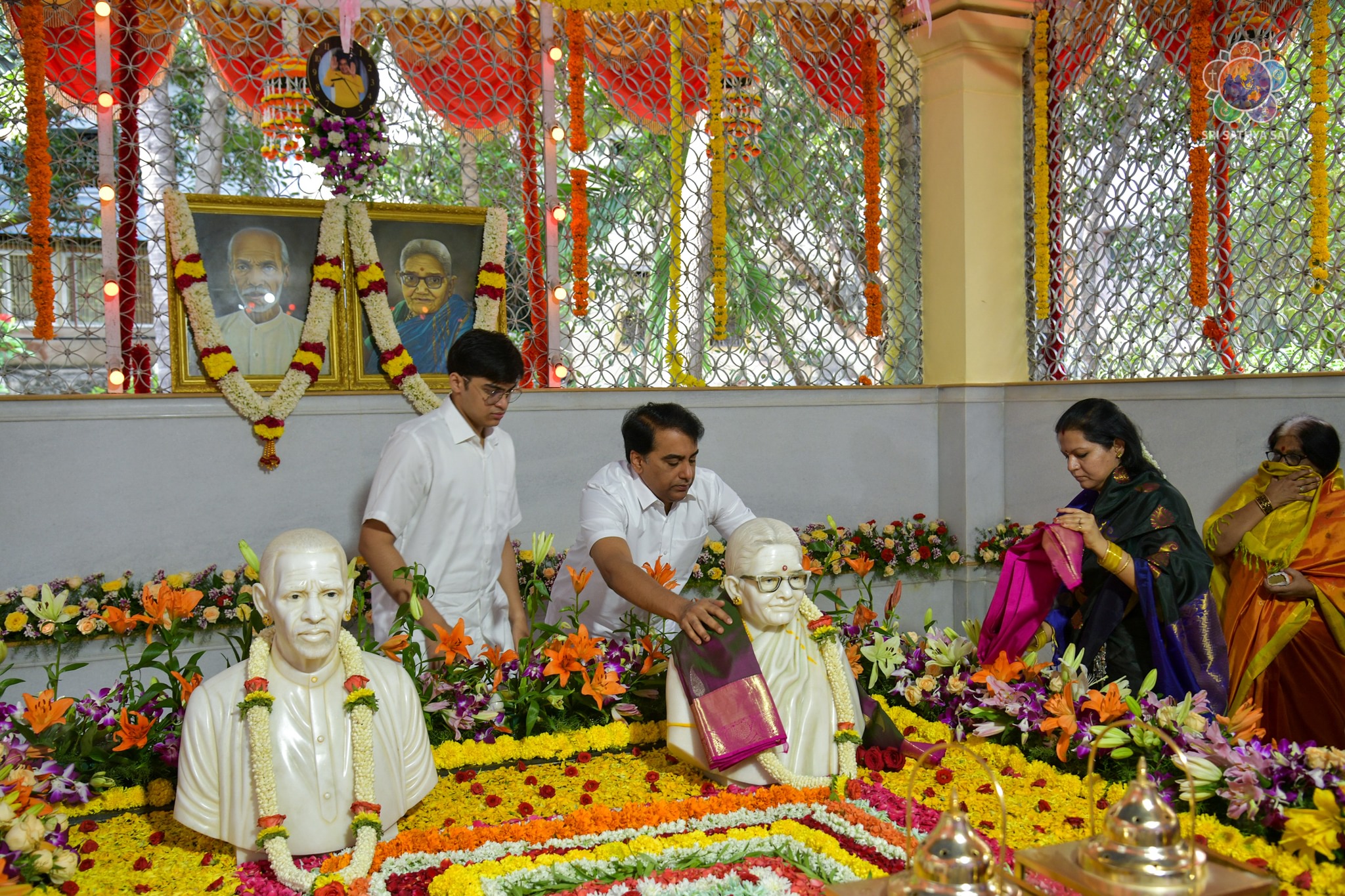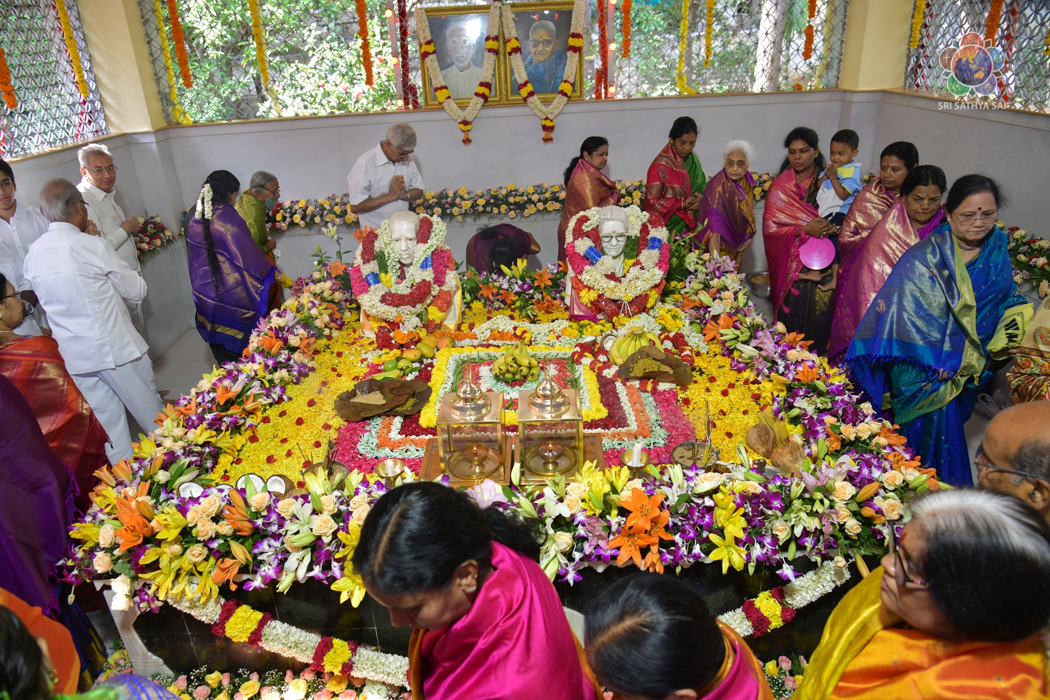 On the auspicious occasion of Mother Easwaramma Day, the immediate family members of Bhagawan Sri Sathya Sai Baba offered their reverential obeisances in the form of floral tributes at Swami's parents' samadhi. After paying their homage, mangala arati was offered and maha prasadam was served to the all devotees gathered there. Sri RJ Rathnakar (Managing Trustee, SSSCT) along with his family served the devotees who were accommodated comfortably with all necessary facilities. Mother Easwaramma merged into the Divine in the year 1972.
