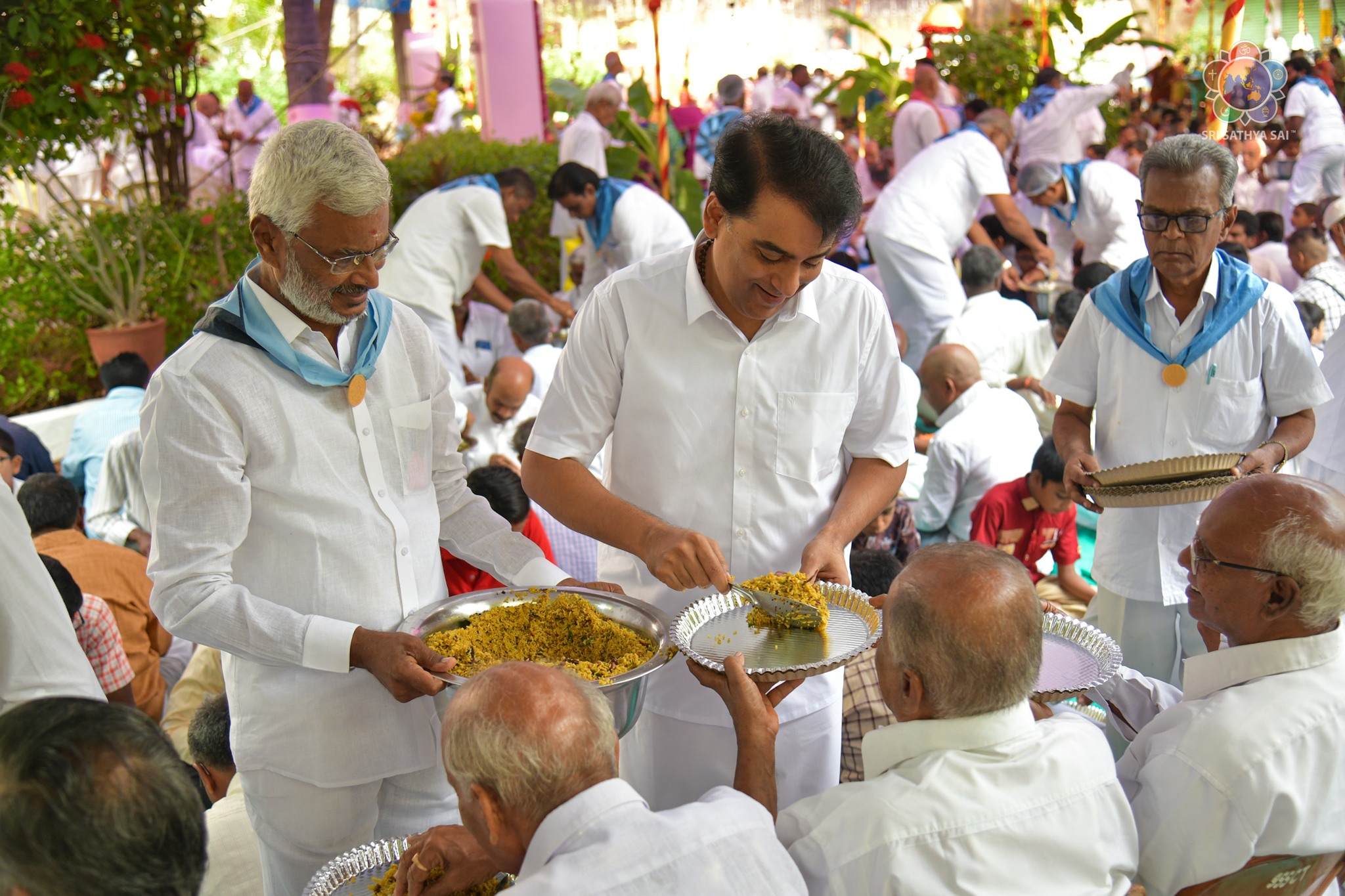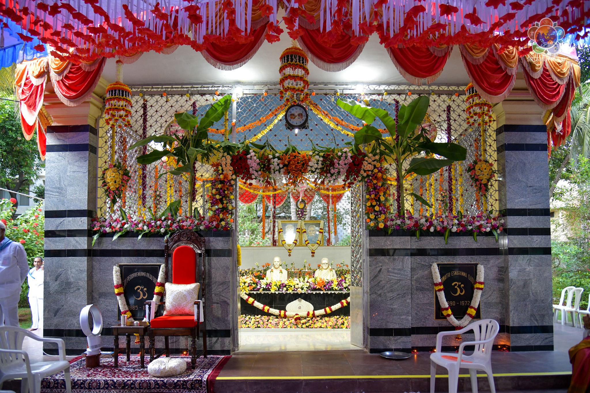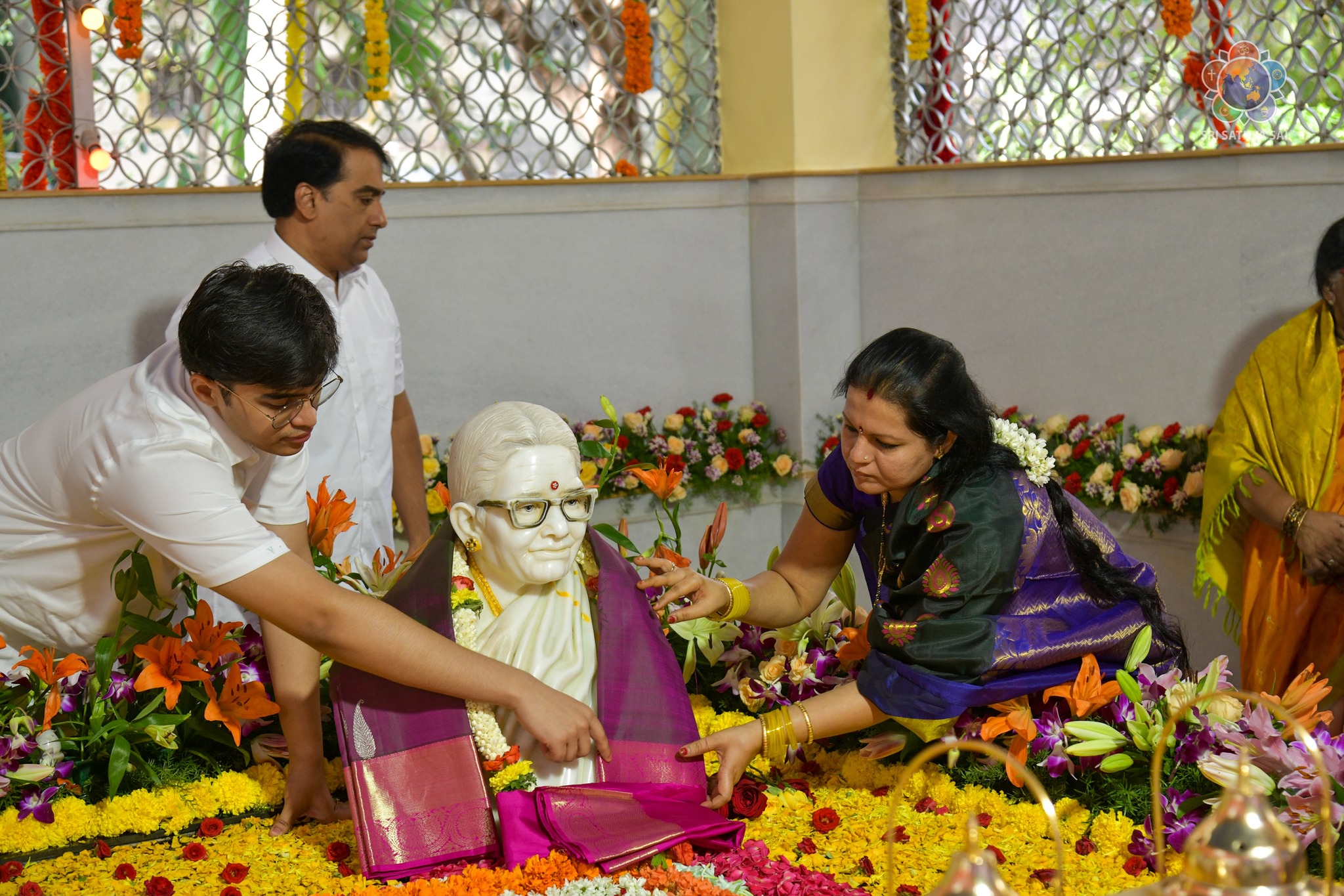 On the auspicious occasion of Mother Easwaramma Day, the immediate family members of Bhagawan Sri Sathya Sai Baba offered their reverential obeisances in the form of floral tributes at Swami's parents' samadhi. After paying their homage, mangala arati was offered and maha prasadam was served to the all devotees gathered there. Sri RJ Rathnakar (Managing Trustee, SSSCT) along with his family served the devotees who were accommodated comfortably with all necessary facilities. Mother Easwaramma merged into the Divine in the year 1972.