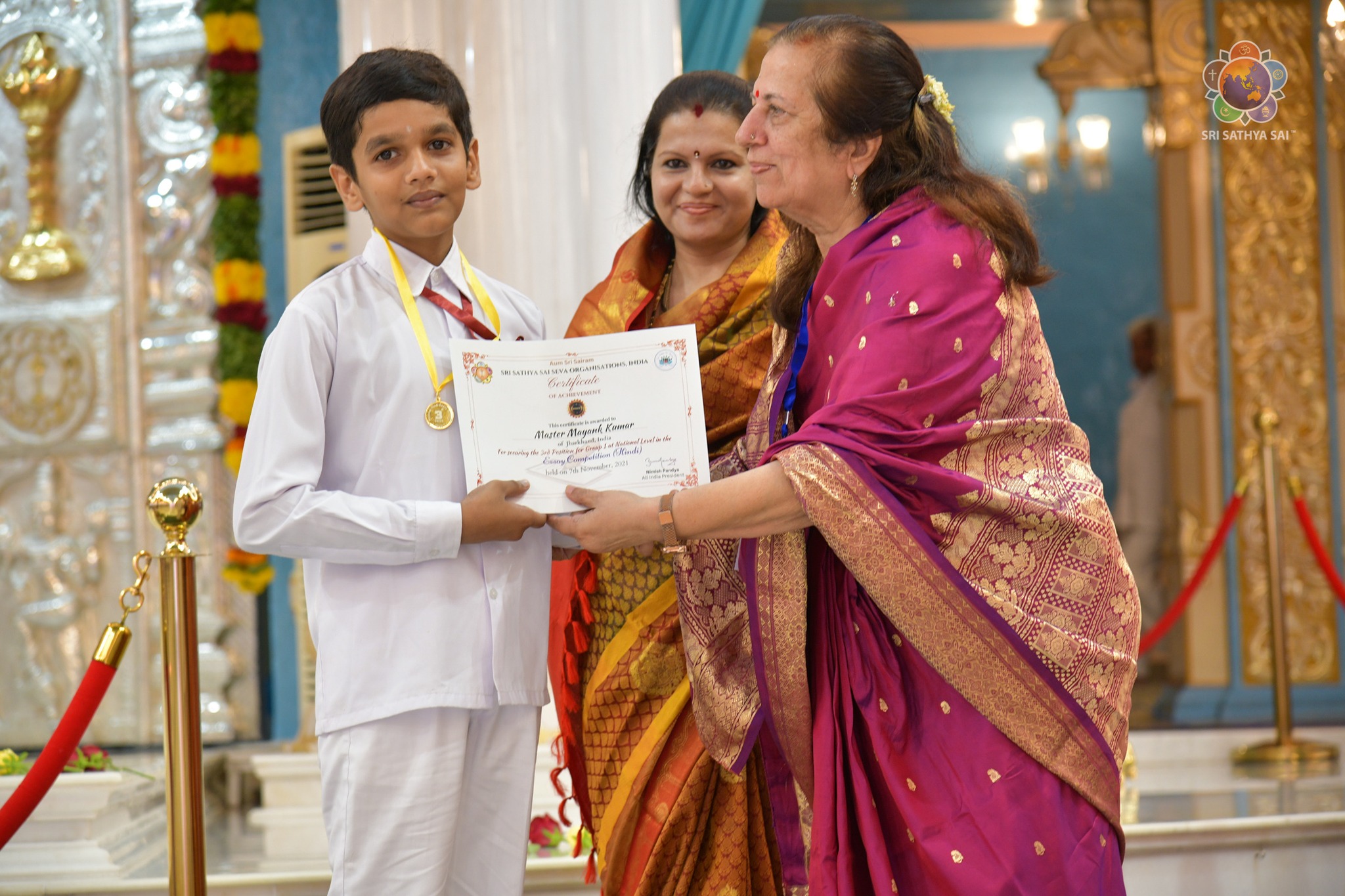 Loving Sai Ram and greetings from Prasanthi Nilayam. Around 3500 Sri Sathya Sai Bal Vikas Alumni have gathered here to attend their 13th All India Convocation & 10th Benediction Ceremony conducted by SSSSO, India with the theme ‘Pathway to Global Peace & Harmony’. The evening proceedings began with the traditional lamp lighting done by Sri K Chakravarthi (Chairman, SSSGC), Sri RJ Rathnakar (Managing Trustee, SSSCT) and Sri Nimish Pandya (AIP,SSSSO). The revered dignitaries then released a coffee table book comprising of experiences of the Bal Vikas Alumni. The Alumni who have excelled in different walks of lives and contributed in the Divine Mission were honoured with Excellence Awards. Smt Kamala Pandya (National Mahila Coordinator, SSSSO) mentioned how the SSS Bal Vikas programme started as ‘Bal Vihar’ in 1969 and in 1971 rechristened by Swami to ‘Bal Vikas’ which has grown over the years to now being held in 15000 centres, conducted by 18000 gurus and reaching out to 350000 students all over India. The goal of this 9-year programme is the integrated personality development of every child in all areas - physical, mental, emotional and spiritual. After a scintillating dance performance by the Bal Vikas girls from Sri Kalahasthi, Smt Himavahni Rathnakar along with National Mahila Coordinators awarded the gold medals to winners of the National Essay Writing competition in which 21700 students participated.