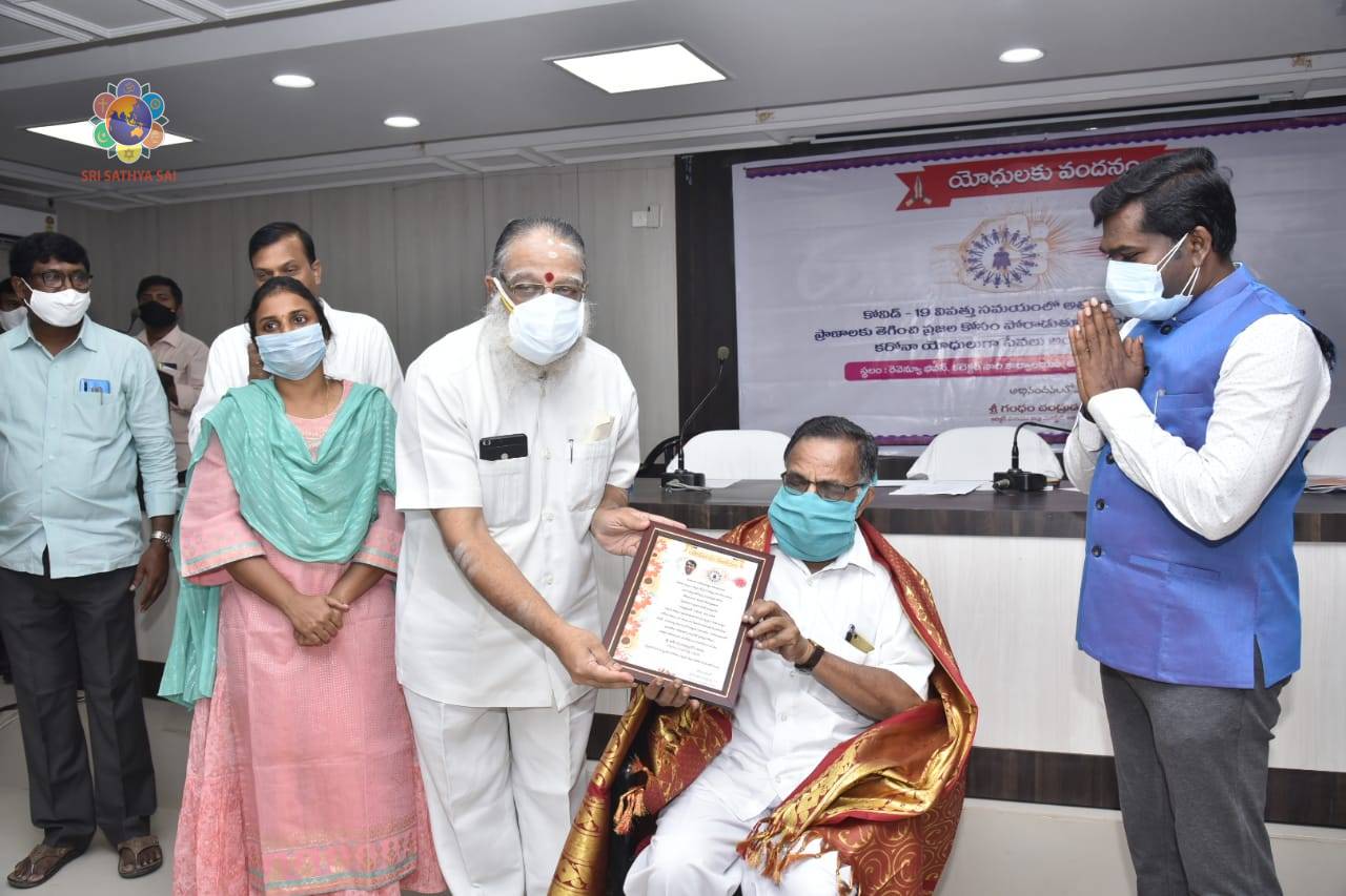 The pandemic may have caused much havoc, but it has also brought out the spirit of humanity, courage and resilience from many individuals who have come forth to be in the forefront of this fight against the pandemic. They are rightly hailed as the ' COVID Warriors ’. In a noble gesture, the government administration of Ananthapuramu district chose to felicitate some of these commendable institutions and individuals. The Sri Sathya Sai Central Trust was also felicitated as part of the program by the Ananthapur District Collector, Sri Gandham Chandrudu, IAS and the District Magistrate at the Collectorate Building in Ananthapur. The Trust was represented by Dr. Gurumurthy, Director, and Dr. Ramnath V Iyer, Senior doctor from Sri Sathya Sai Institute of Higher Medical Sciences, Prasanthigram.