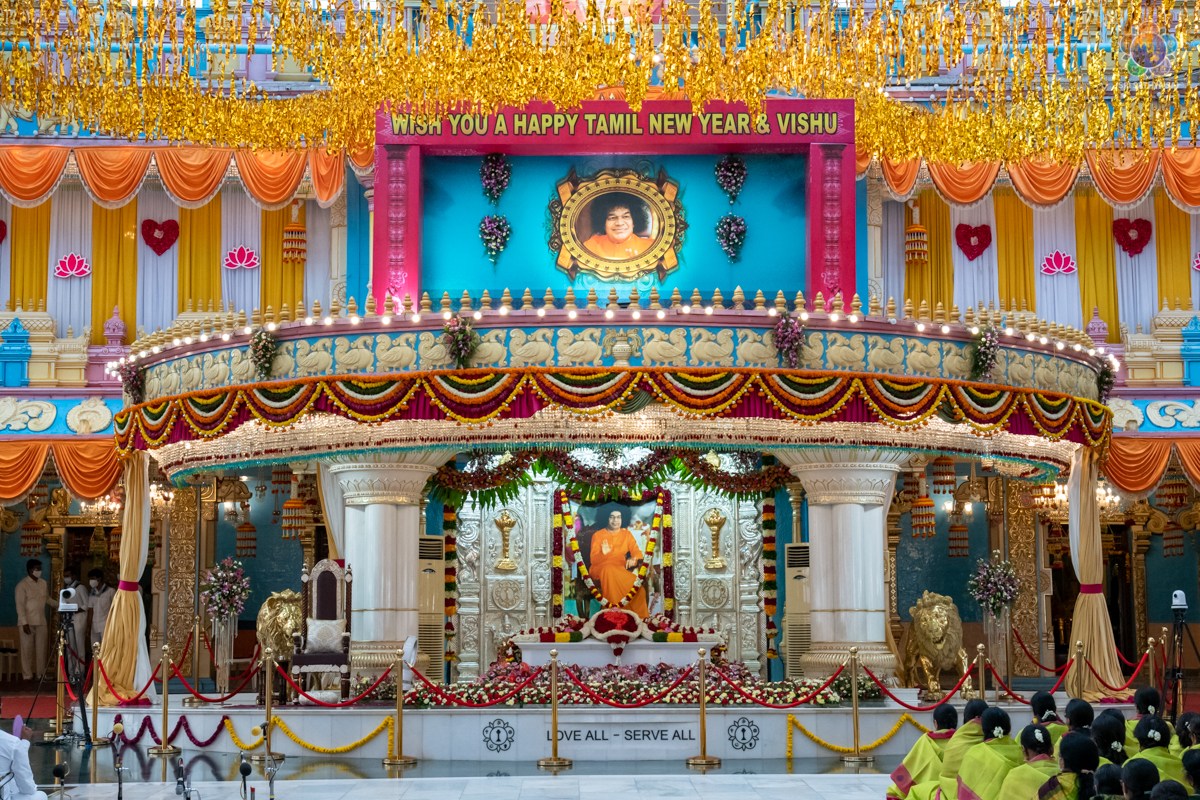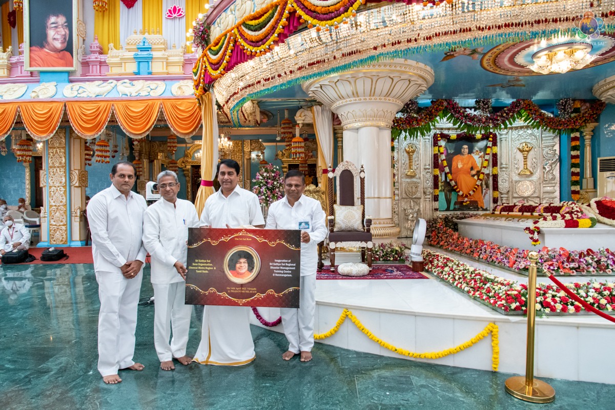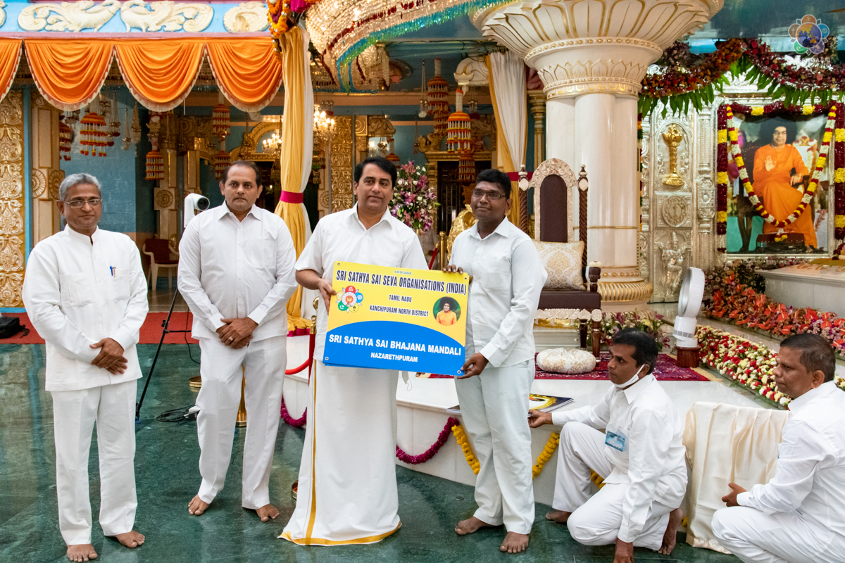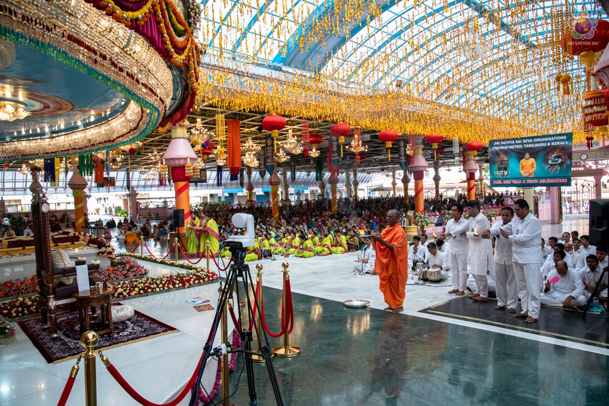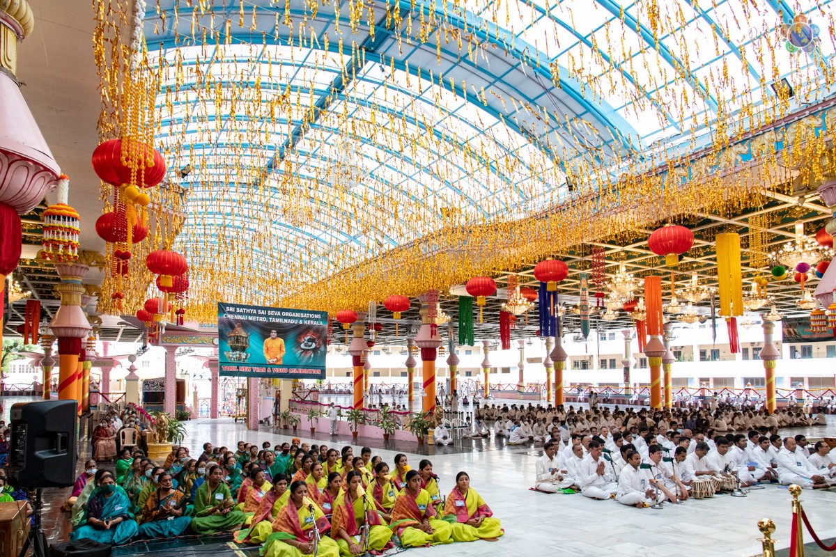 Loving Sai Ram and Greetings from Prasanthi Nilayam. On the auspicious occasion of Tamil New Year, 23 New Bhajana Mandalis and a Regional Training Centre for Disaster Management were opened at different areas in Tamil Nadu. The name boards of the same were handed over in the immediate presence of Bhagawan Sri Sathya Sai Baba by Sri RJ Rathnakar (Managing Trustee of the Sri Sathya Sai Central Trust) to the District Presidents of the Sri Sathya Sai Seva Organisations, Tamil Nadu. The Morning Proceedings began with Vedam Chanting by the Tamil Nadu Gents group followed by Bhajans by Tamil Nadu Sundaram Group. Please find below the glimpses of the event. Wishing you all a Happy, Holy and Prosperous Tamil New Year.