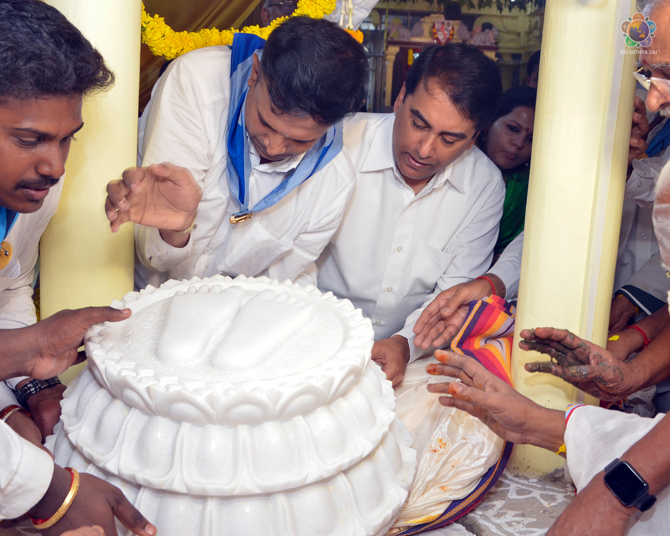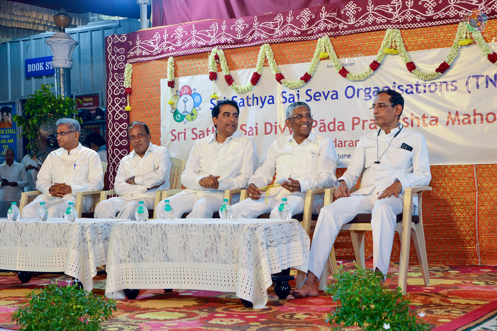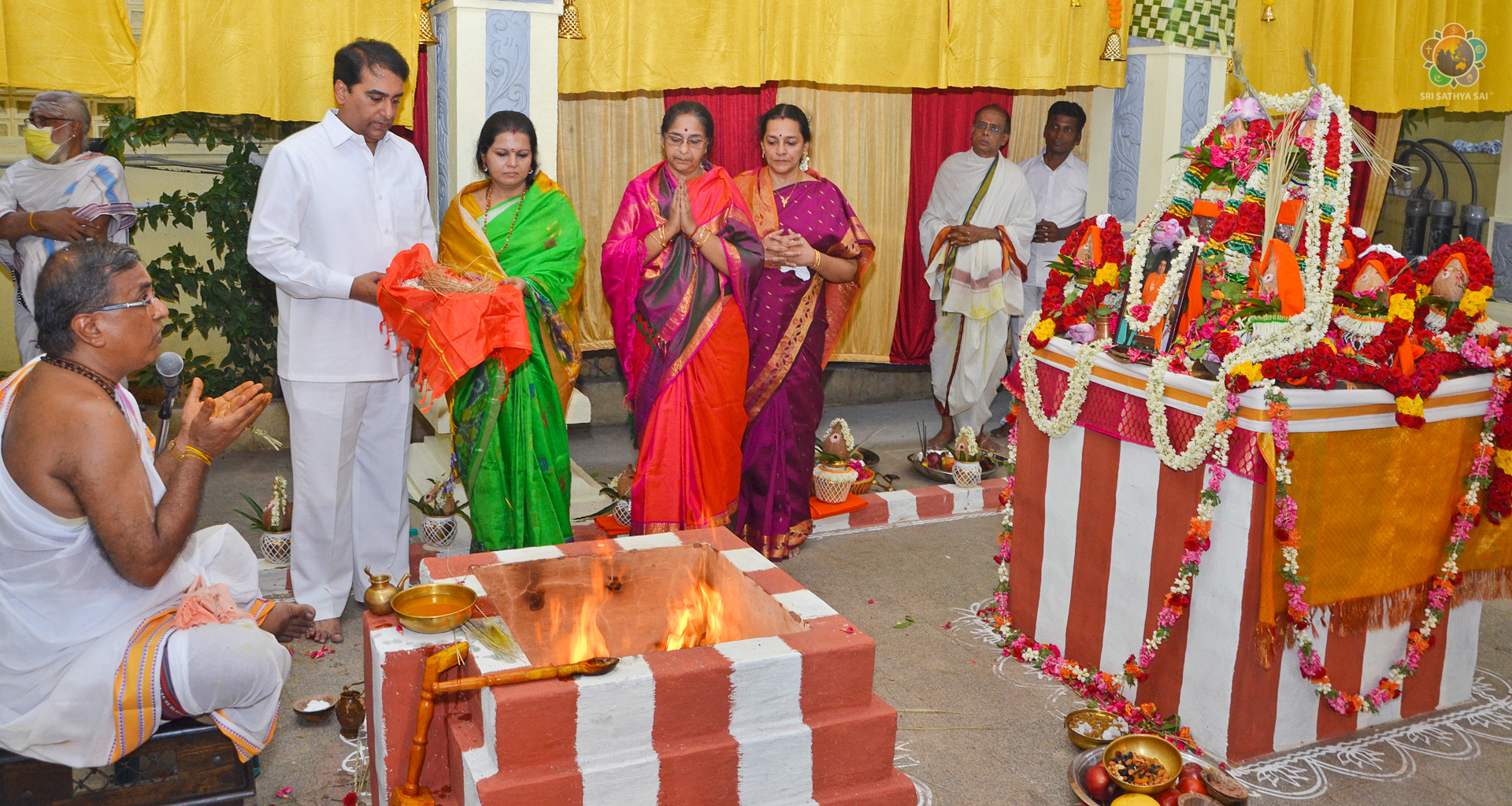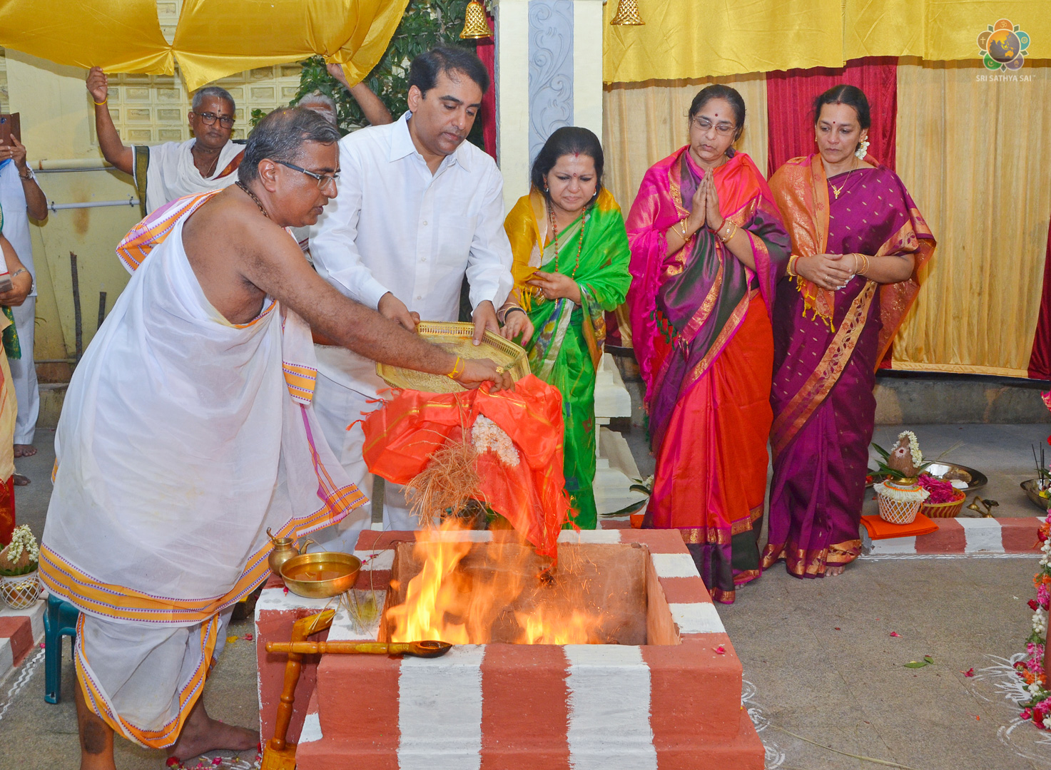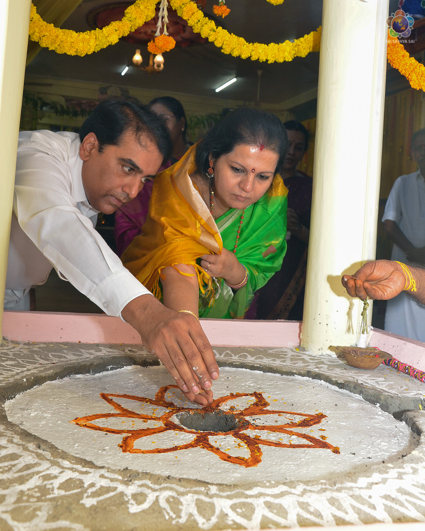 On Day 1, the preliminary rituals of Sri Sathya Sai Pada Pratishta Mahotsavam was organised at Sundaram, Chennai where in Sri RJ Rathnakar and family along with Dr. Mohan (Trustee, SSSCT), Sri E Mukundan (Zonal President, Southern Zone, SSSGC), Sri Ramesh (Convenor, TN Trust), Sri R Chandrasekharan (State President, TN, SSSSO) and other respected dignitaries and office bearers of the Sri Sathya Sai Seva Organisations had taken part.