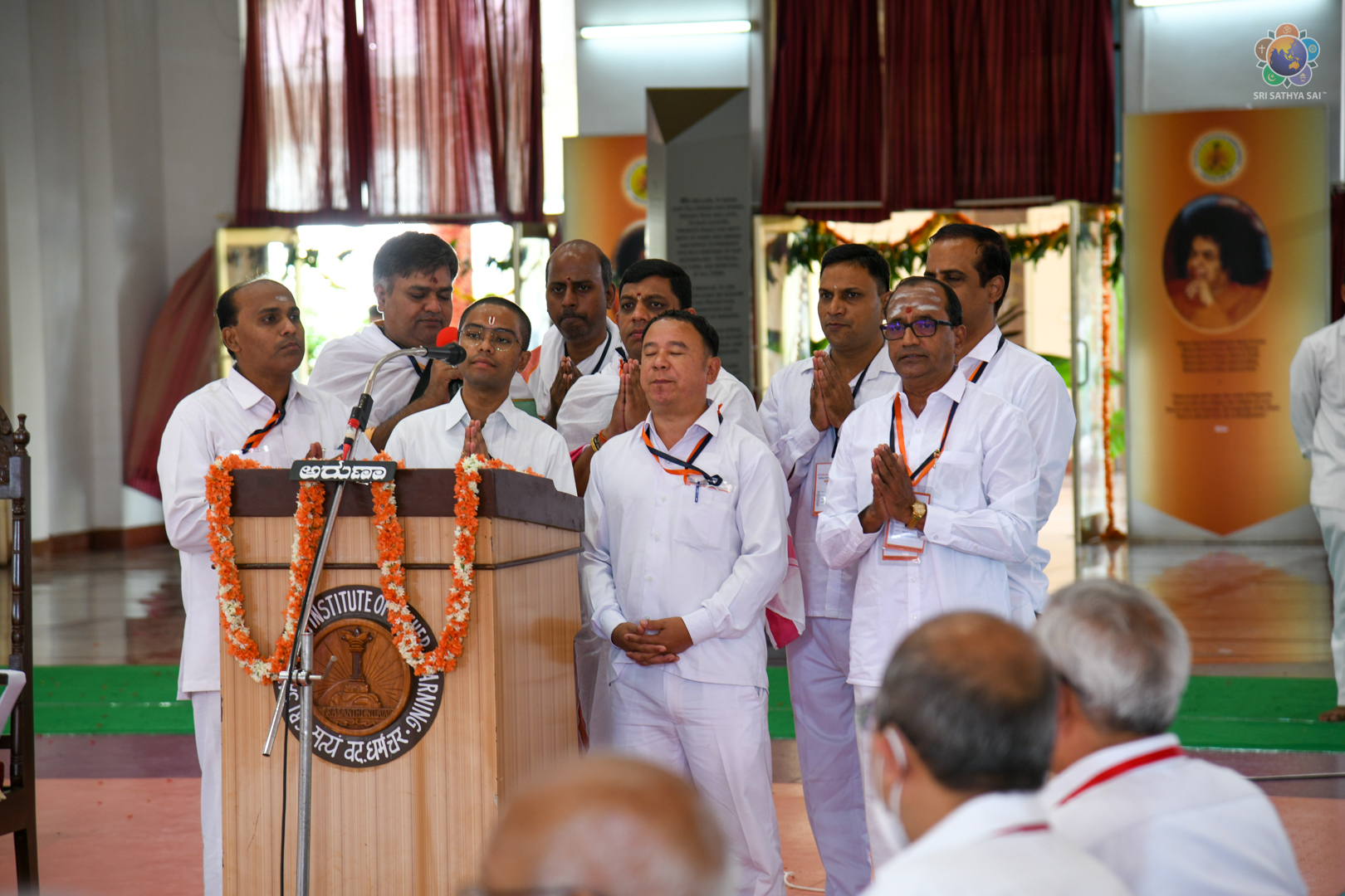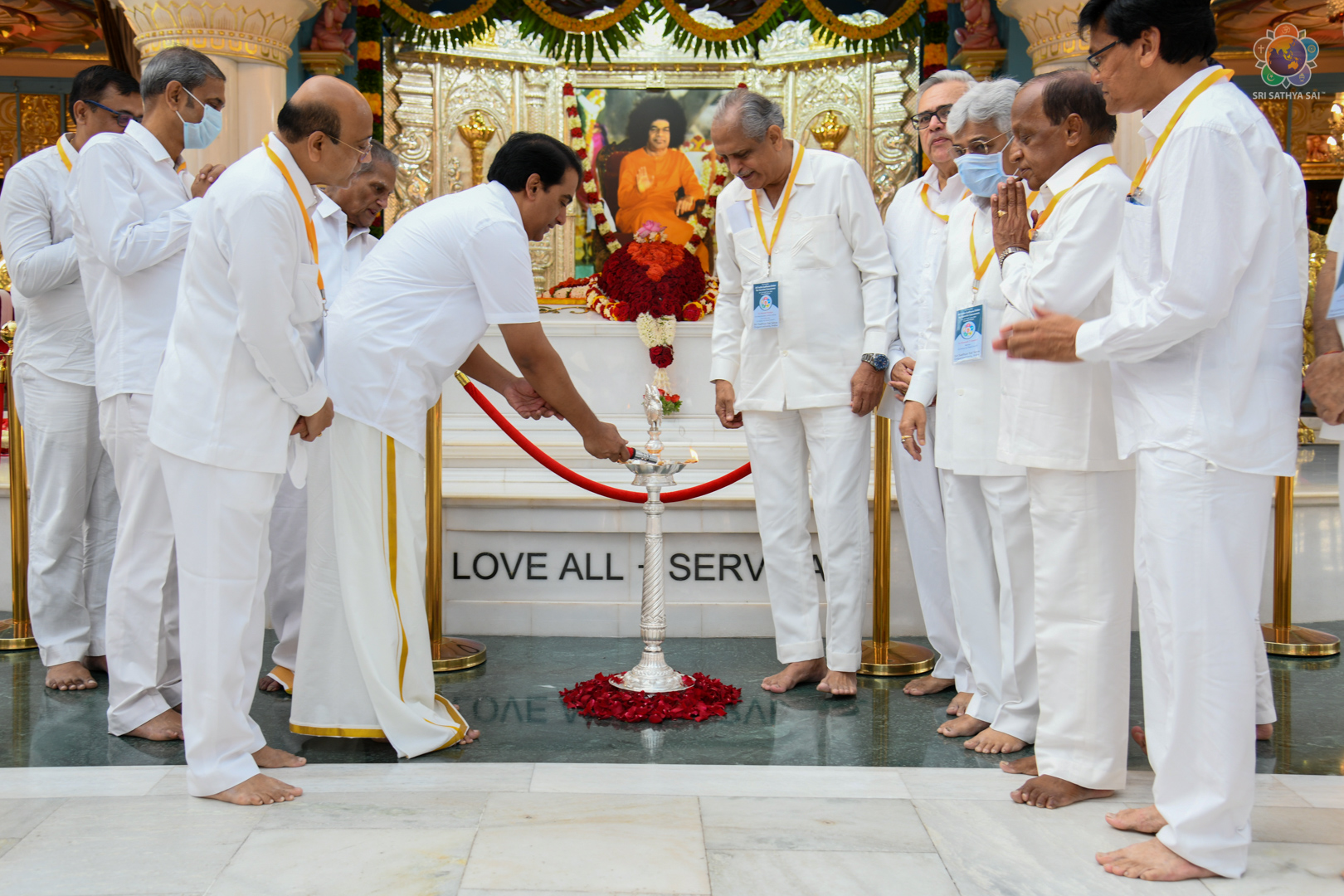 The Inaugural session at the Sai Kulwant Hall began with the ceremonial lamp lighting by Sri K Chakravarthi (Chairman of Sri Sathya Sai Global Council), Sri RJ Rathnakar (Managing Trustee of Sri Sathya Sai Central Trust) Sri Nimish Pandya (All India President, SSSSO), followed by a talk by Sri Nagesh Dhakappa (Member, SSSGC).