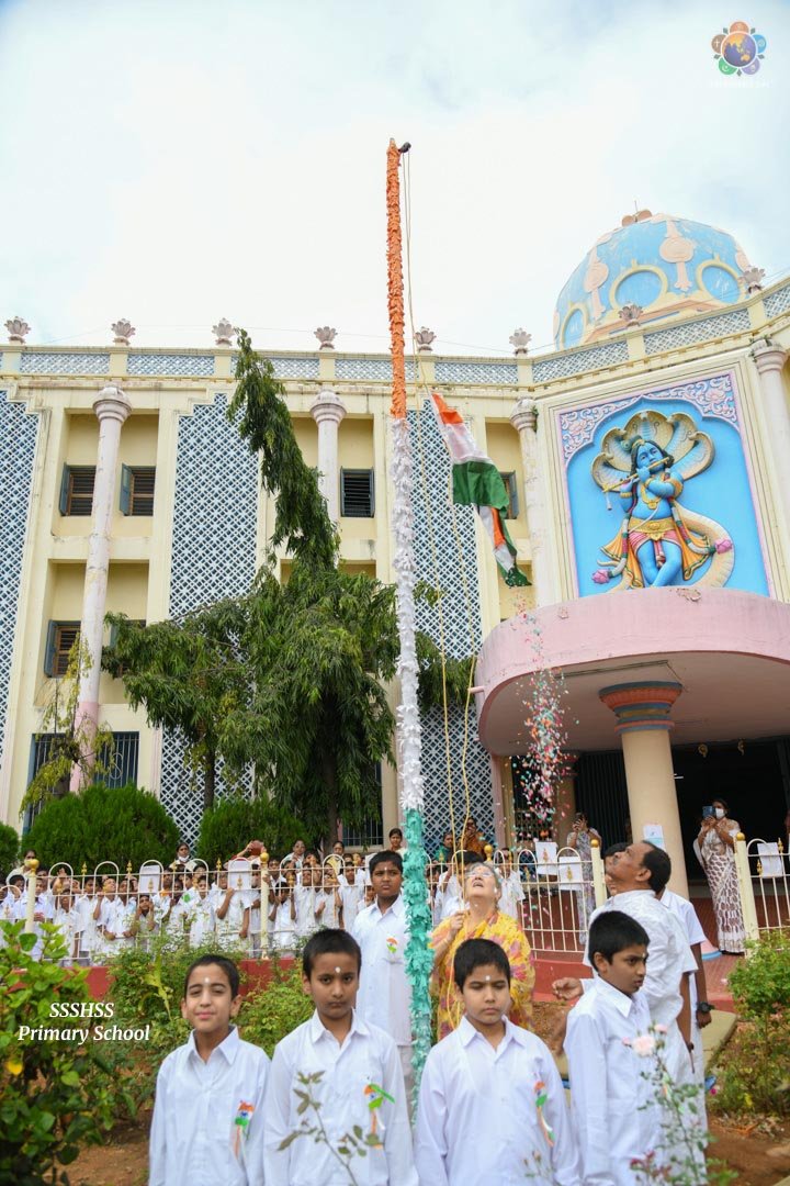 Commemorating 75 years of Independence Day, the institutions established by Bhagawan Sri Sathya Sai Baba celebrated this spirited day with the traditional tricolor flag hoisting ceremony.