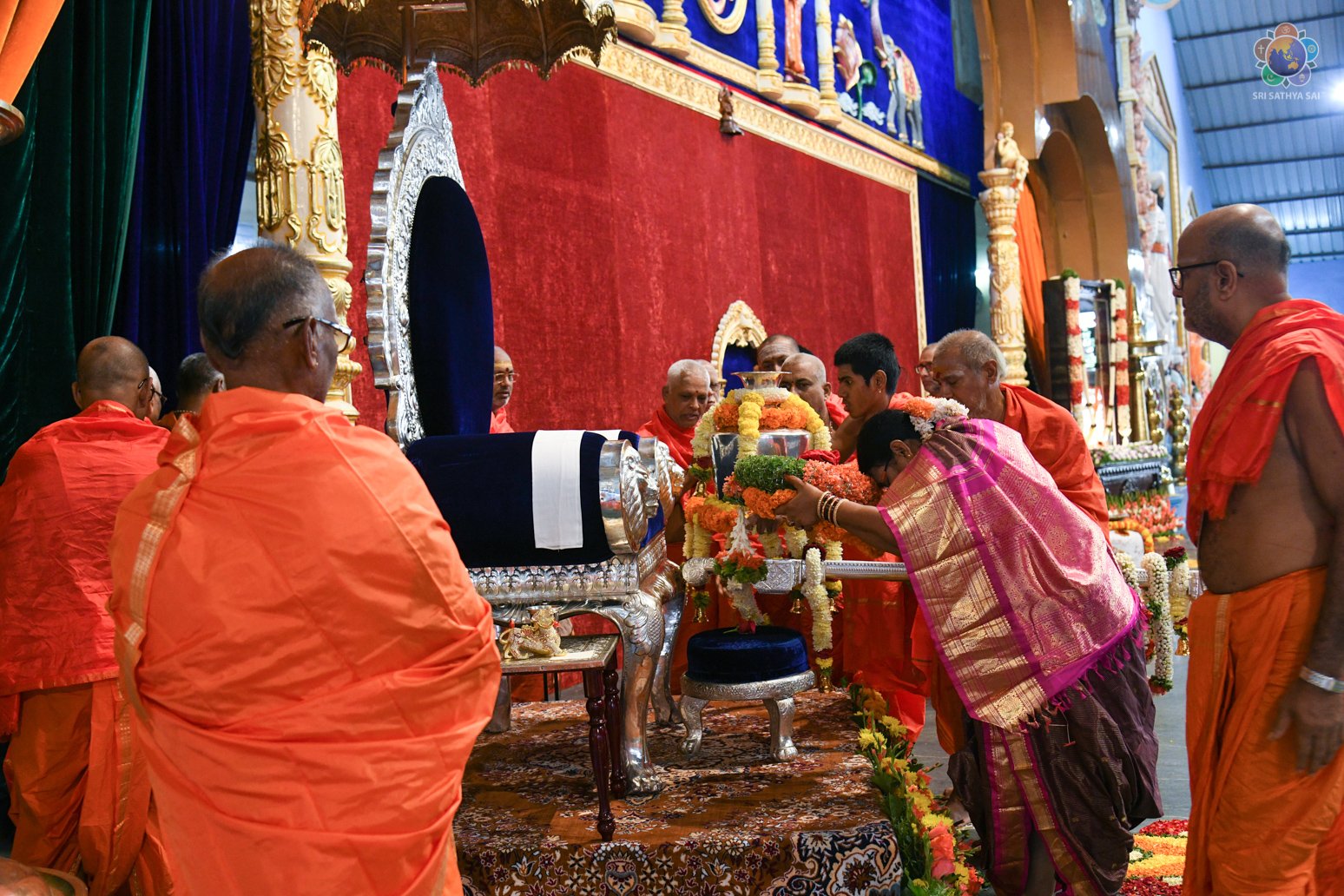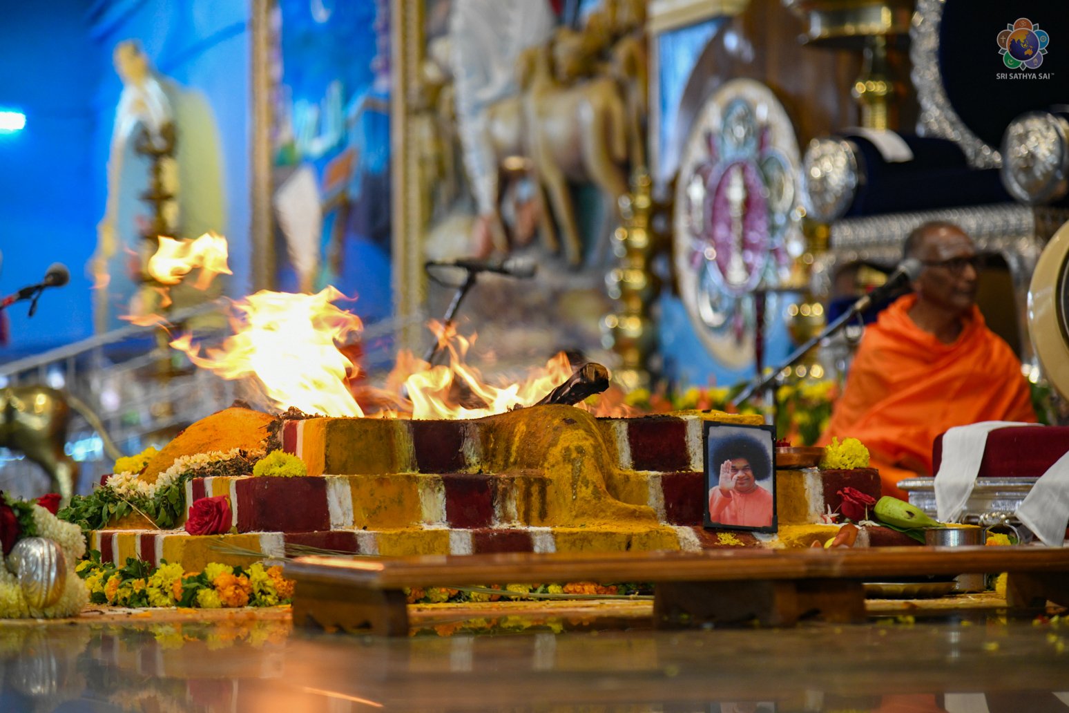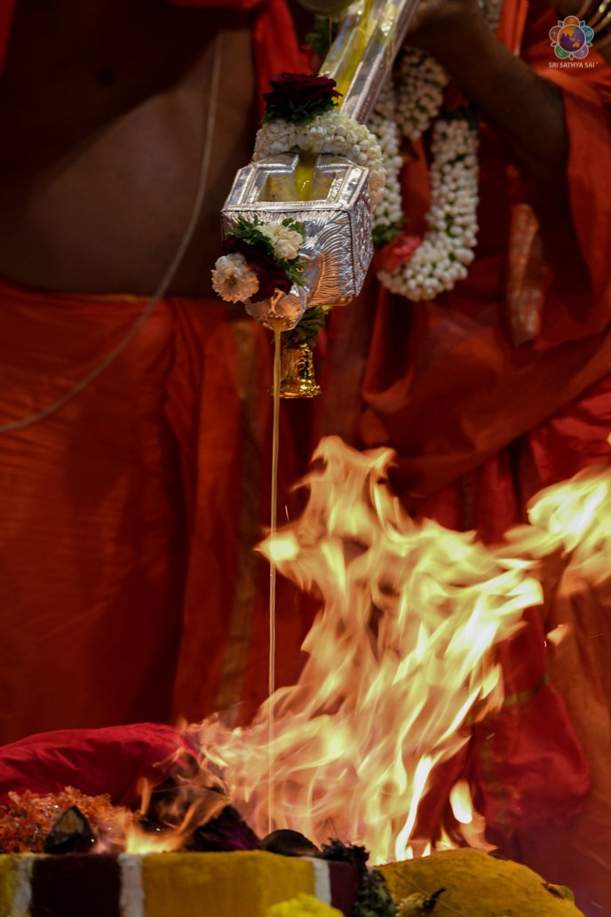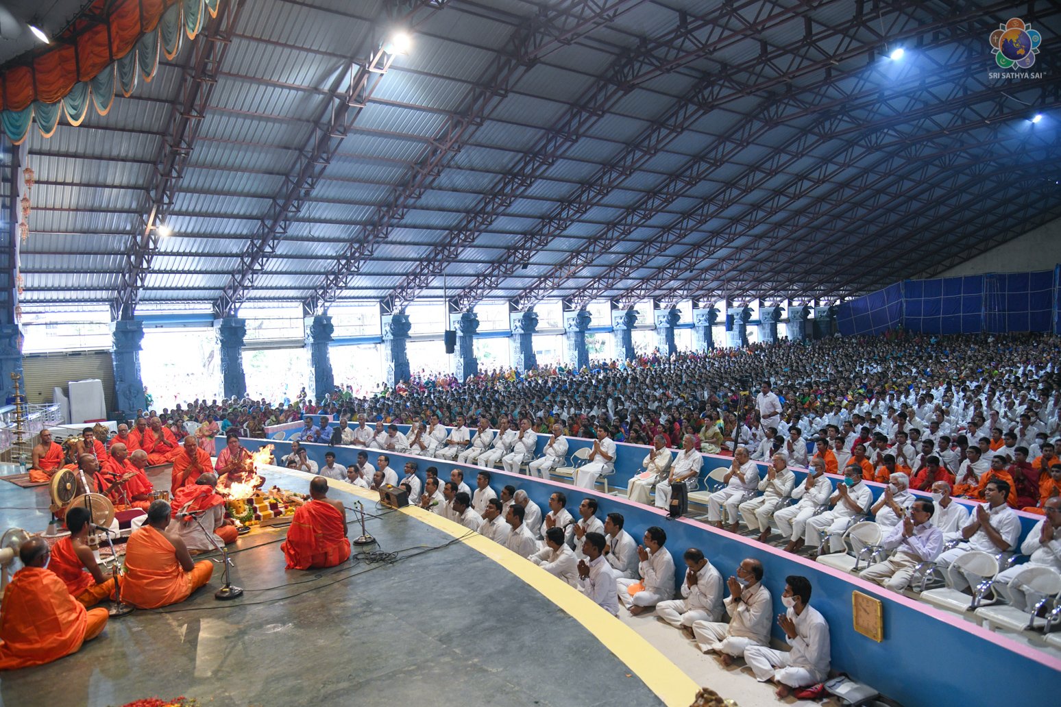 Poornahuti - Veda Purusha Saptaha Jnana Yagna | Oct 05, 2022 Loving Sai Ram and Greetings from Prasanthi Nilayam. With the Divine Blessings of Bhagawan Sri Sathya Sai Baba, the week long Veda Purusha Saptaha Jnana Yagna concluded this morning with the Grand Poornahuti Ceremony & Samprokshnam (sprinkling) of Holy Yagna Jalam (water). Please find below the glimpses of the same.