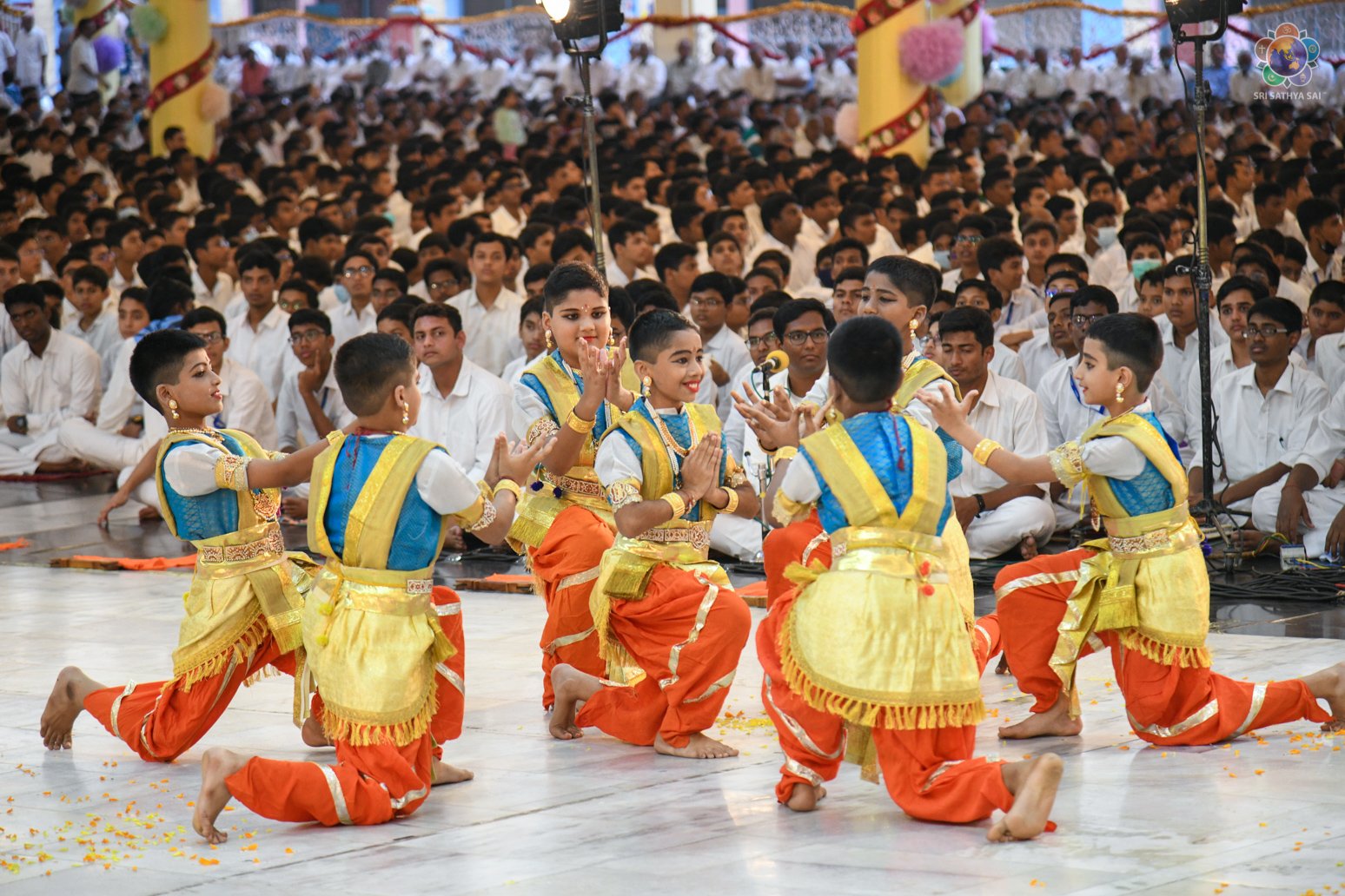 Prasanthi Vidwan Mahasabha - Day 05 | Oct 03, 2022 Loving Sai Ram and Greetings from Prasanthi Nilayam. After the invocatory Vedam Chanting by the Students from Prasanthi Nilayam Campus, SSSIHL, Dr N Siva Kumar, Director, Brindavan Campus, SSSIHL addressed the gathering reminiscing yesteryears Dasara celebrations with Bhagawan. A scintillating dance presentation by the students from Bhagawan’s educational institutions entitled ‘Bharatiyam’ was offered next. Please find below the glimpses for the same.