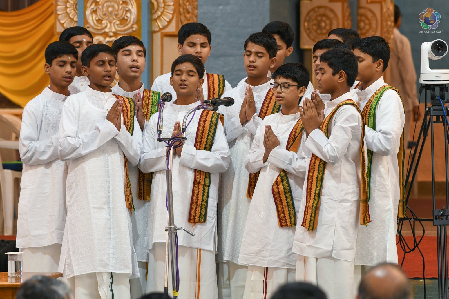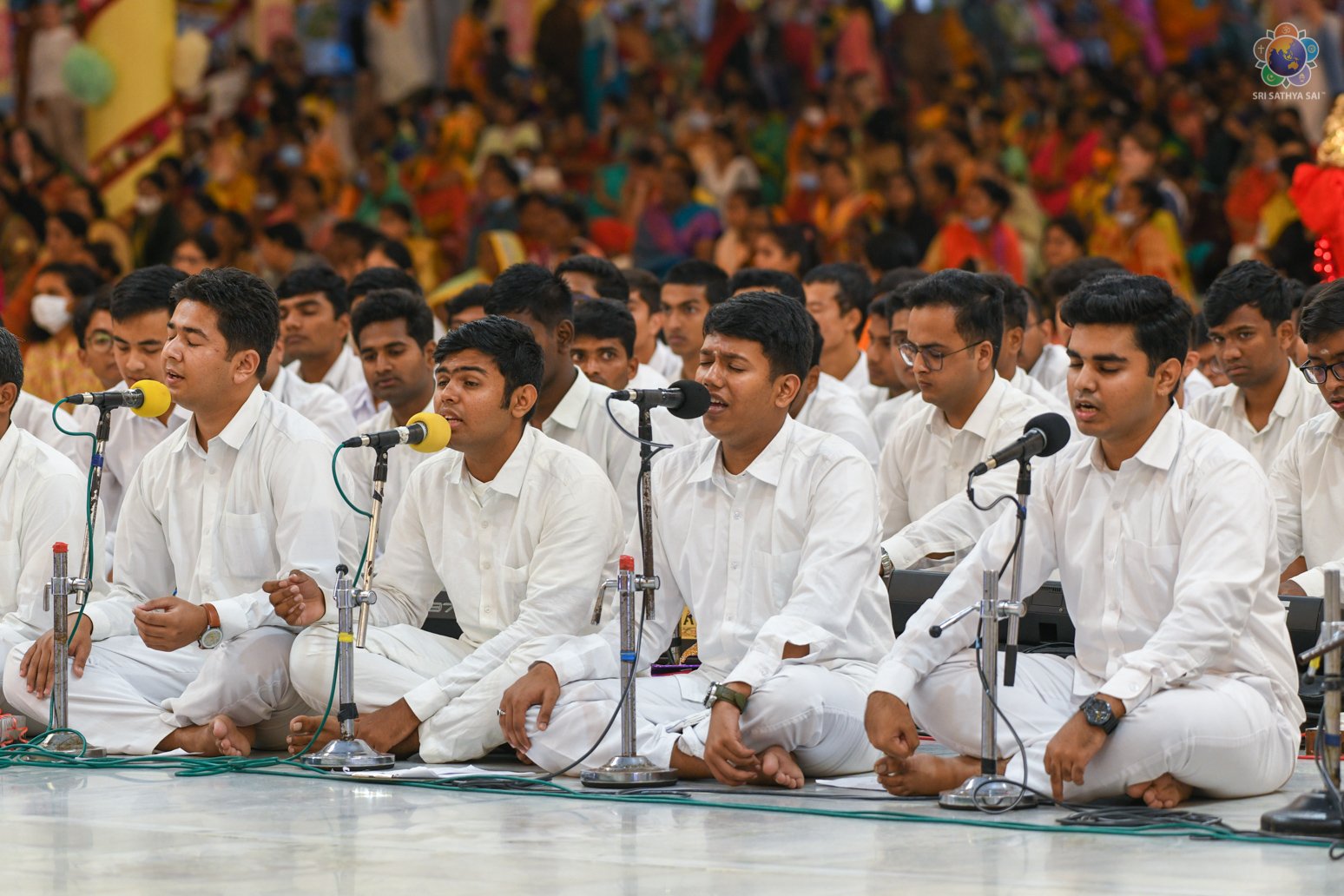 Prasanthi Vidwan Mahasabha - Day 02 | Sep 30, 2022 Loving Sai Ram and Greetings from Prasanthi Nilayam. After the invocatory Vedam Chanting by the Sri Sathya Sai Higher Secondary School Children, Sri Chandrahaas C S, Research Scholar from Sri Sathya Sai Institute of Higher Learning, Prasanthi Nilayam Campus addressed the gathering on the significance of Veda Purusha Saptaha Jnana Yajna. A Devotional Music Program entitled “Amma Se Ma Tak” by the students of Muddenahalli Campus, SSSIHL, followed next. Please find below the glimpses for the same.